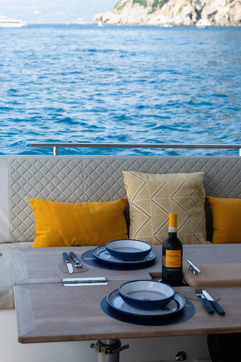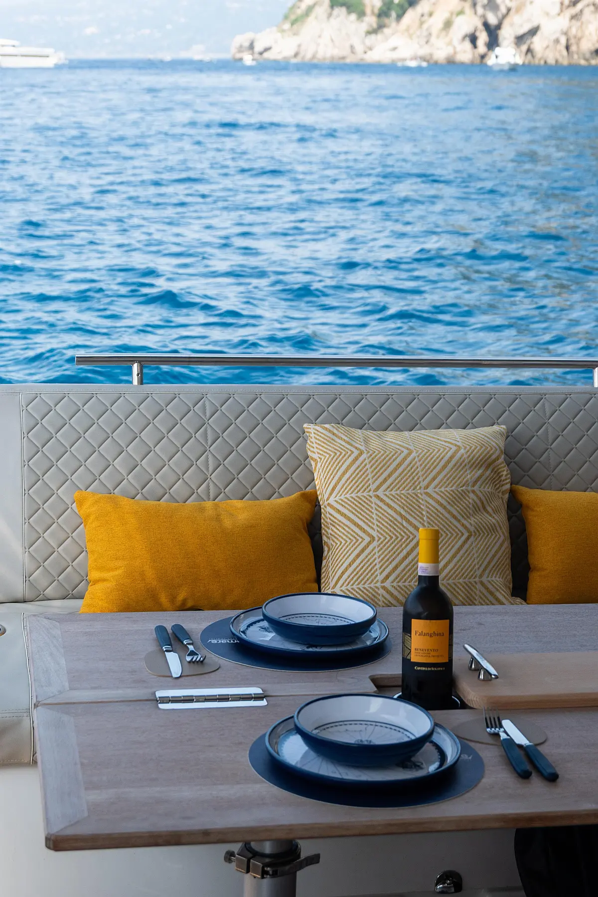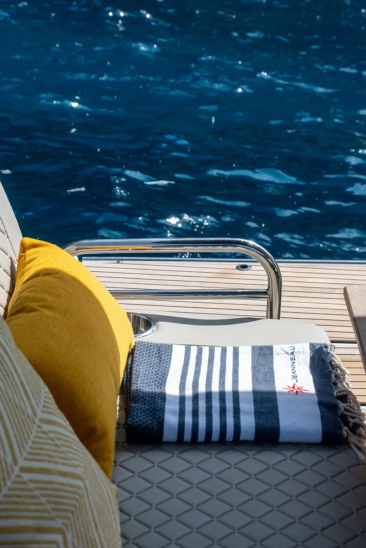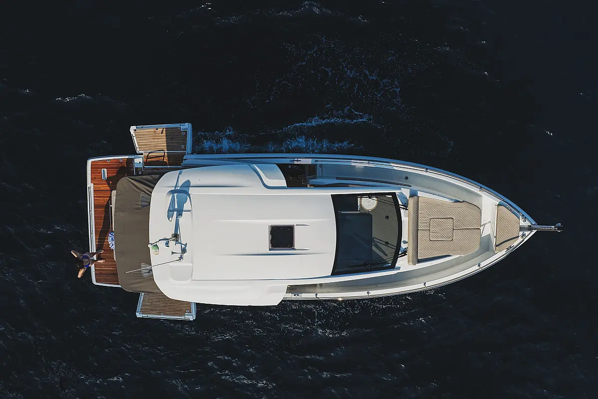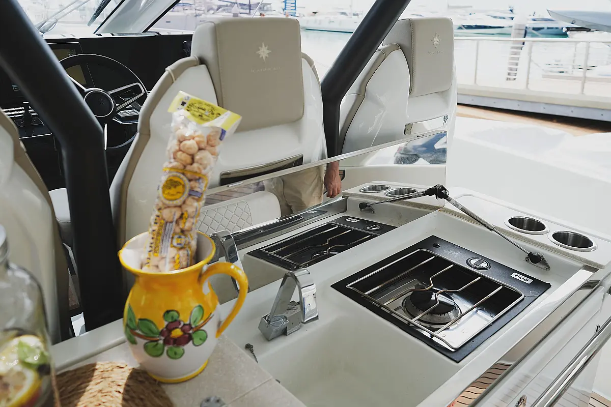 Teak Cockpit, Kühlschrank, Lautsprecher im Cockpit, Klimaanlage, Badeplattform, Generator