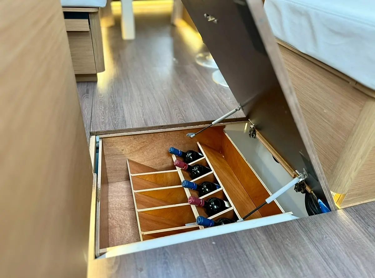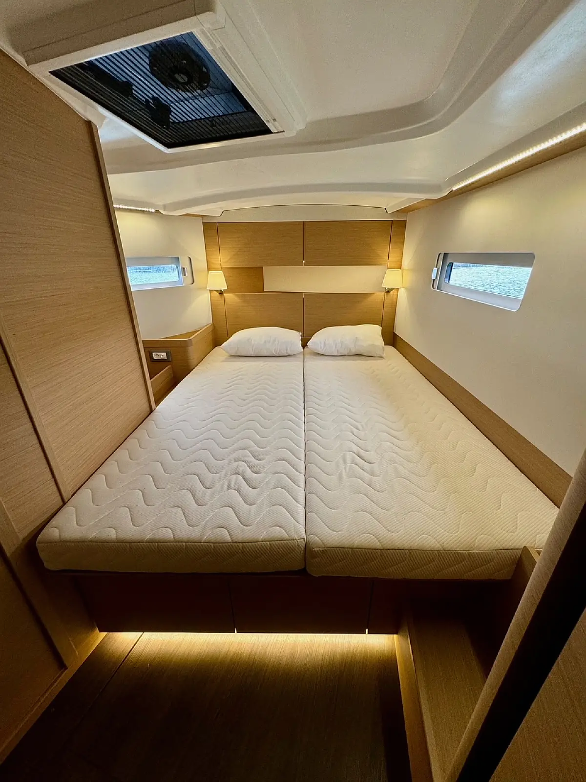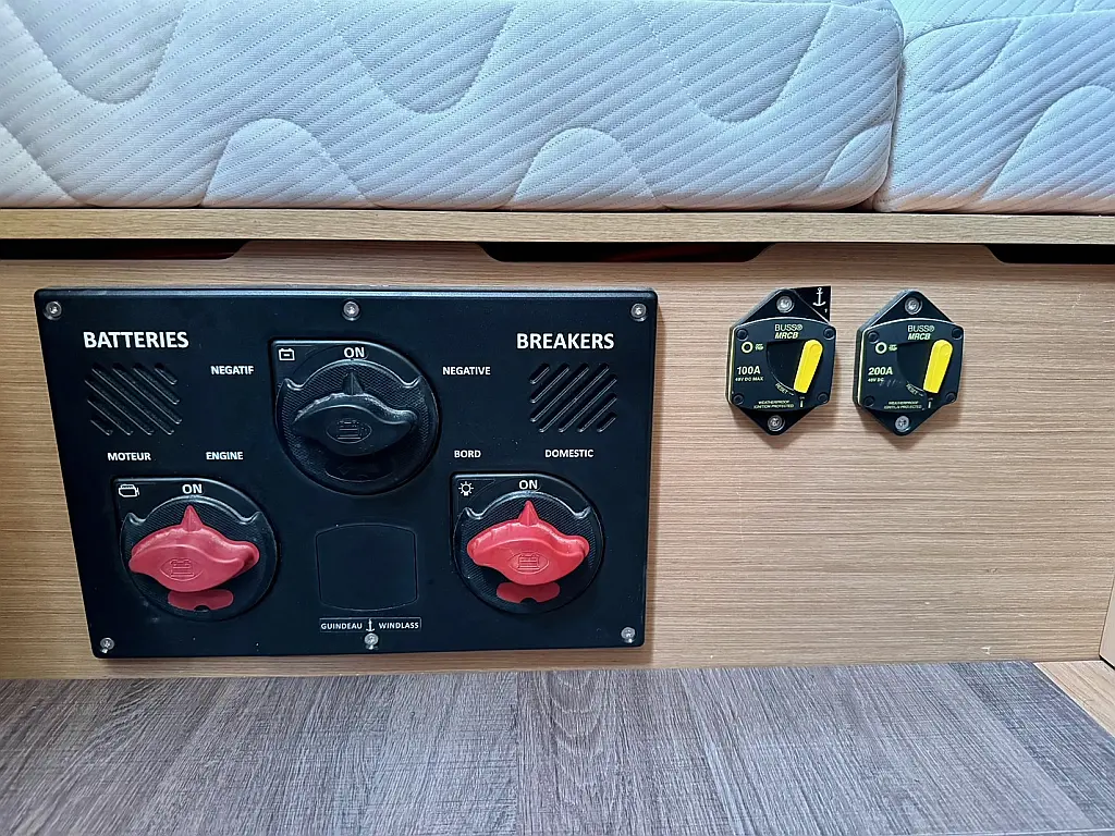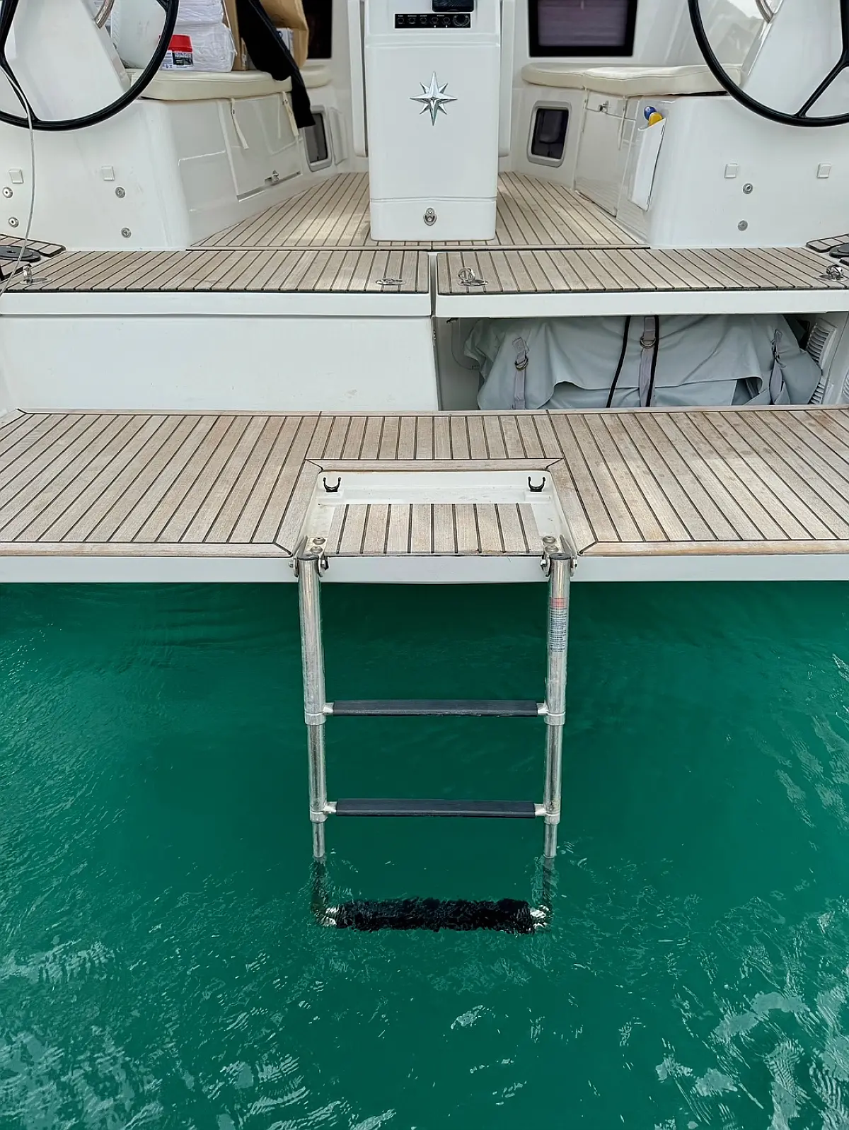 Bimini, Sprayhood, Solar-Panele, Beiboot, Außenbordmotor, Cockpit-Kissen, Elektrische Toilette, Inverter, Wassermacher, Wi-Fi und Internet, Kaffeemaschine, Eismaschine, Kühlschrank