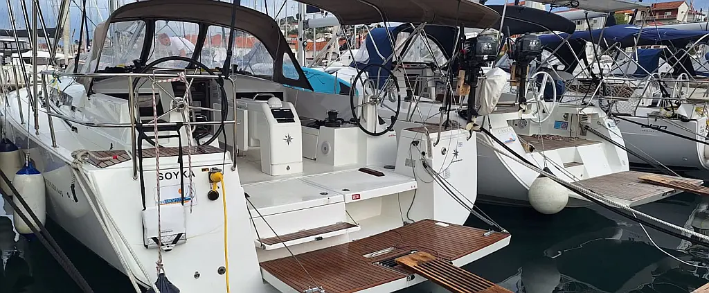 Bimini, Badeplattform, Sprayhood, Beiboot, Außenbordmotor, Kühlschrank, Lautsprecher im Cockpit, Wi-Fi und Internet, Heizung