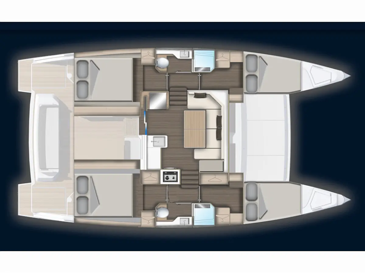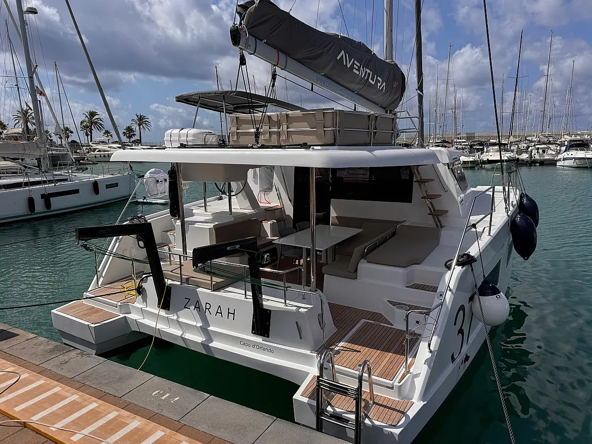 Lautsprecher im Cockpit, Sprayhood, Cockpit-Kissen, Elektrische Toilette, Beiboot, Teak Cockpit, Kühlschrank, Elektrische Winch (Segel), Inverter, Außenbordmotor