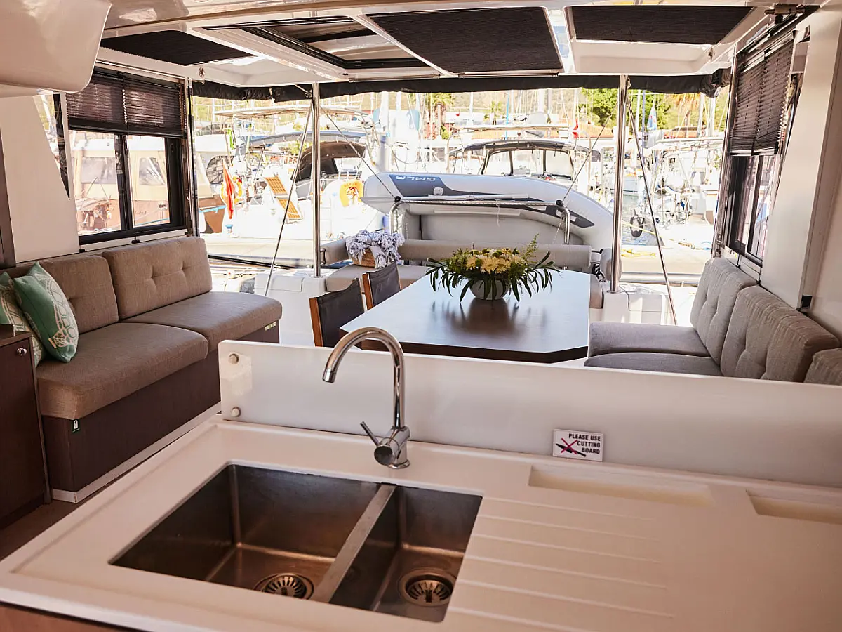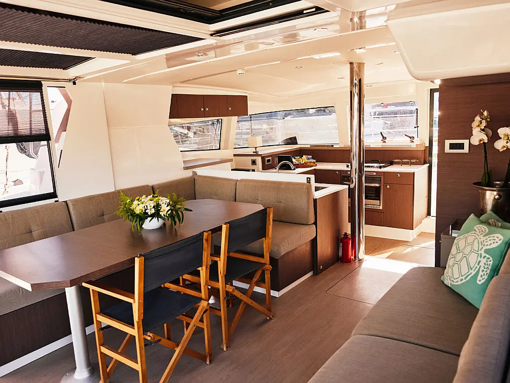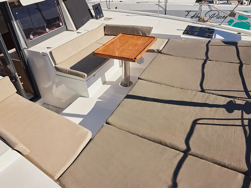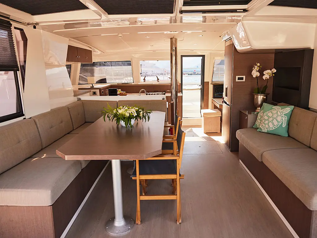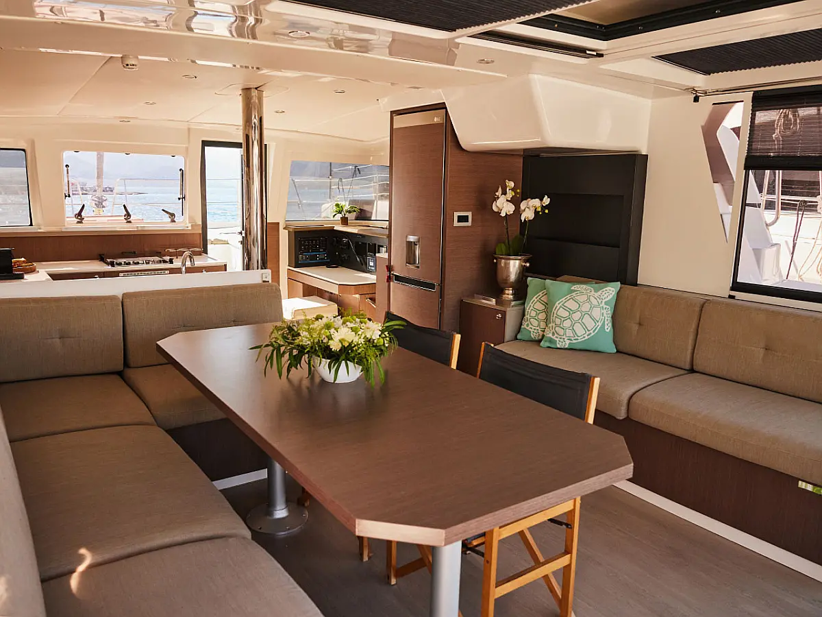 Kühlschrank, Cockpit-Kissen, Bimini, Beiboot, Solar-Panele, Generator, Klimaanlage, Inverter, Wassermacher