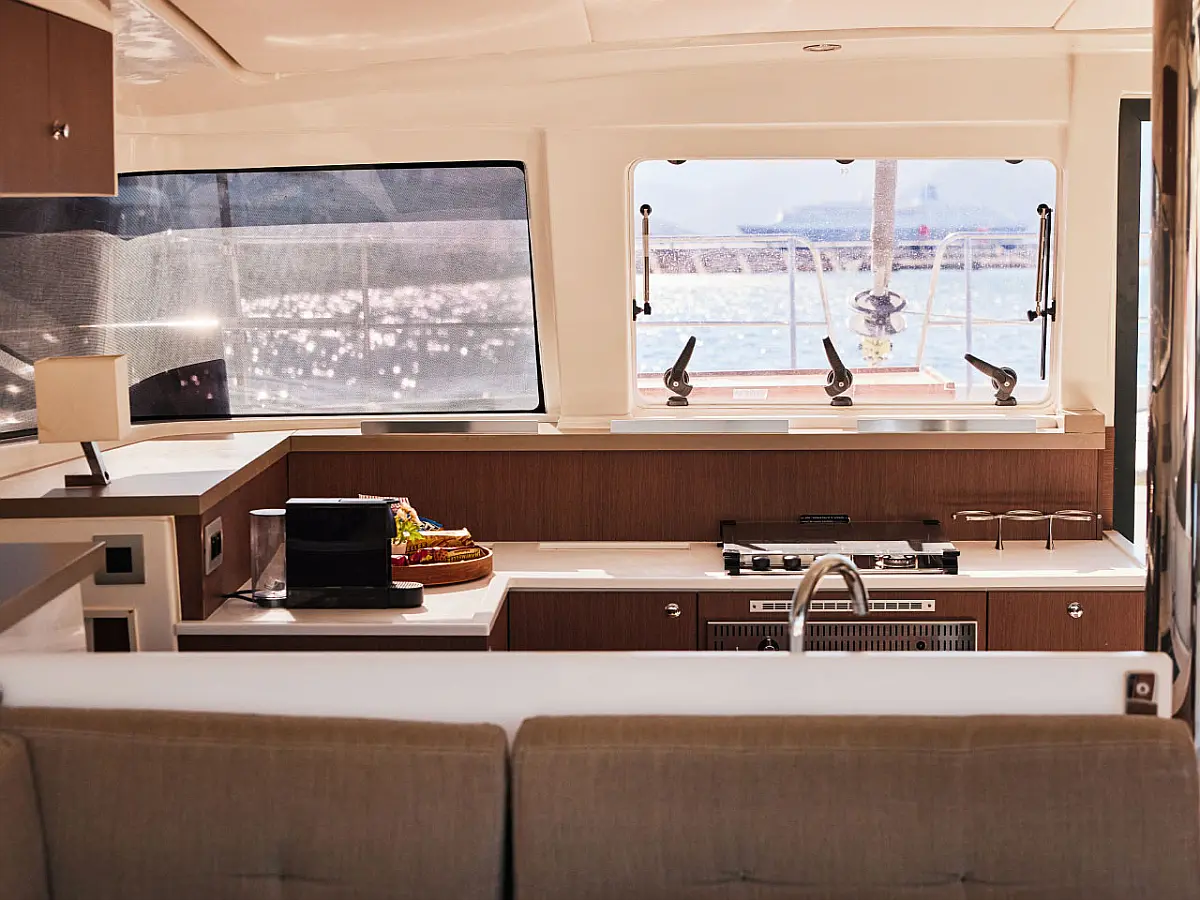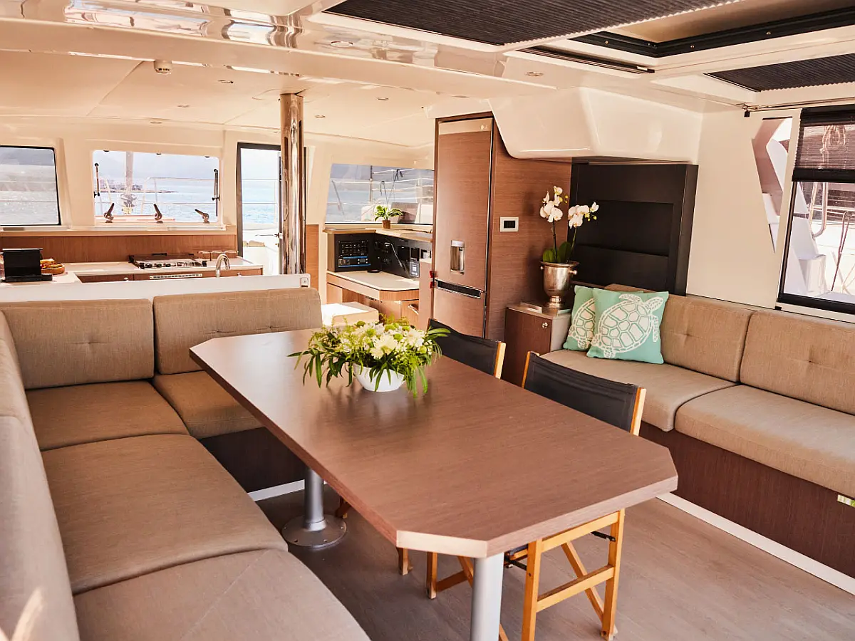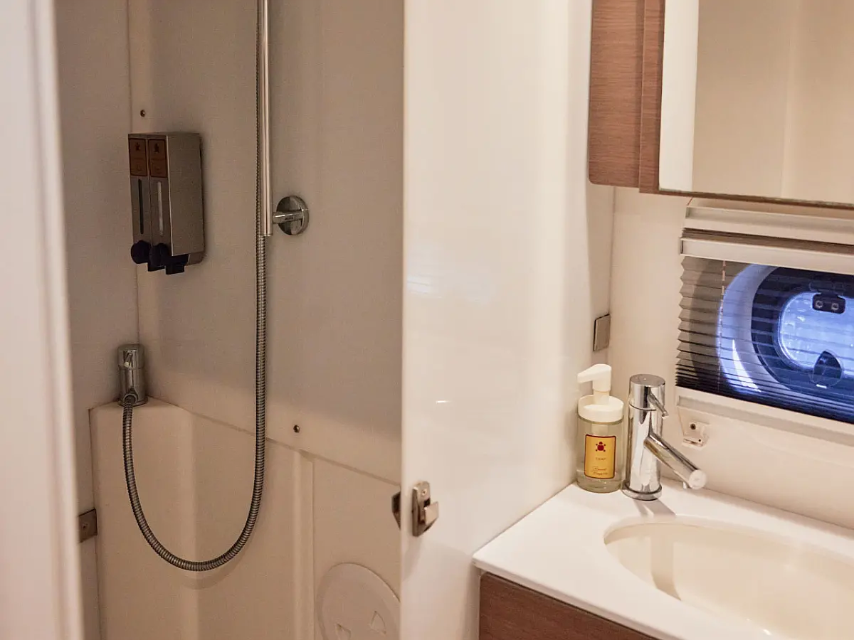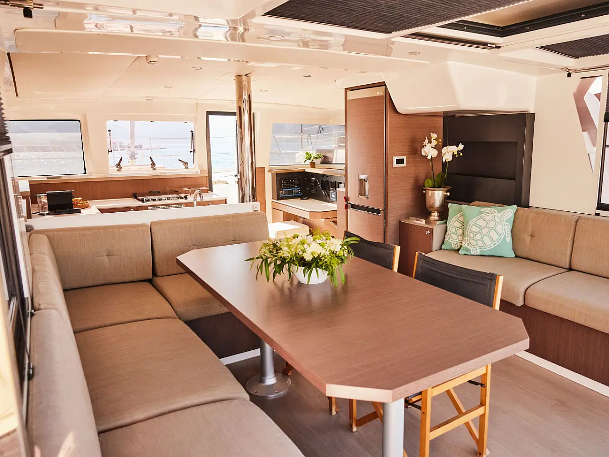 Kühlschrank, Cockpit-Kissen, Bimini, Beiboot, Solar-Panele, Generator, Klimaanlage, Inverter, Wassermacher