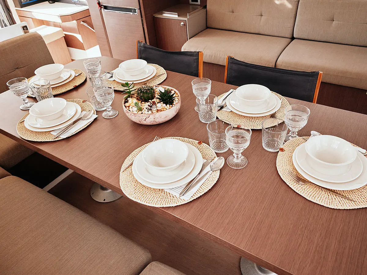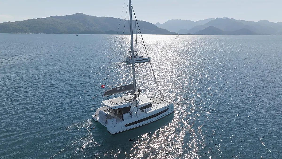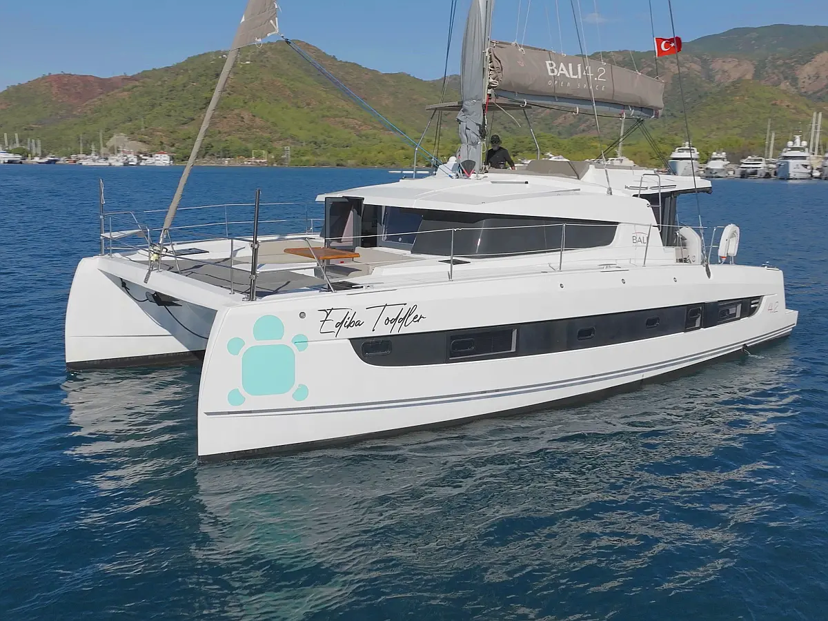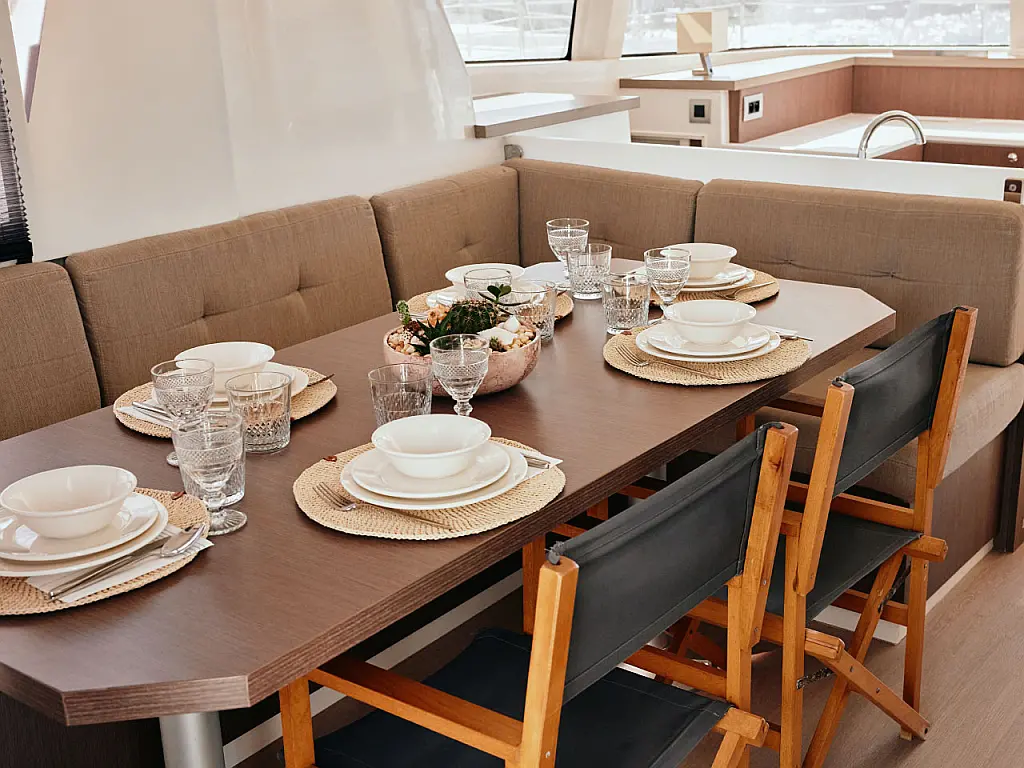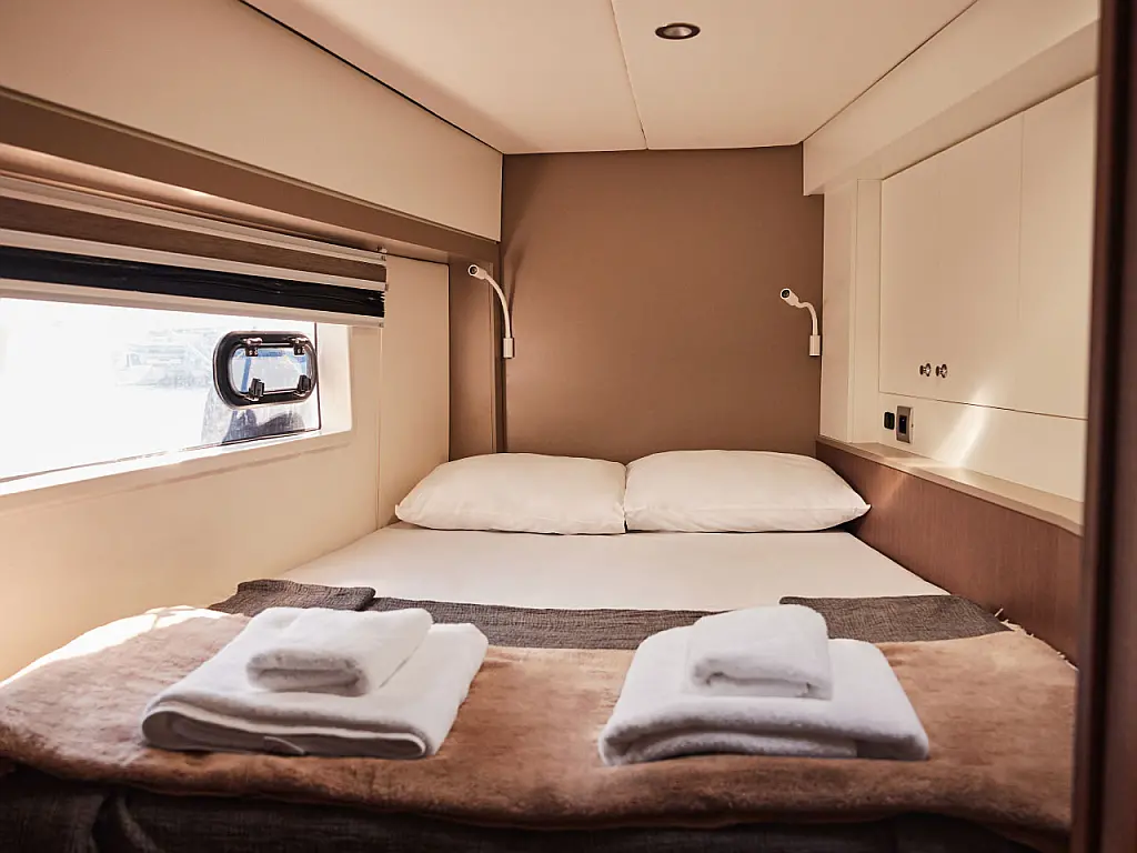 Kühlschrank, Cockpit-Kissen, Bimini, Beiboot, Solar-Panele, Generator, Klimaanlage, Inverter, Wassermacher