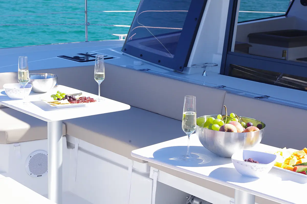 Cockpit-Kissen, Grill im Cockpit, Elektrische Toilette, Kühlschrank, Elektrische Winch (Segel), Inverter, Solar-Panele