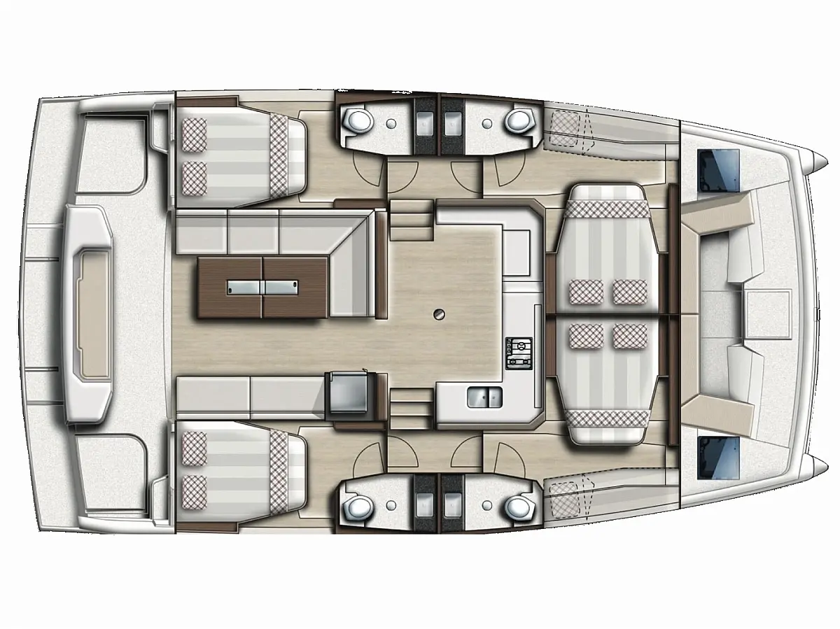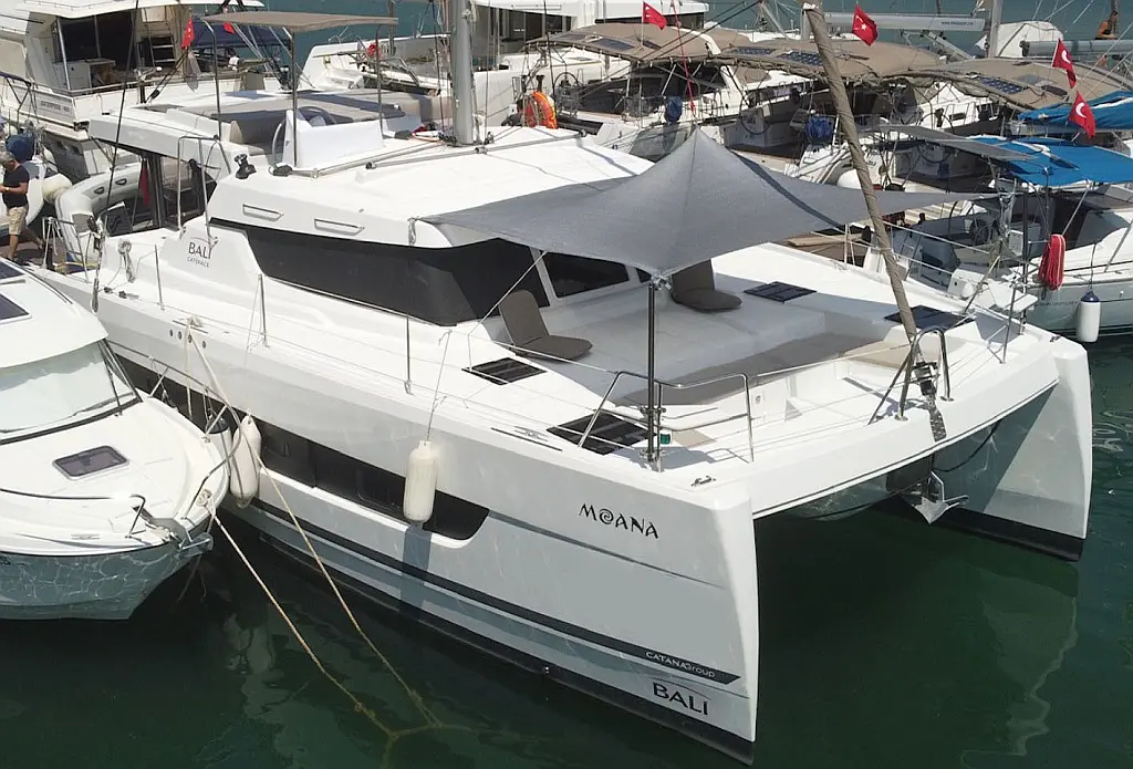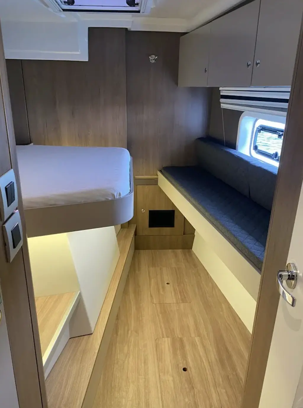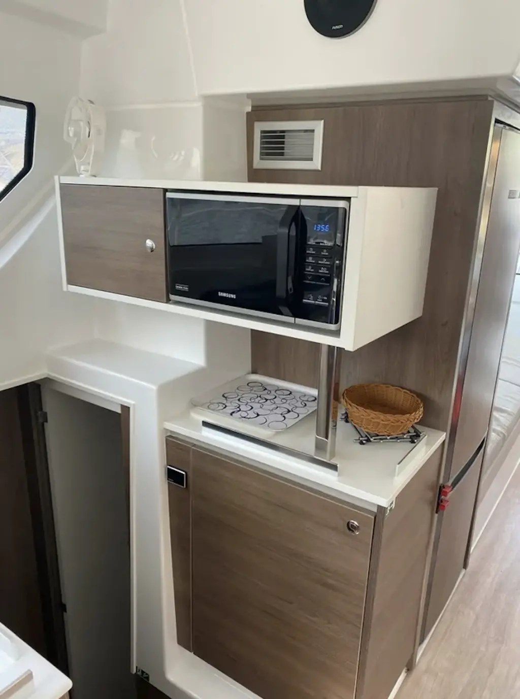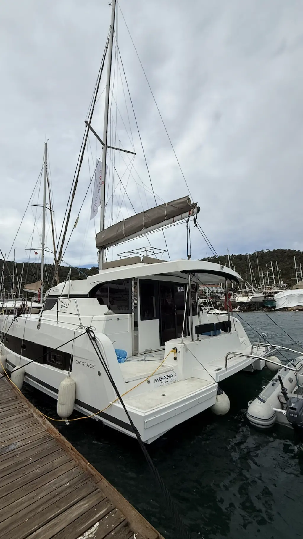 Generator, Elektrische Winch (Segel), Bimini, Beiboot, Solar-Panele, Klimaanlage, Flybridge, Inverter, Wassermacher, Kaffeemaschine, Heizung, Kühlschrank, Lautsprecher im Cockpit, Grill im Cockpit, Cockpit-Kissen