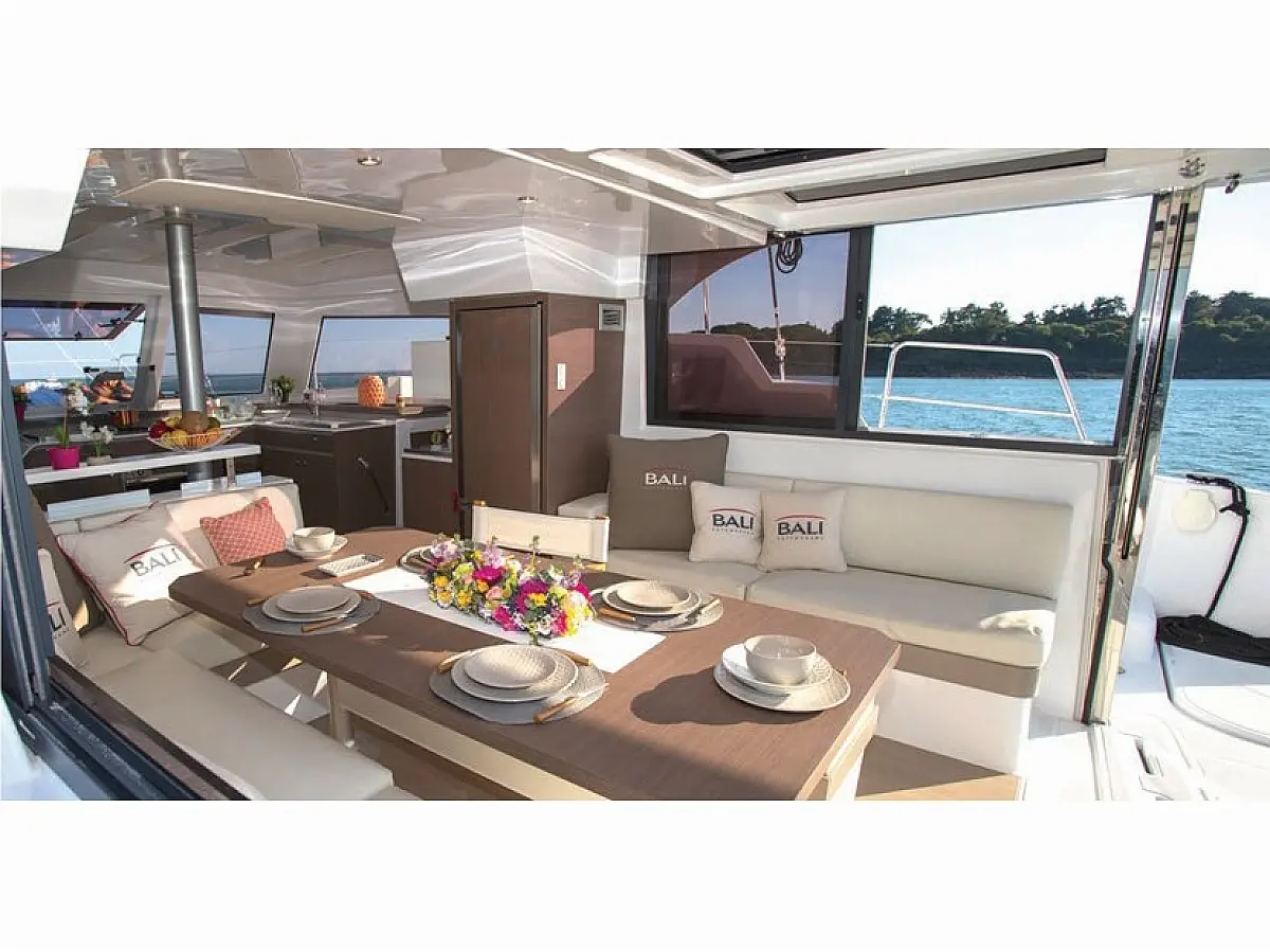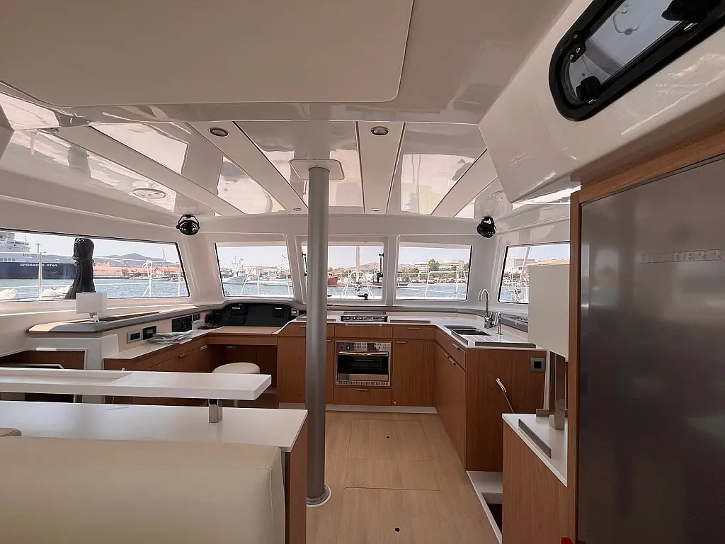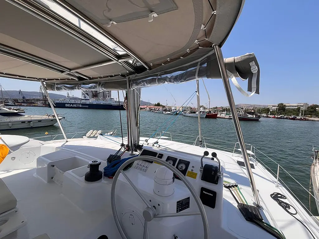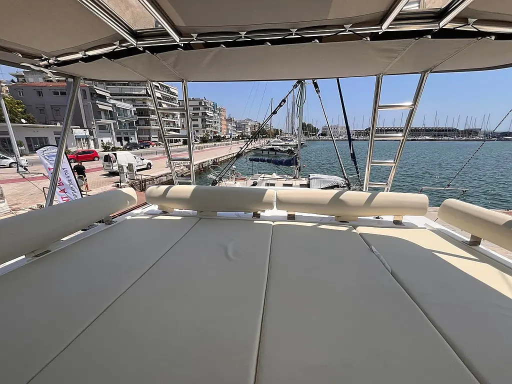 Bimini, Sprayhood, Lautsprecher im Cockpit, Beiboot, Eismaschine, Fäkalientank, Cockpit-Kissen, Badeplattform, Flybridge, Kaffeemaschine, Kühlschrank, Inverter