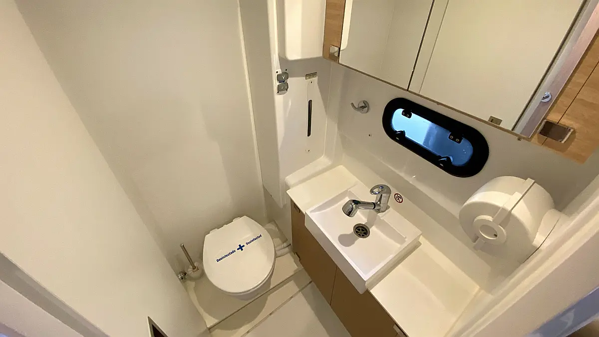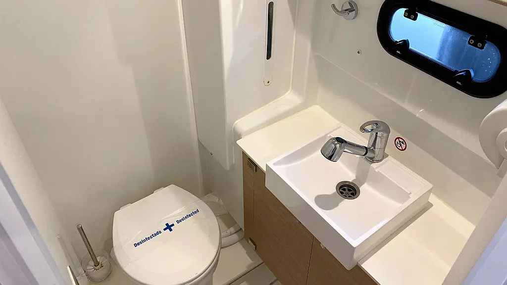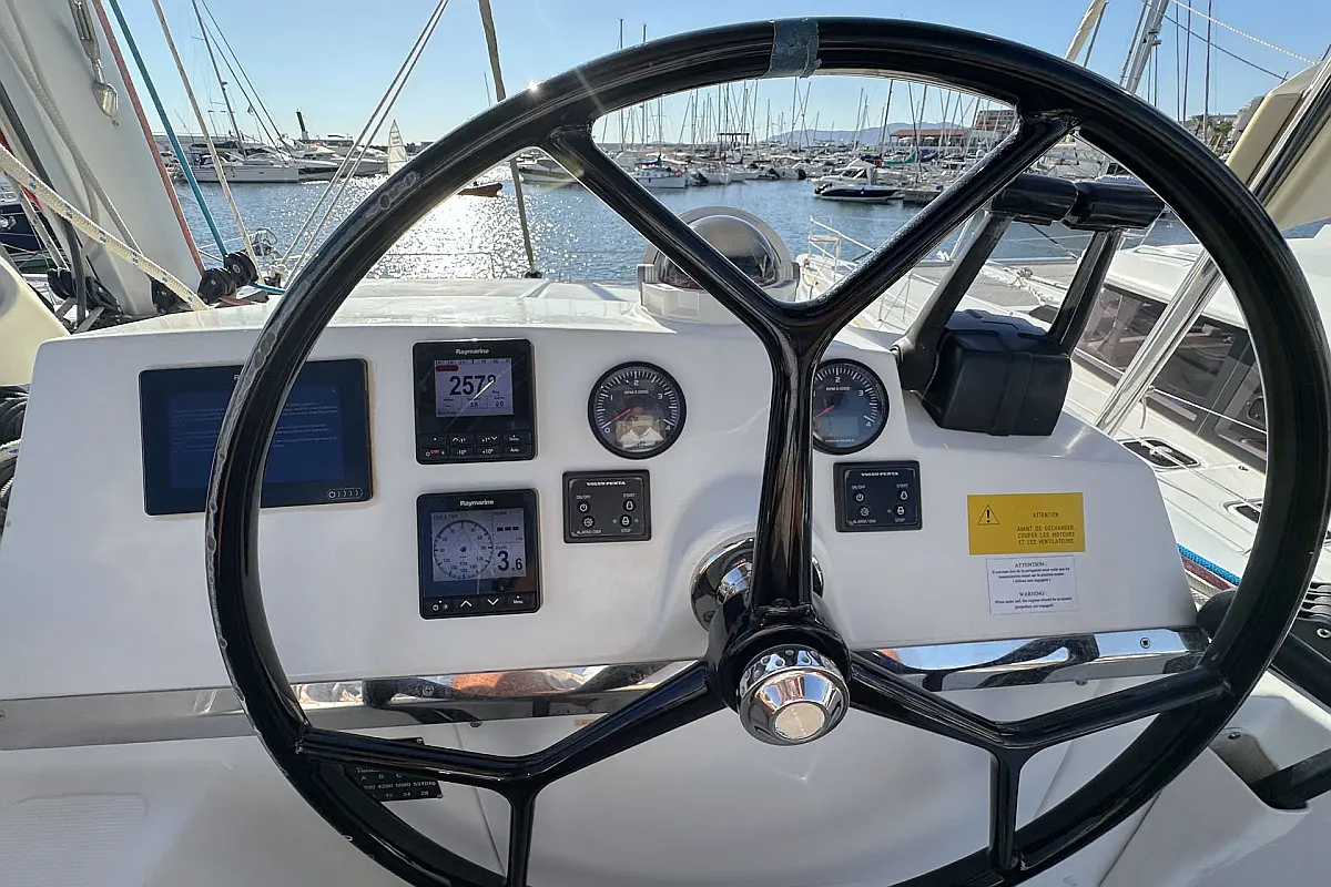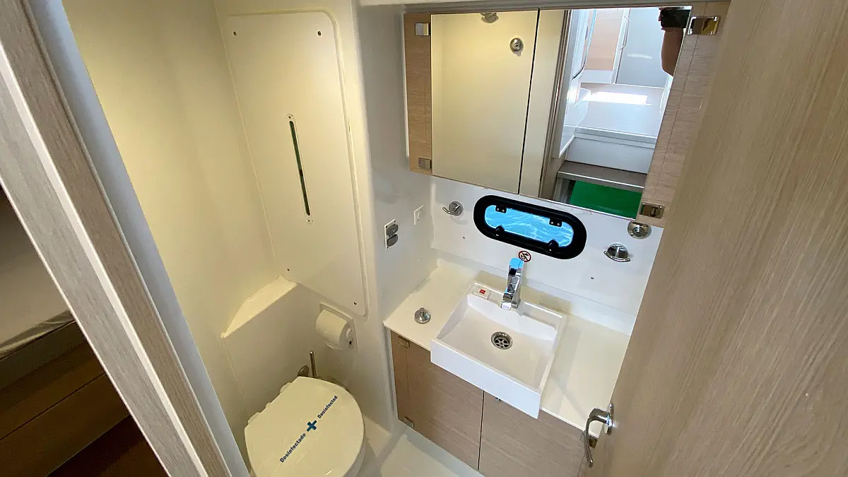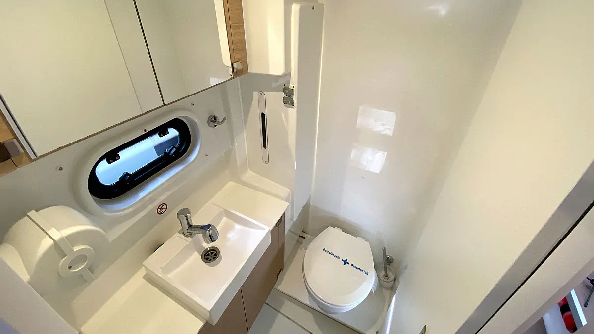 Kühlschrank, Wi-Fi und Internet, Elektrische Toilette, Bimini, Beiboot, Fäkalientank, Sprayhood, Cockpit-Kissen, Elektrische Winch (Segel), Solar-Panele, Inverter