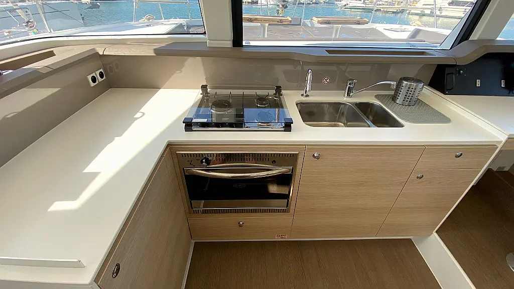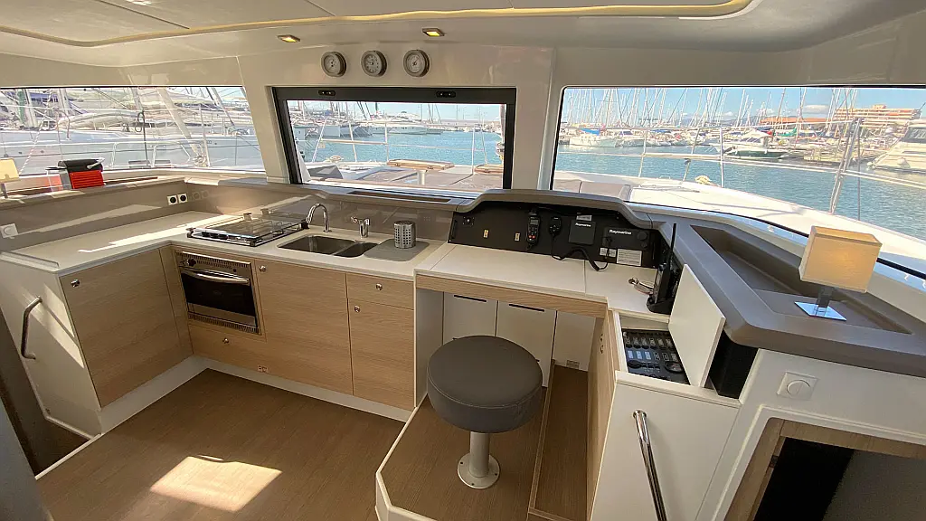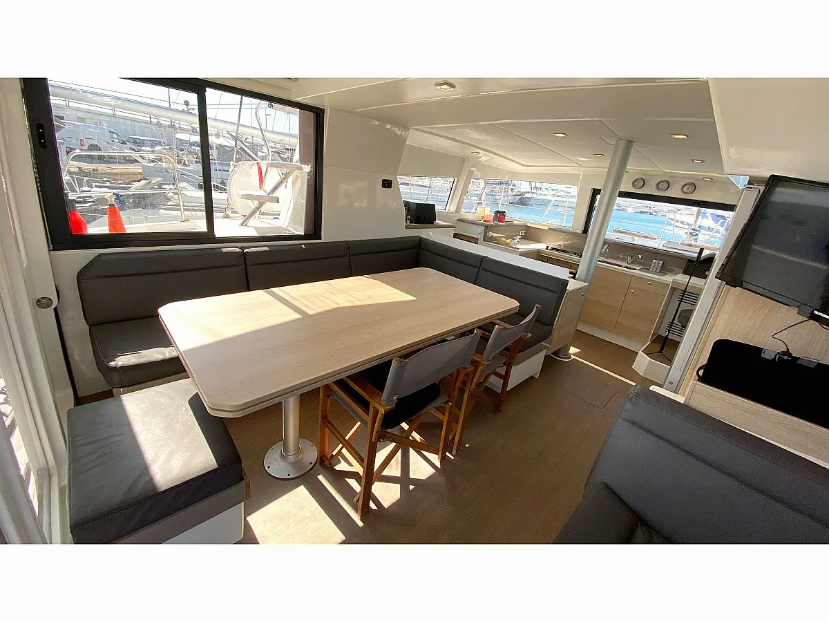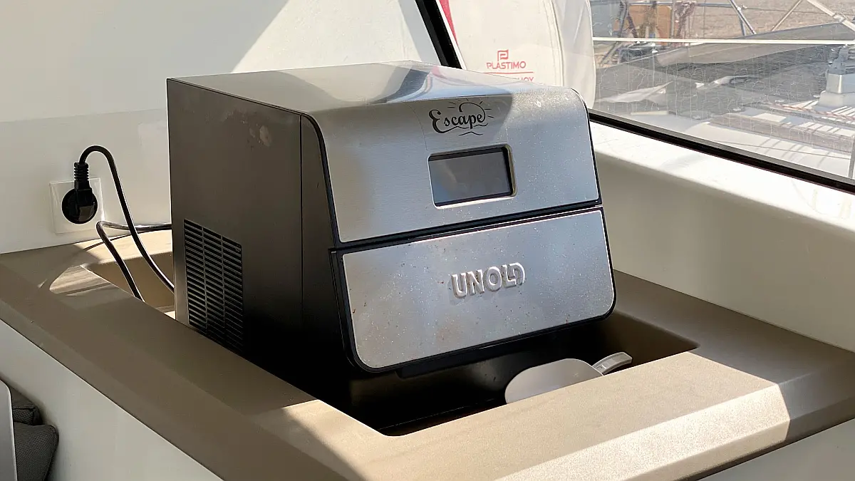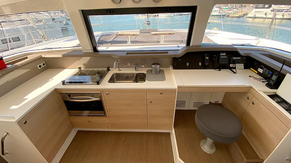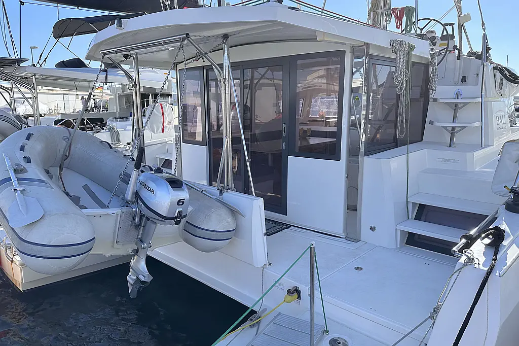 Kühlschrank, Wi-Fi und Internet, Elektrische Toilette, Bimini, Beiboot, Fäkalientank, Sprayhood, Cockpit-Kissen, Elektrische Winch (Segel), Solar-Panele, Inverter