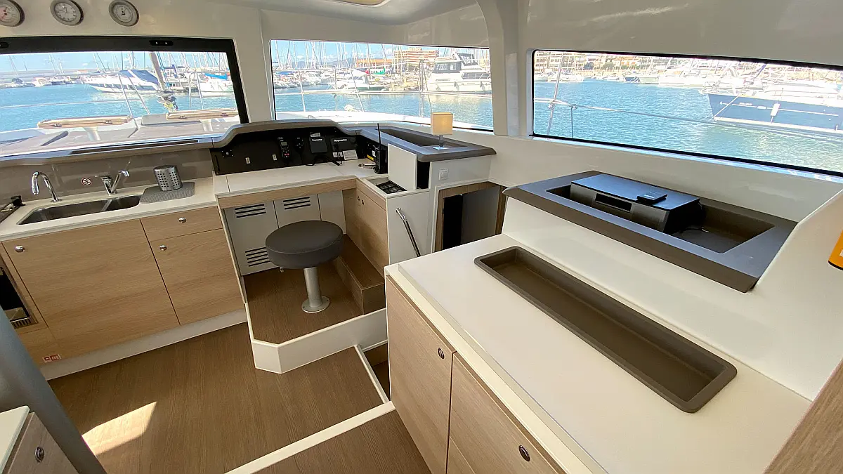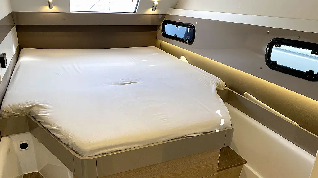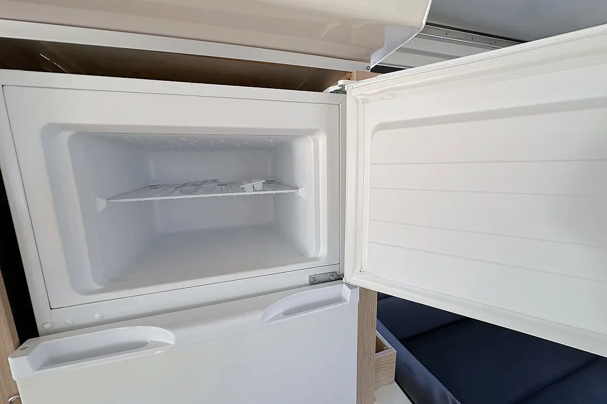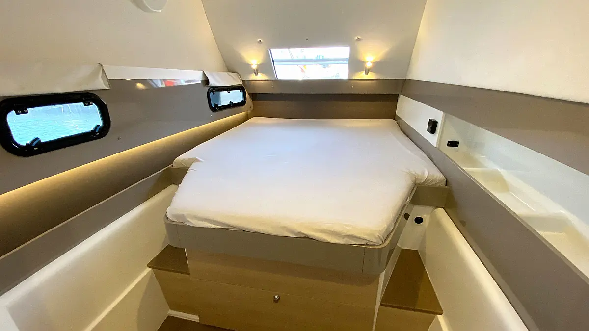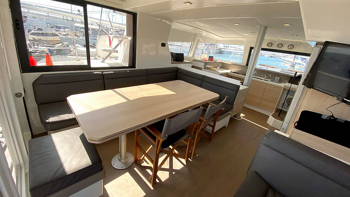 Kühlschrank, Wi-Fi und Internet, Elektrische Toilette, Bimini, Beiboot, Fäkalientank, Sprayhood, Cockpit-Kissen, Elektrische Winch (Segel), Solar-Panele, Inverter