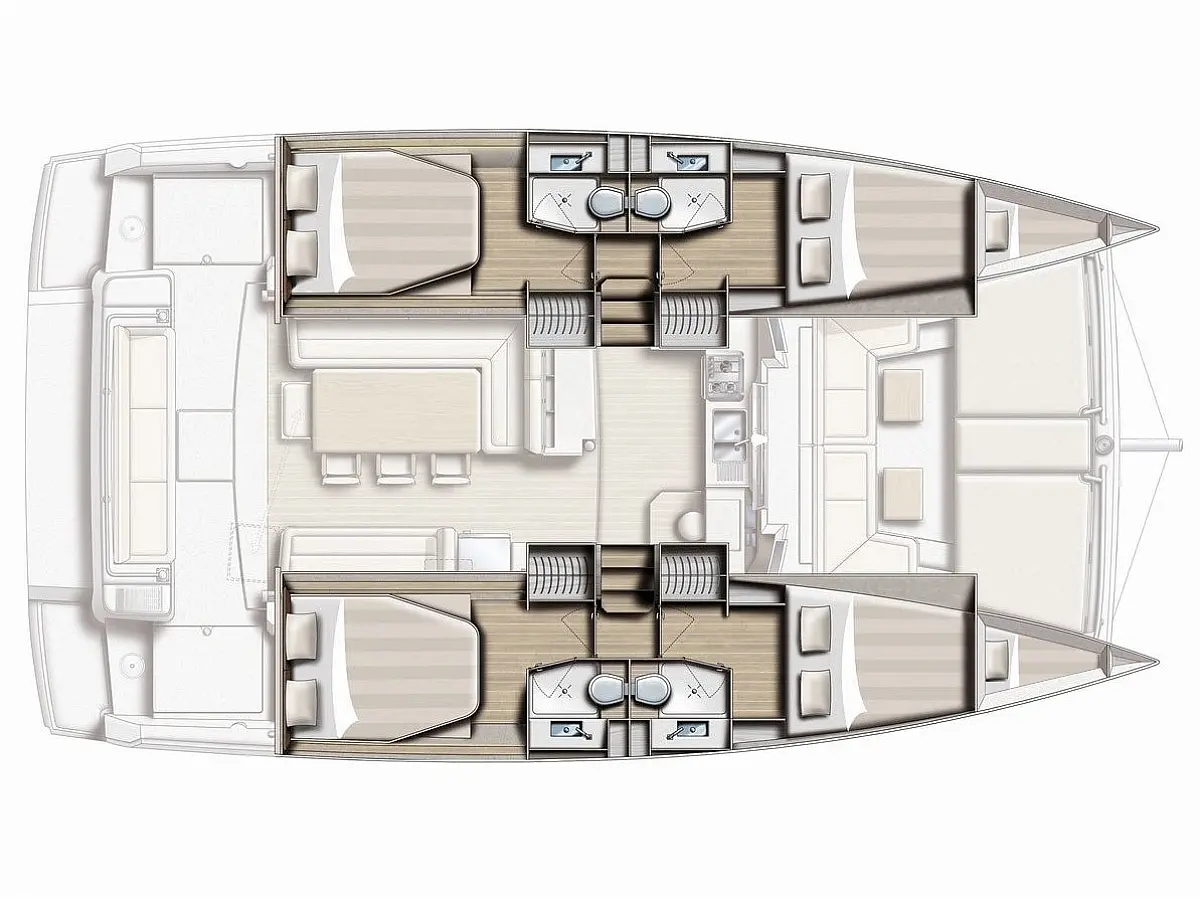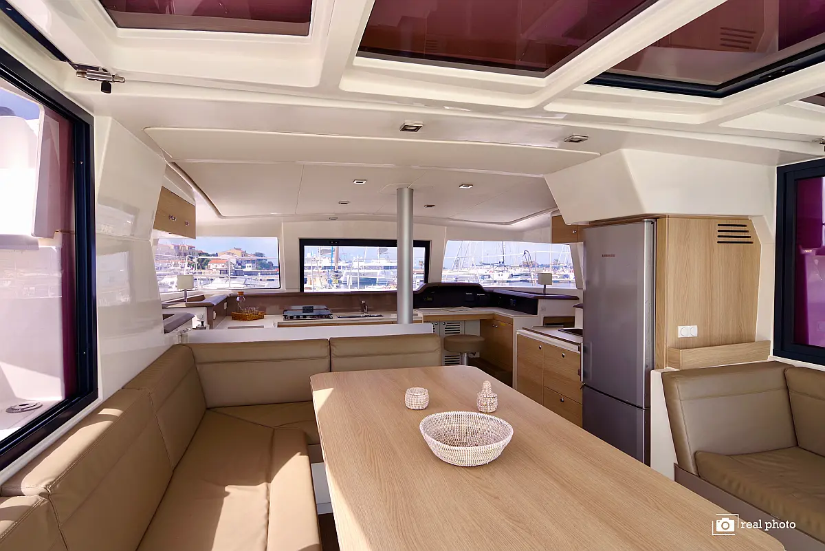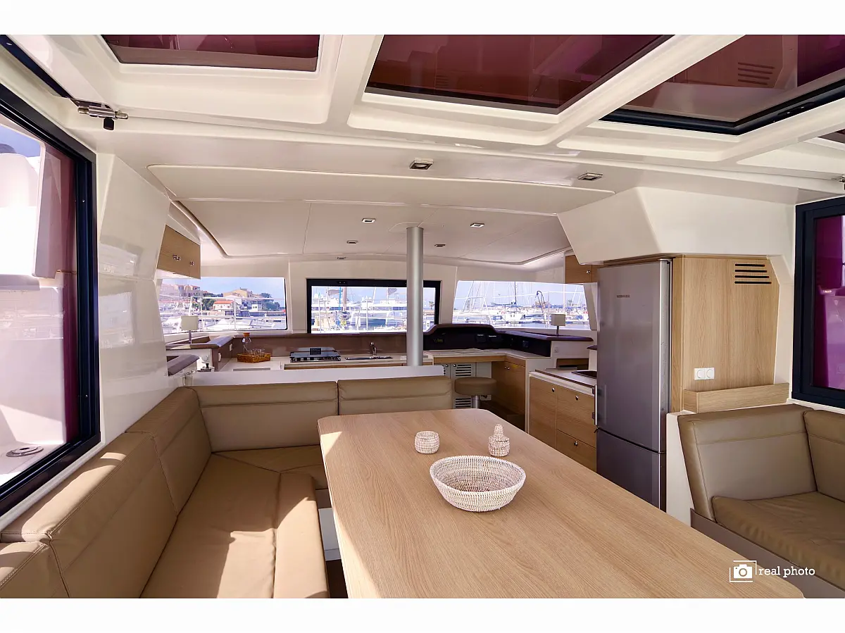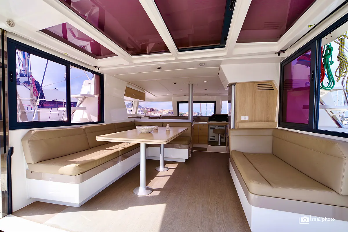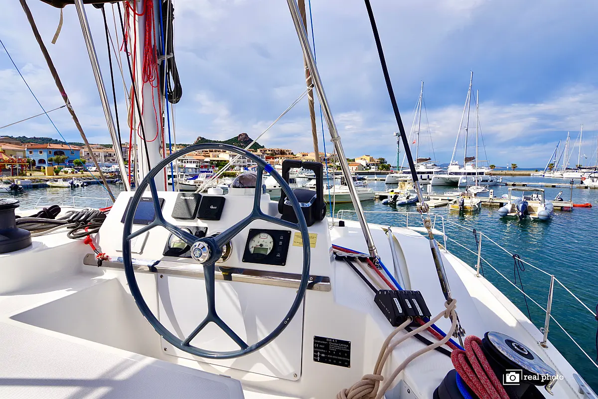 Elektrische Toilette, Elektrische Winch (Segel), Solar-Panele, Wassermacher, Cockpit-Kissen, Kühlschrank, Bimini, Inverter, Außenbordmotor, Beiboot