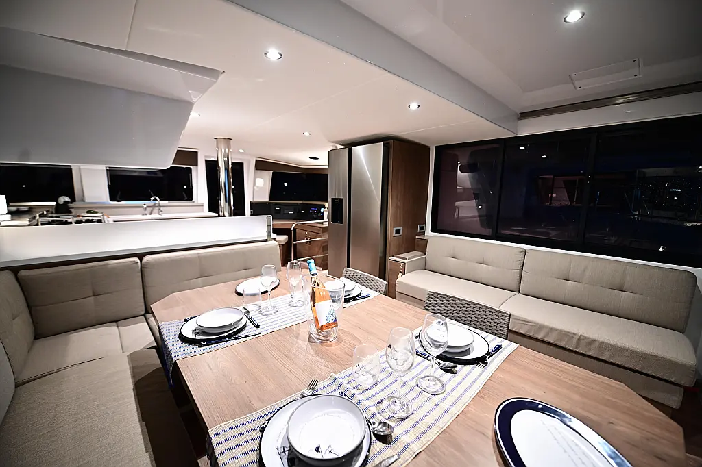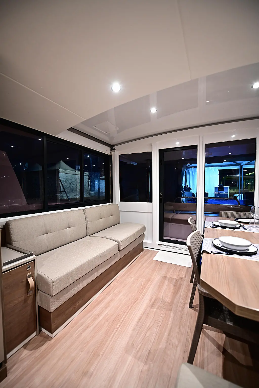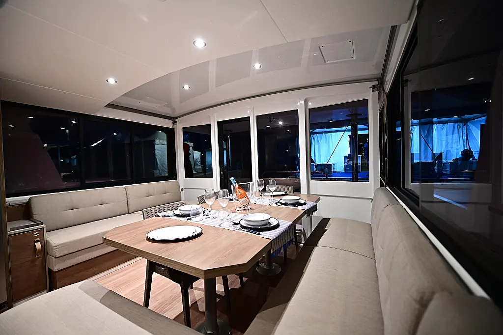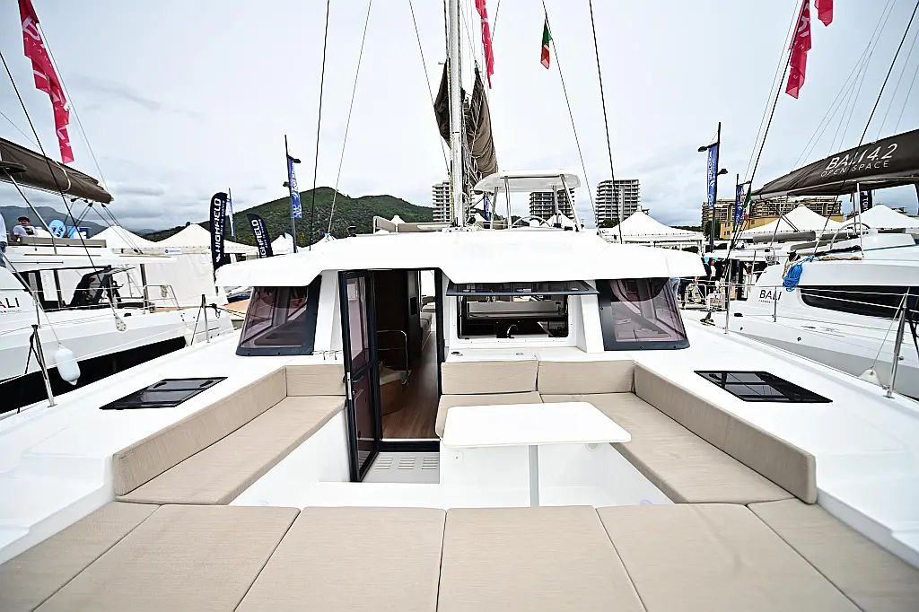 Sprayhood, Cockpit-Kissen, Elektrische Toilette, Generator, Klimaanlage, Wassermacher, Lautsprecher im Cockpit, Kühlschrank, Eismaschine, Beiboot, Inverter, Bimini, Elektrische Winch (Segel)