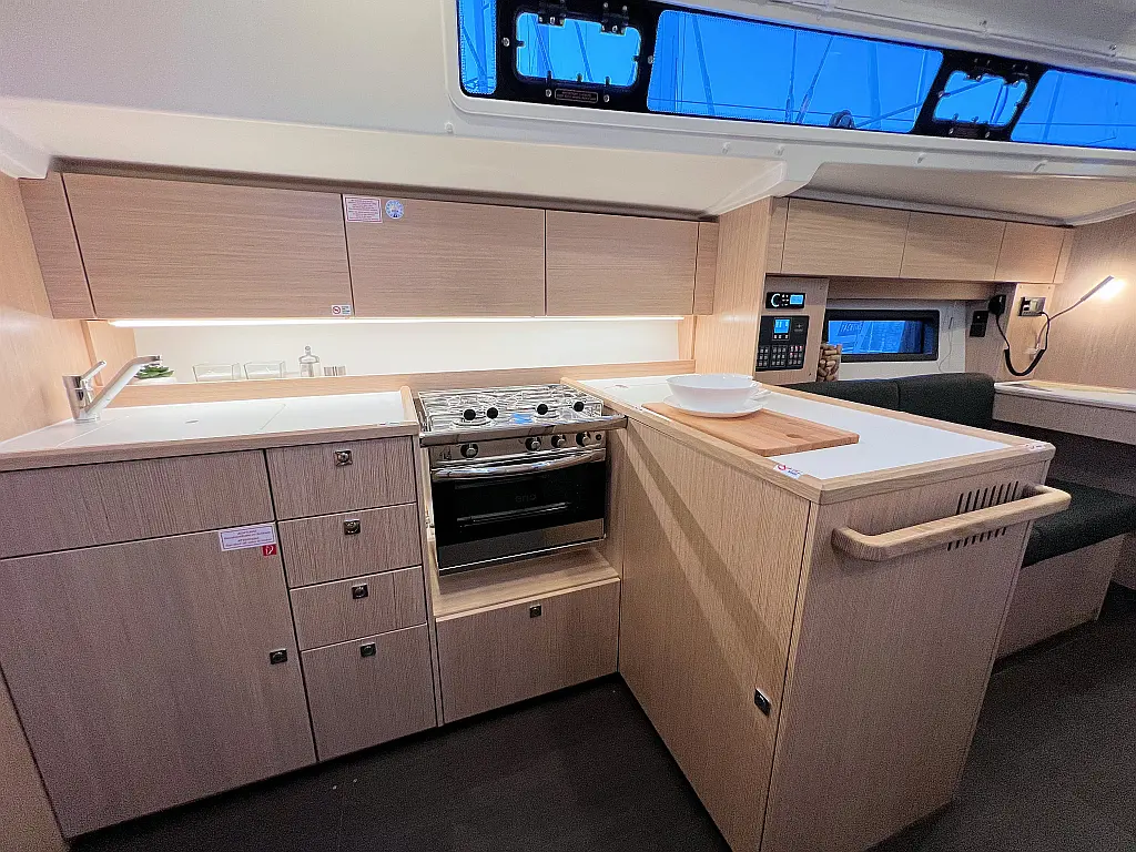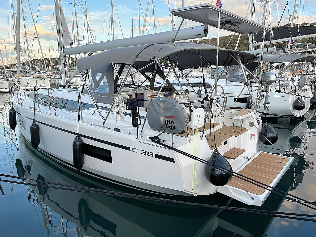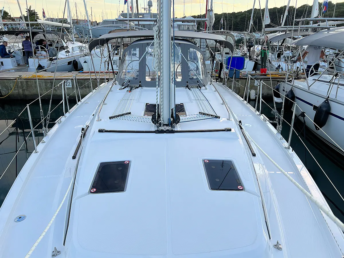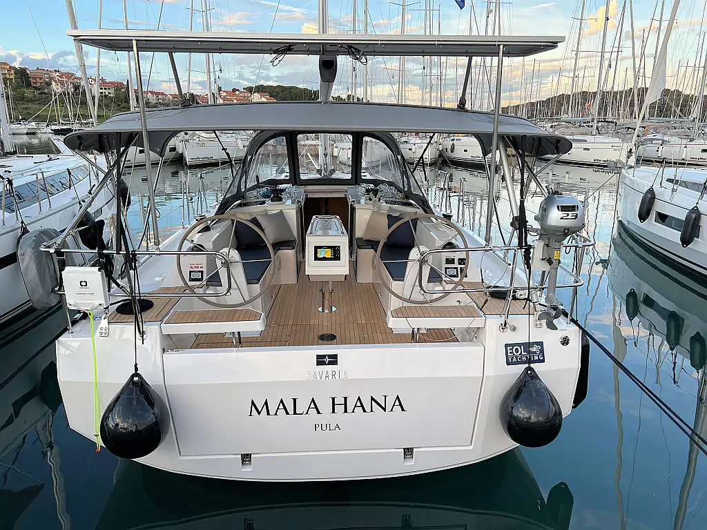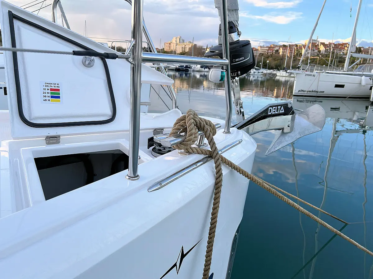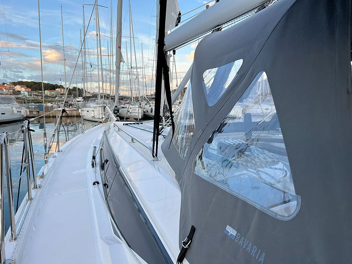Lautsprecher im Cockpit, Fäkalientank, Bimini, Cockpit-Kissen, Beiboot, Sprayhood, Teak Cockpit, Kühlschrank, Heizung, Solar-Panele