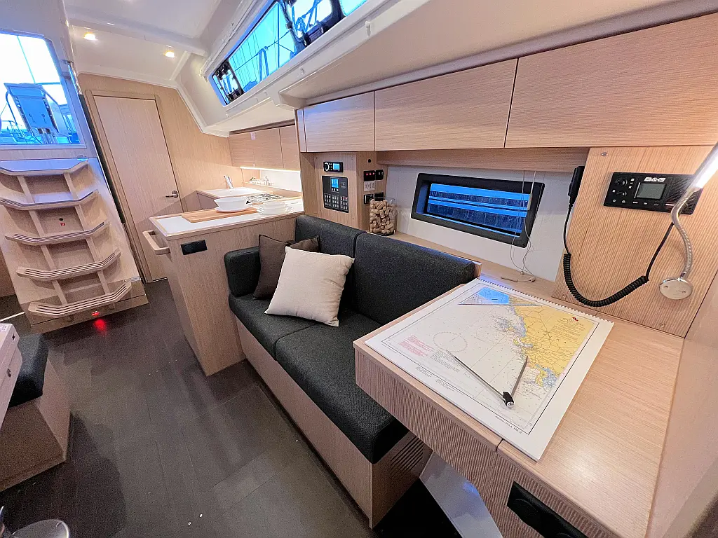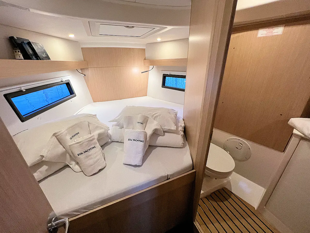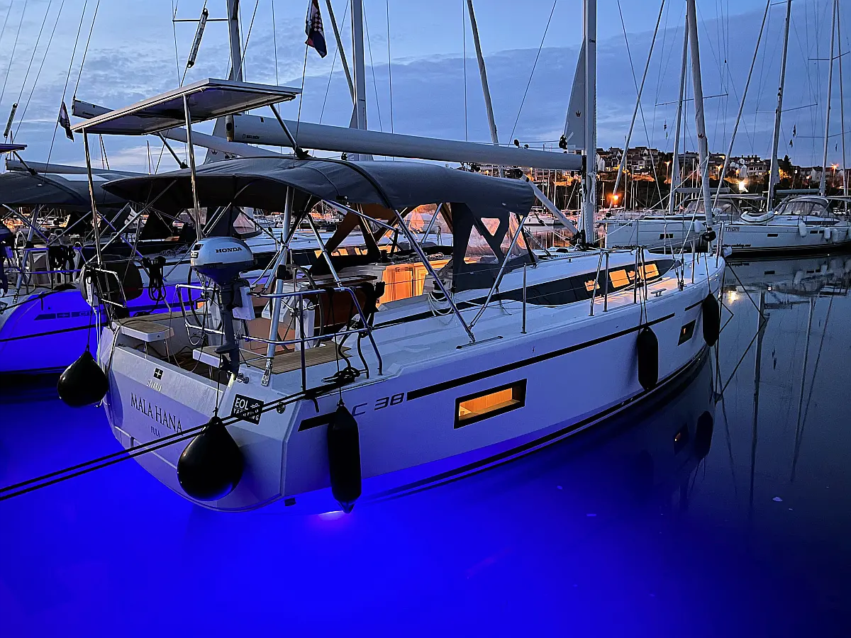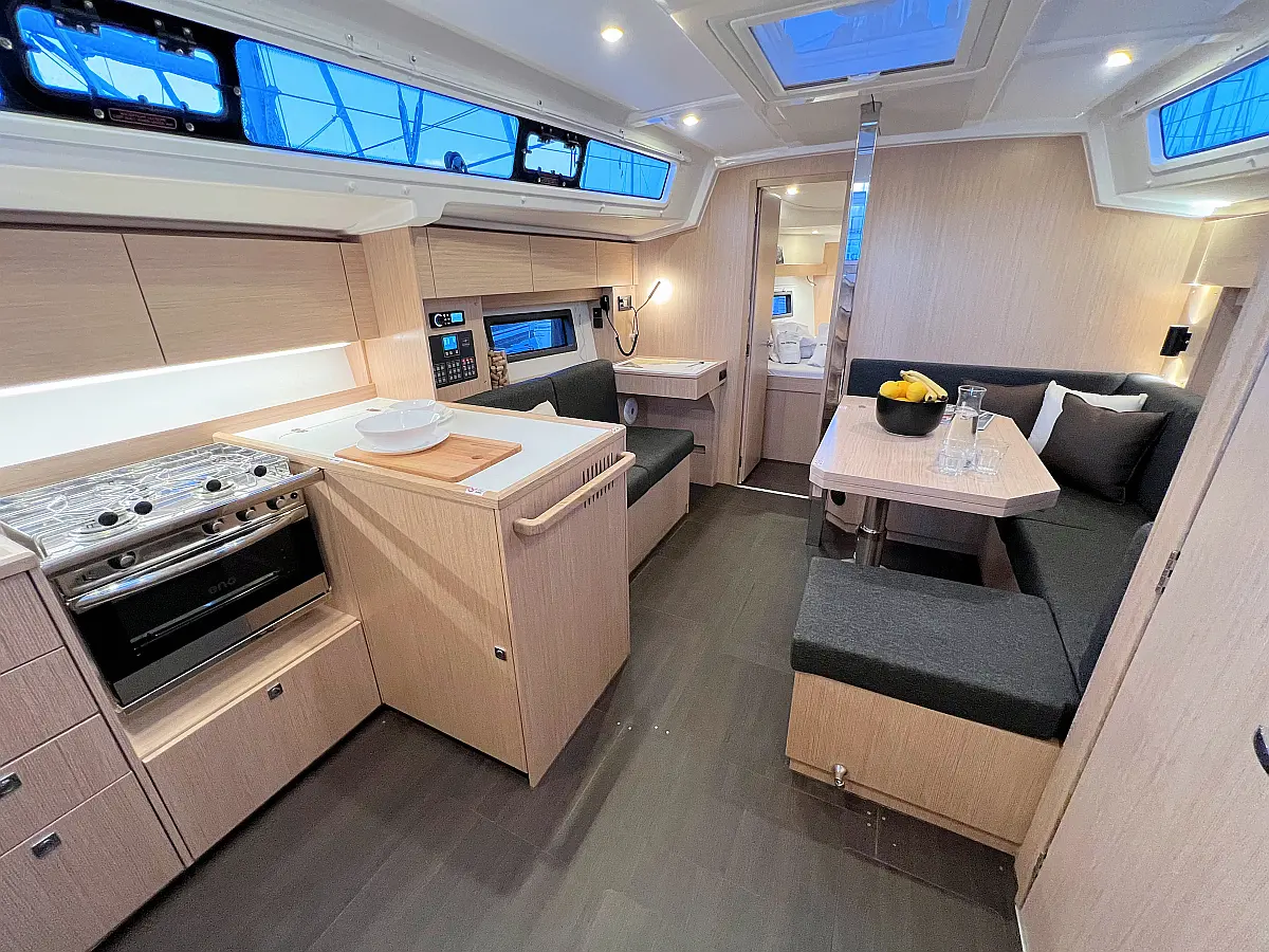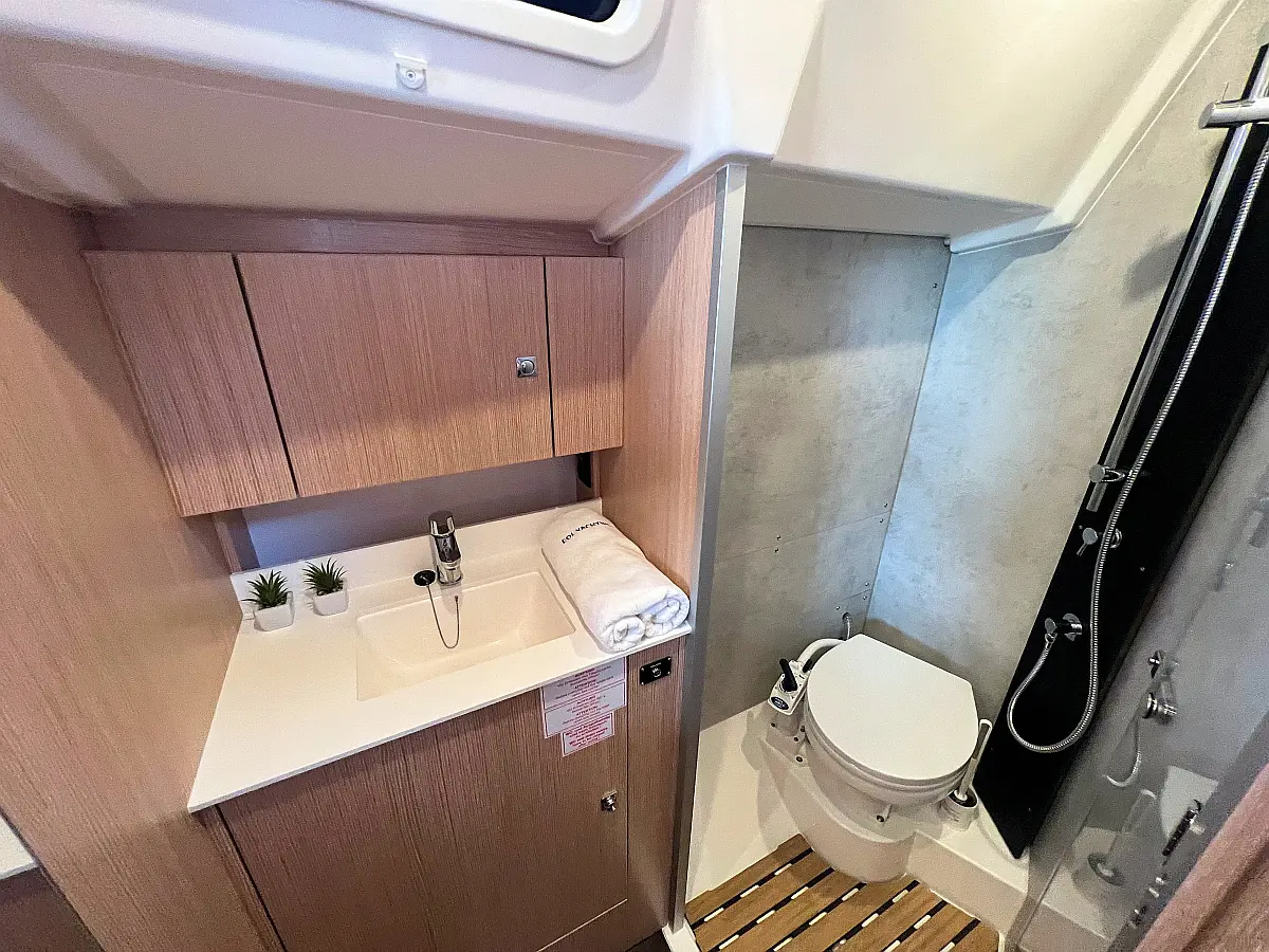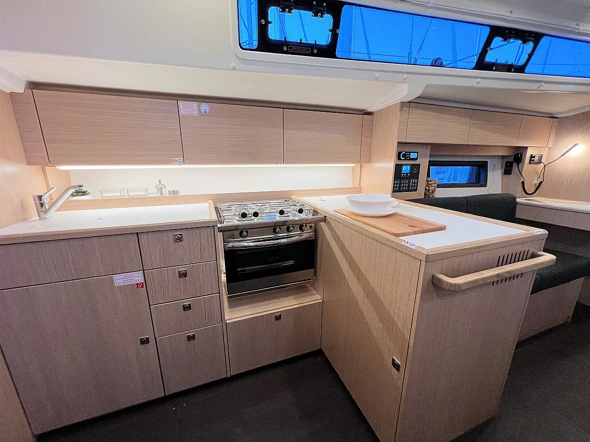 Lautsprecher im Cockpit, Fäkalientank, Bimini, Cockpit-Kissen, Beiboot, Sprayhood, Teak Cockpit, Kühlschrank, Heizung, Solar-Panele