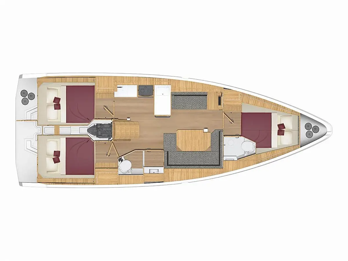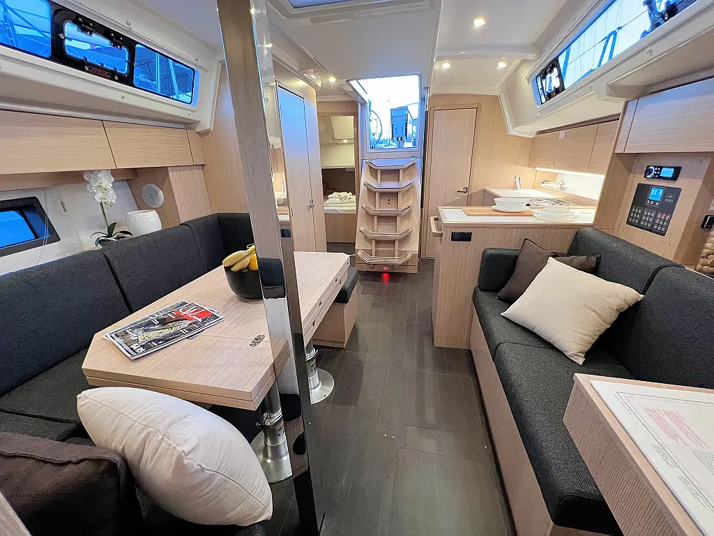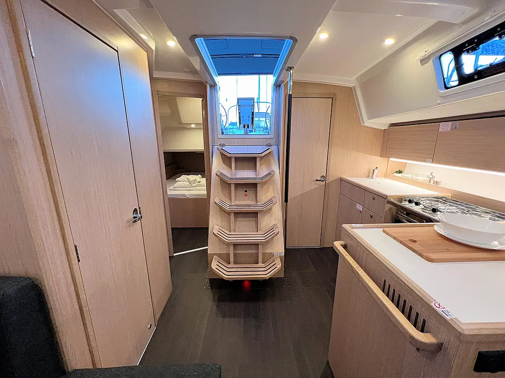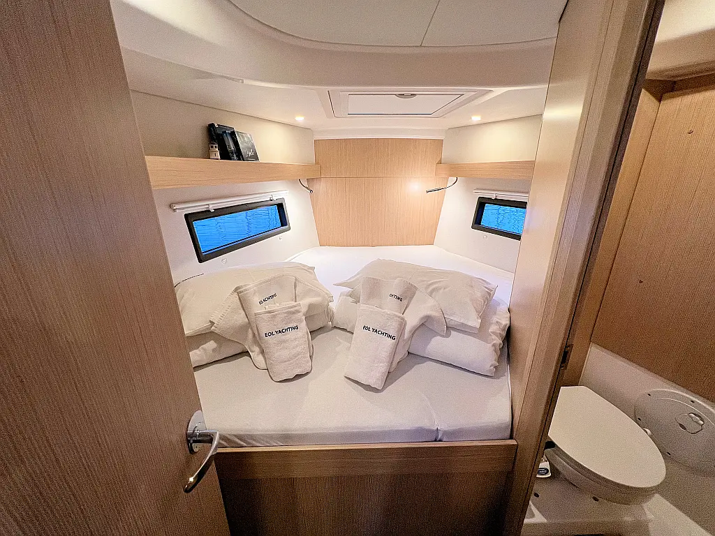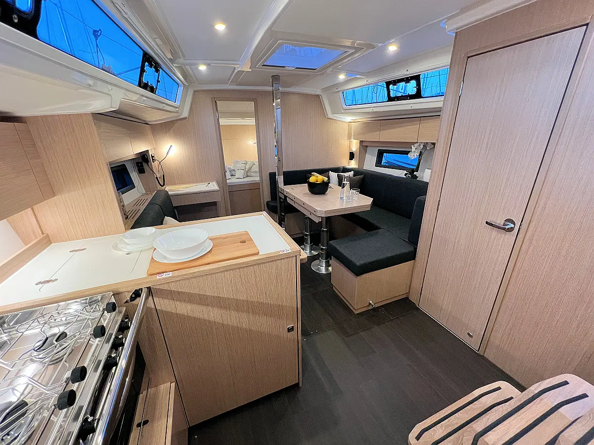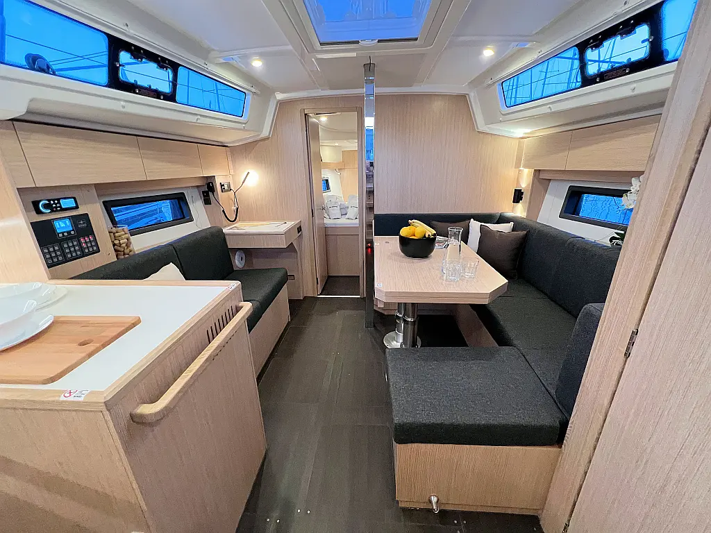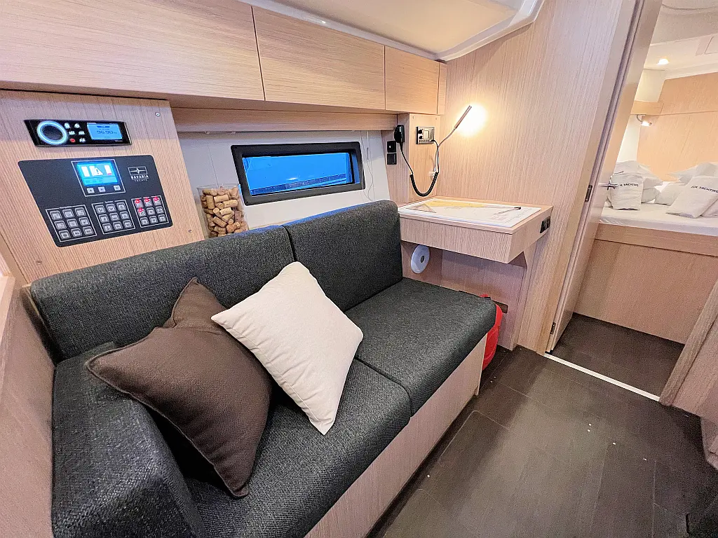 Lautsprecher im Cockpit, Fäkalientank, Bimini, Cockpit-Kissen, Beiboot, Sprayhood, Teak Cockpit, Kühlschrank, Heizung, Solar-Panele
