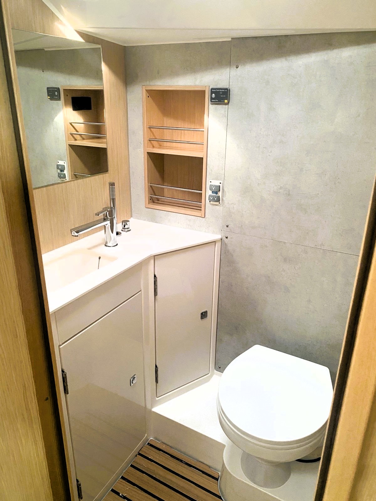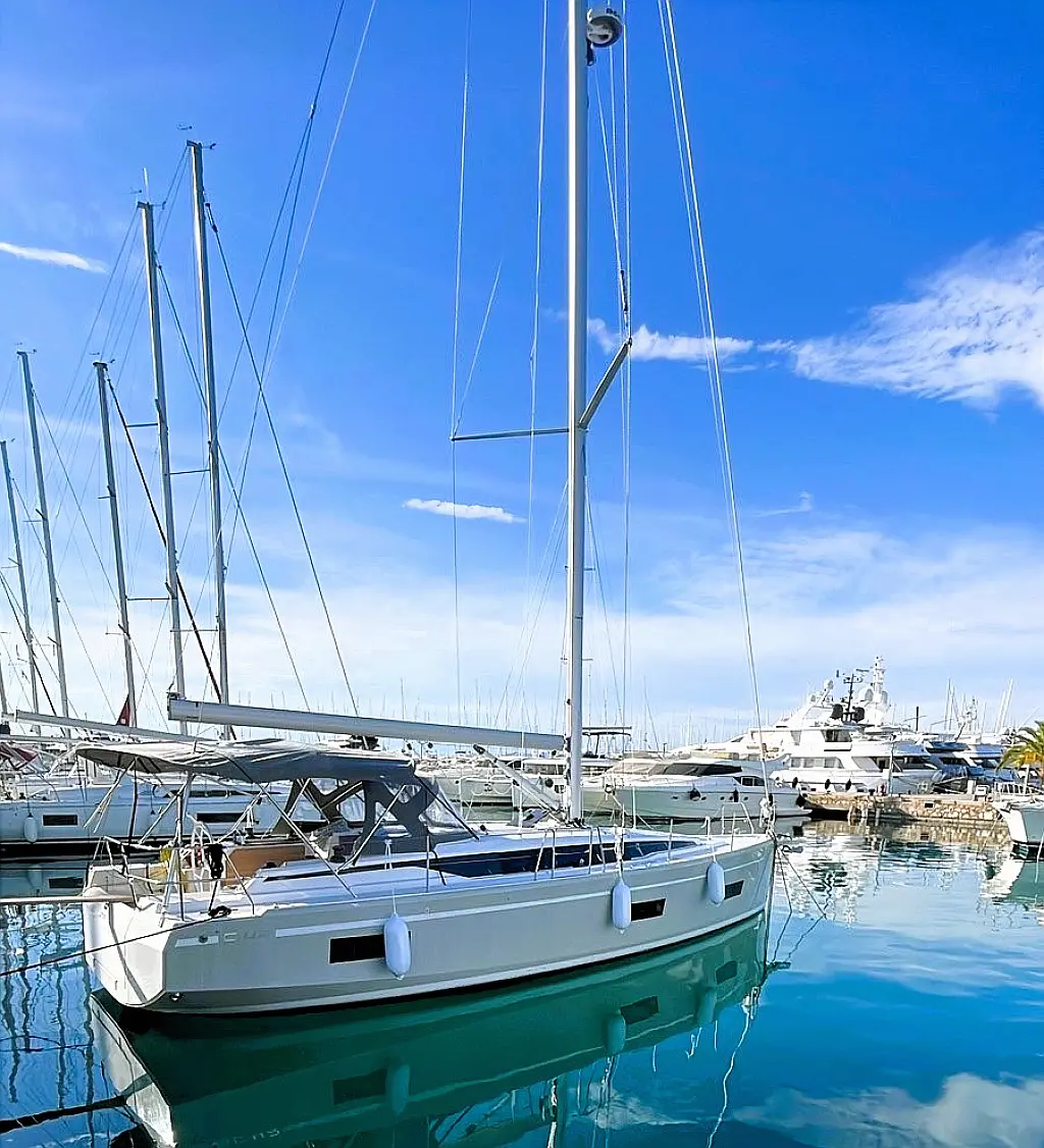 Sprayhood, Cockpit-Kissen, Außenbordmotor, Beiboot, Badeplattform, Heizung, Solar-Panele, Inverter, Elektrische Toilette, Kühlschrank