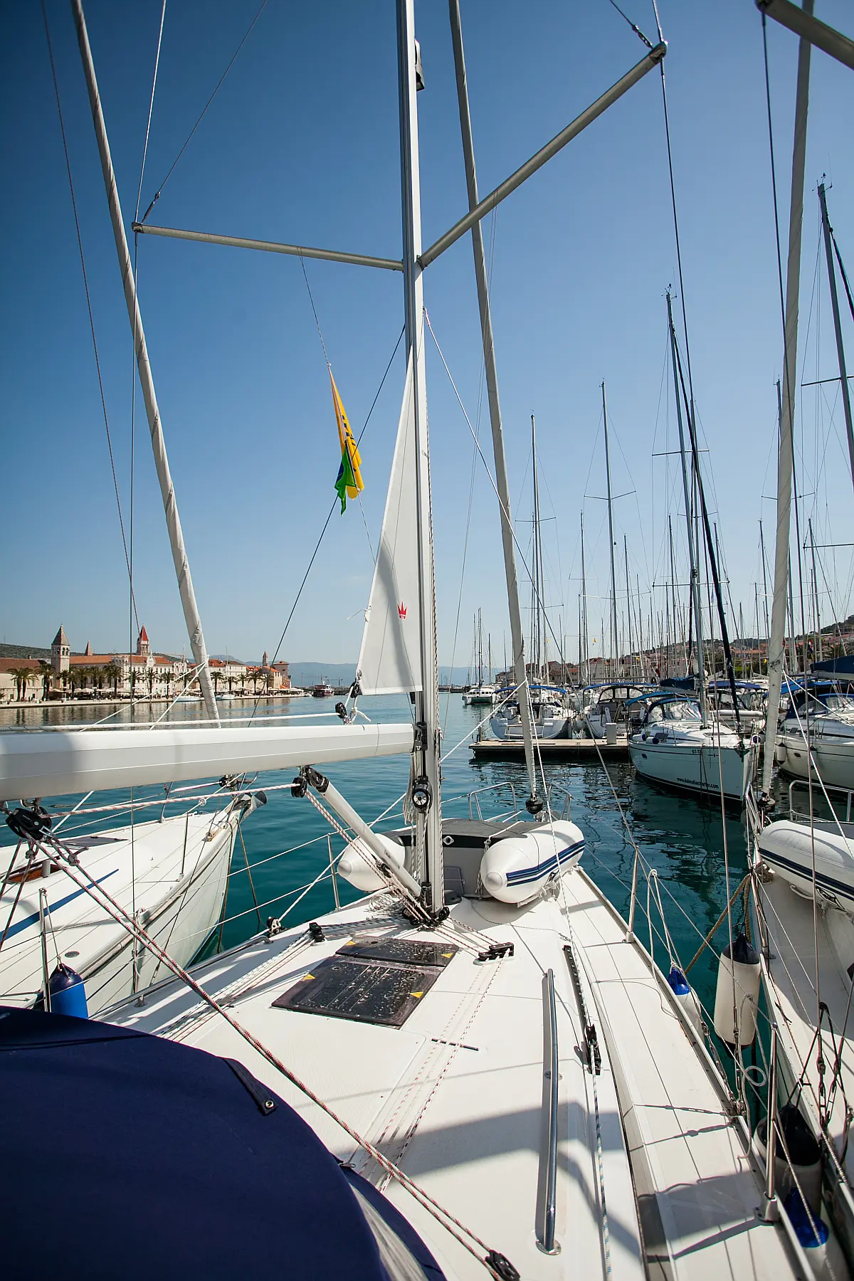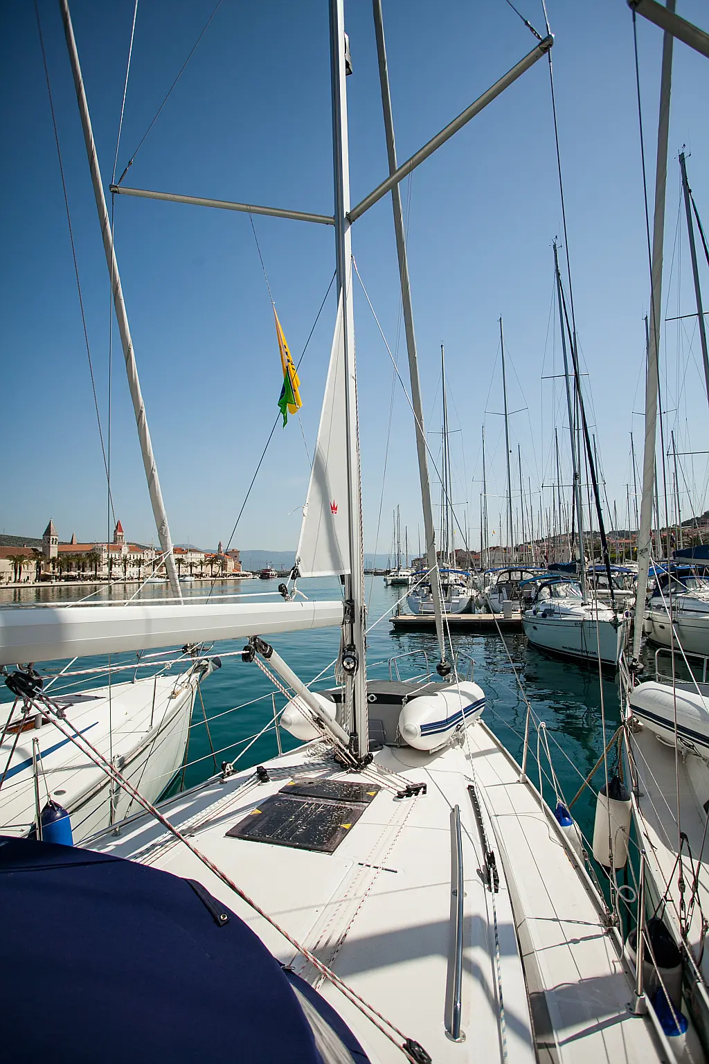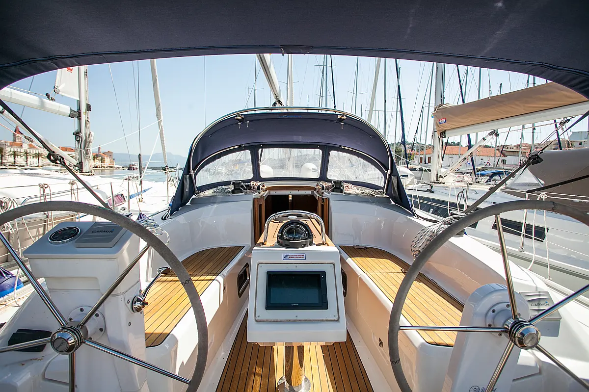 Bimini, Sprayhood, Außenbordmotor, Elektrische Toilette, Teak Cockpit, Heizung, Solar-Panele, Cockpit-Kissen
