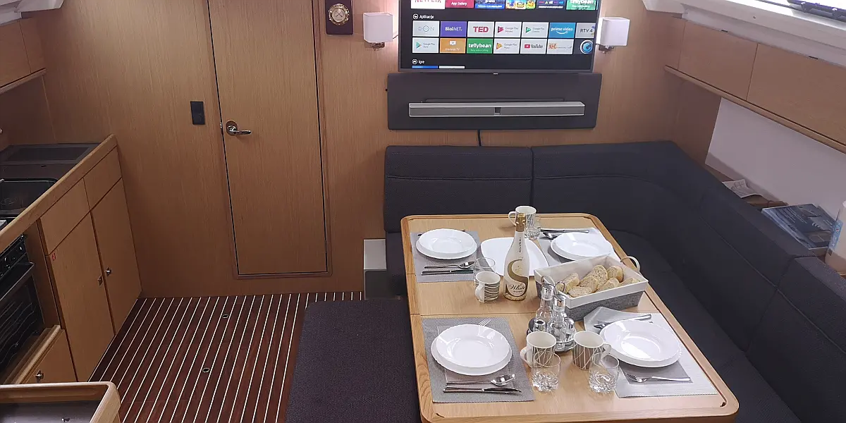 Bimini, Lautsprecher im Cockpit, Beiboot, Sprayhood, Teak Cockpit, Solar-Panele, Kühlschrank