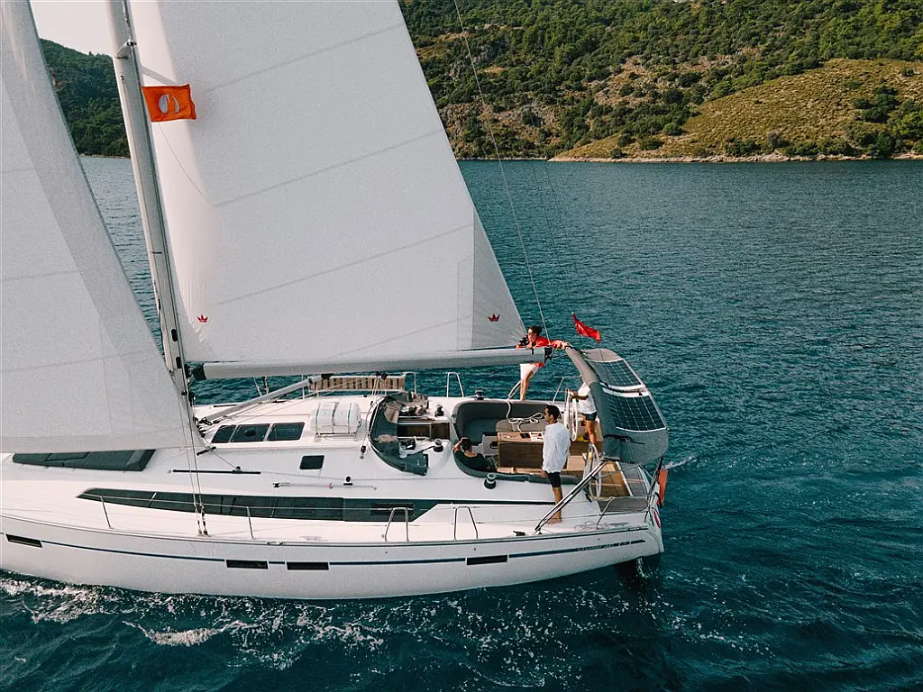 Beiboot, Teak Cockpit, Cockpit-Kissen, Bimini, Badeplattform, Elektrische Toilette, Kühlschrank, Inverter, Solar-Panele