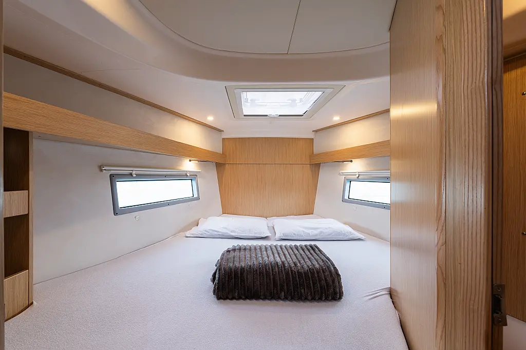 Klimaanlage, Fäkalientank, Bimini, Sprayhood, Beiboot, Lautsprecher im Cockpit, Elektrische Toilette, Solar-Panele, Cockpit-Kissen