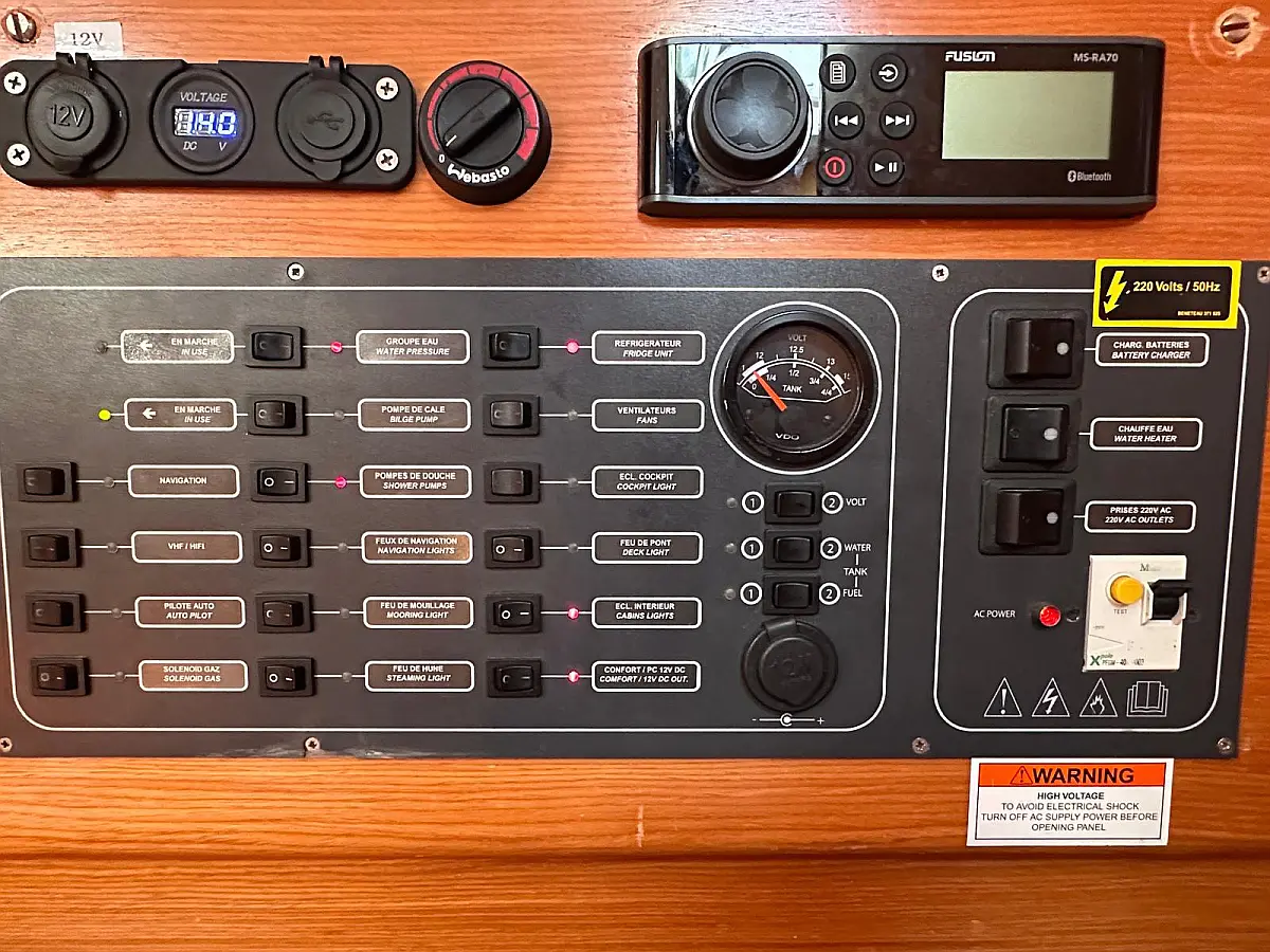 Klimaanlage, Bimini, Lautsprecher im Cockpit, Kühlschrank, Heizung, Solar-Panele, Sprayhood