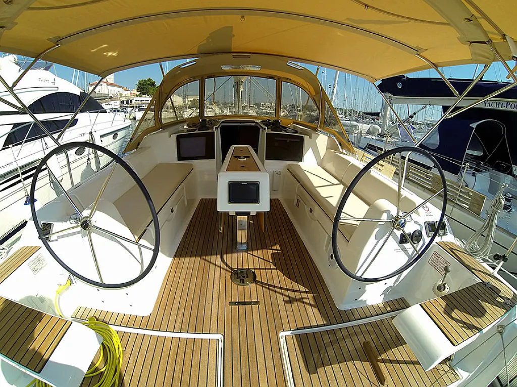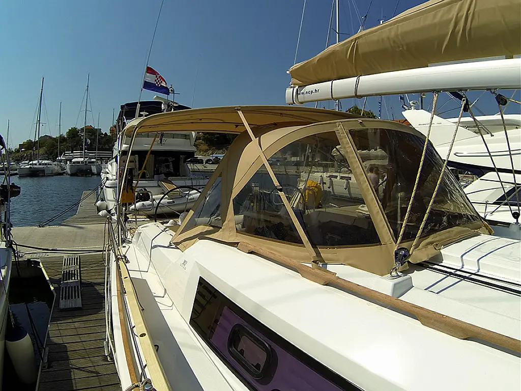 Heizung, Kühlschrank, Bimini, Cockpit-Kissen, Sprayhood, Außenbordmotor, Beiboot, Wi-Fi und Internet