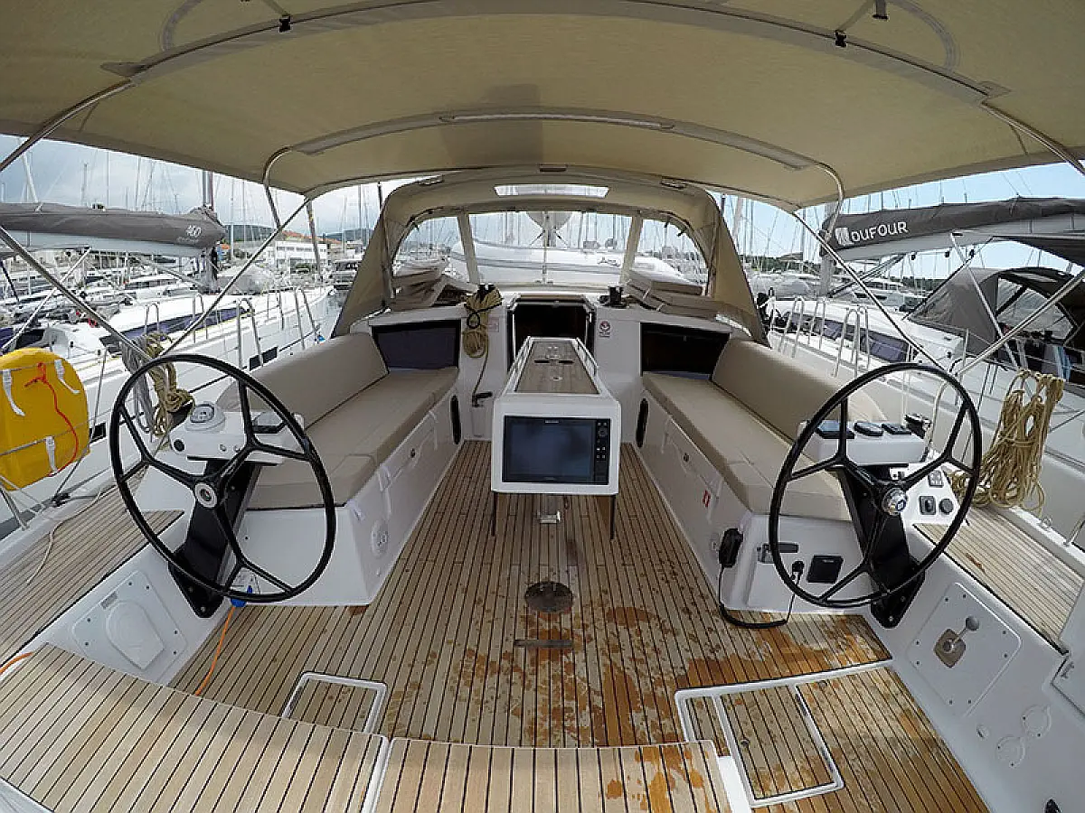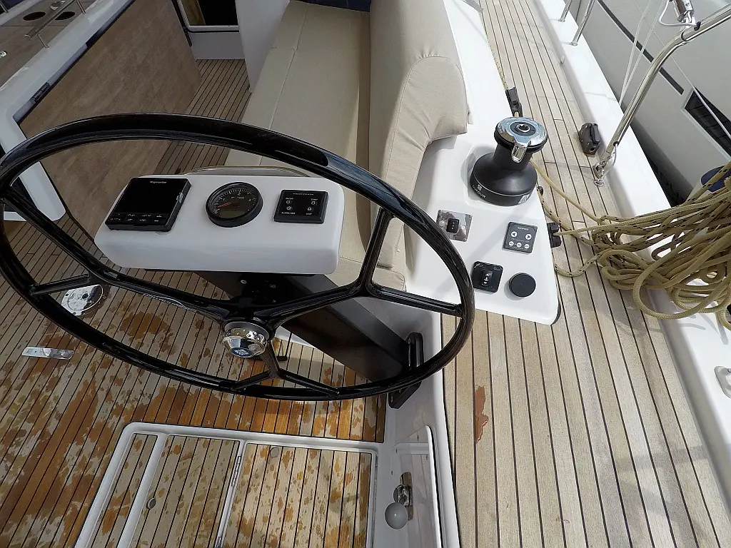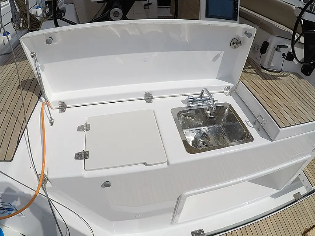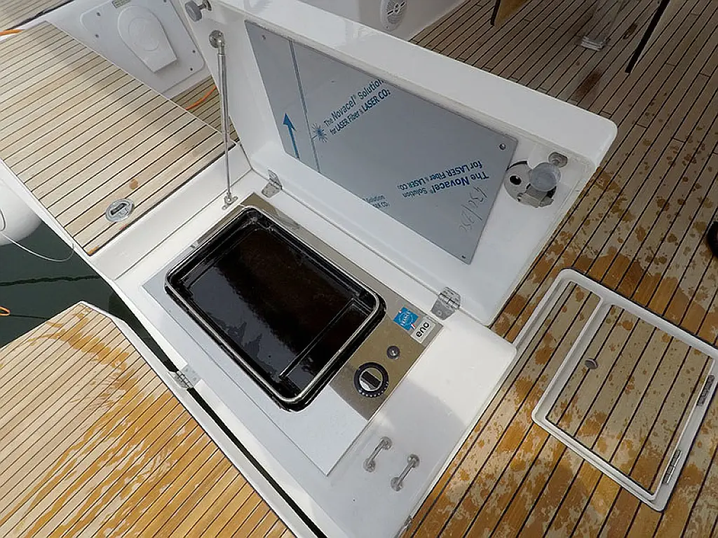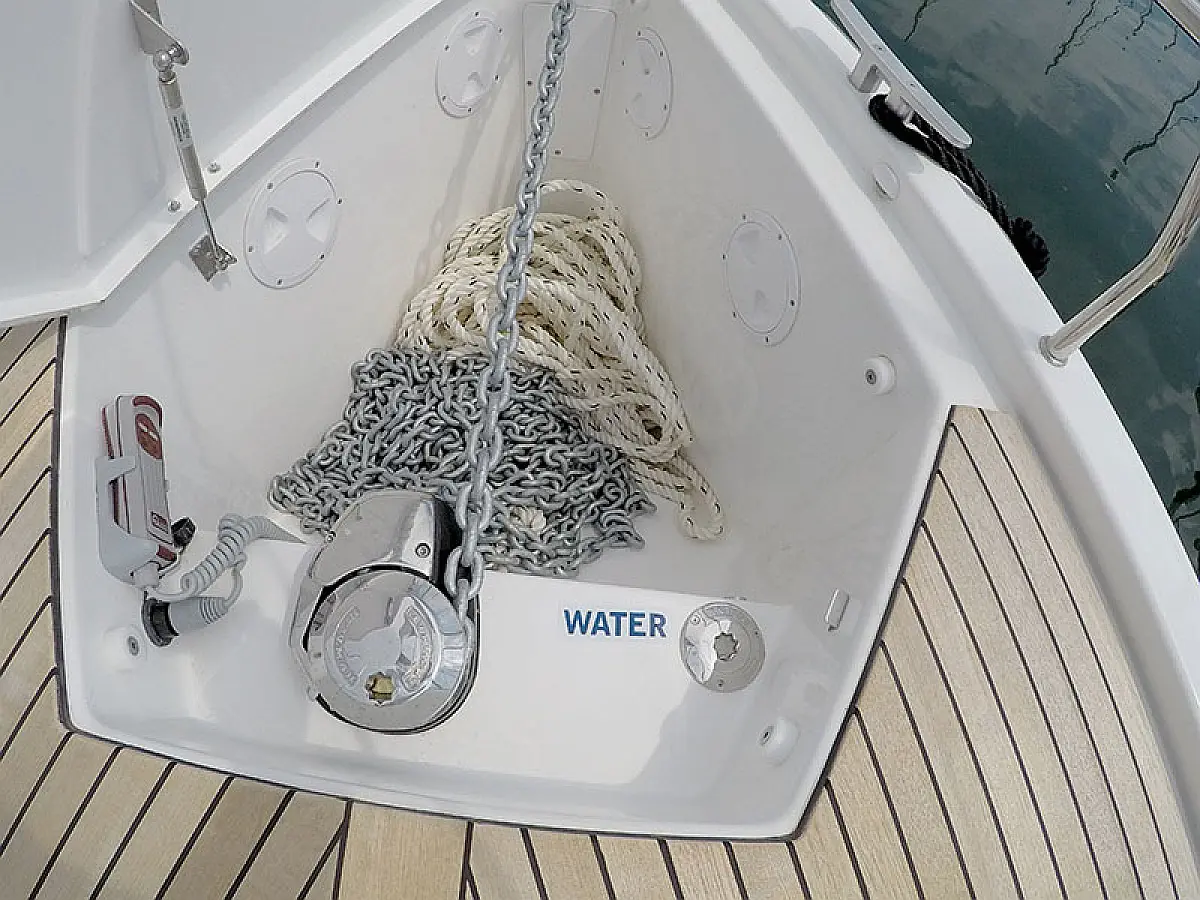 Klimaanlage, Kühlschrank, Grill im Cockpit, Bimini, Cockpit-Kissen, Sprayhood, Außenbordmotor, Beiboot, Wi-Fi und Internet