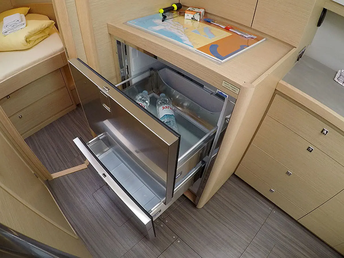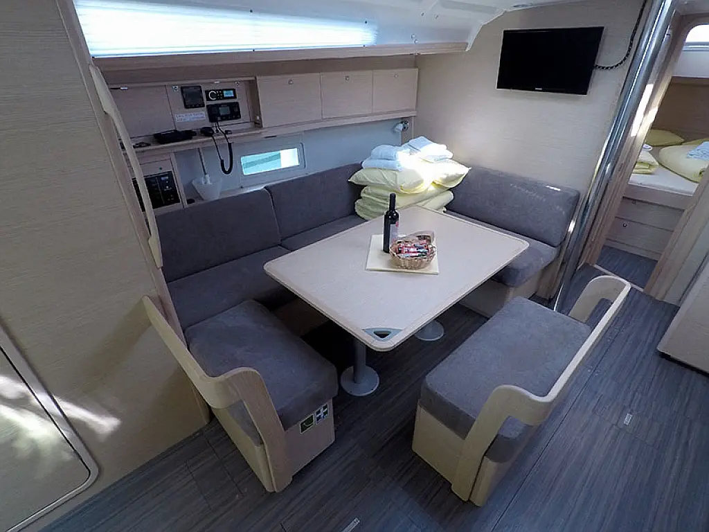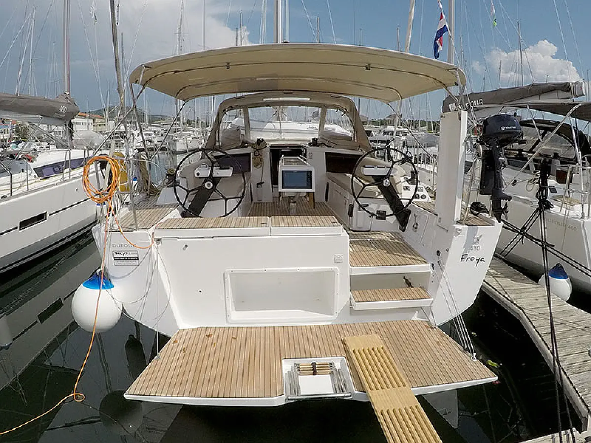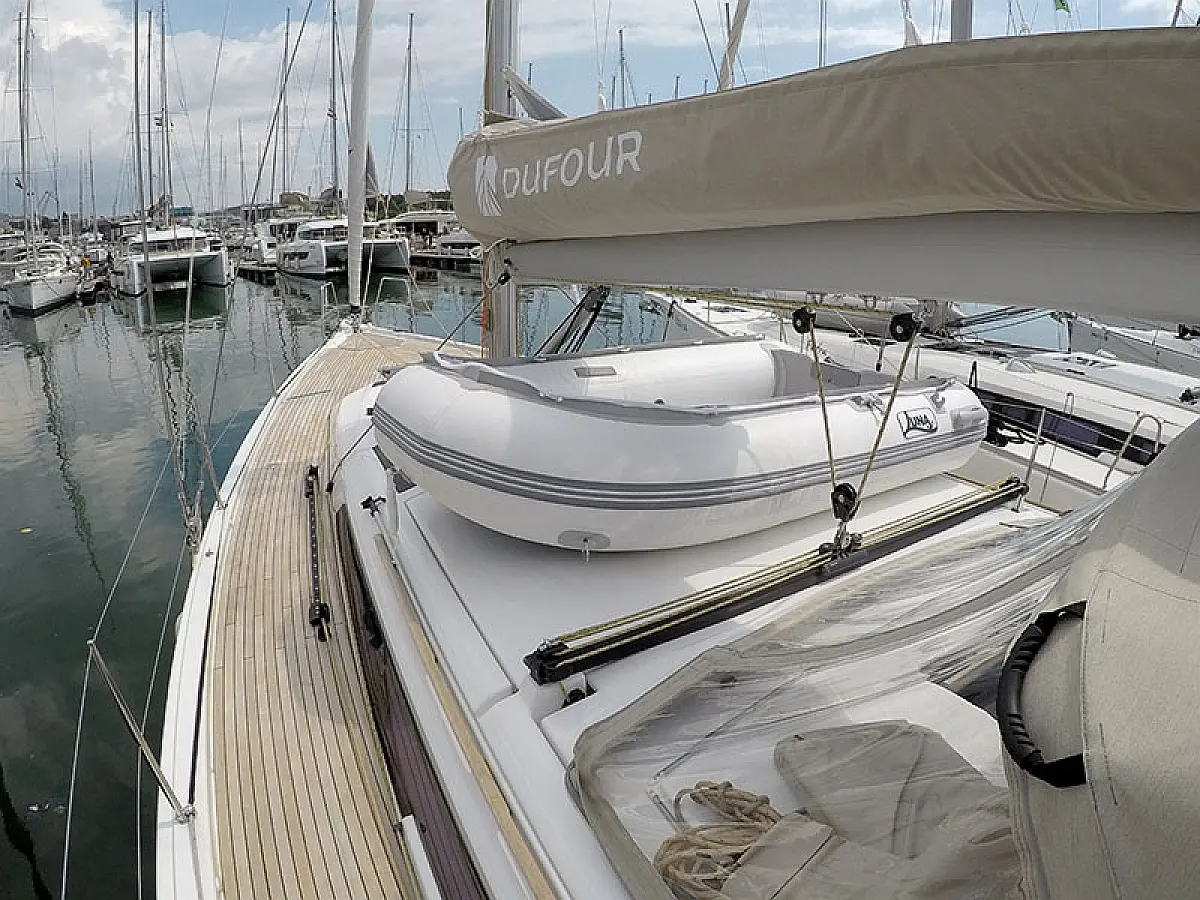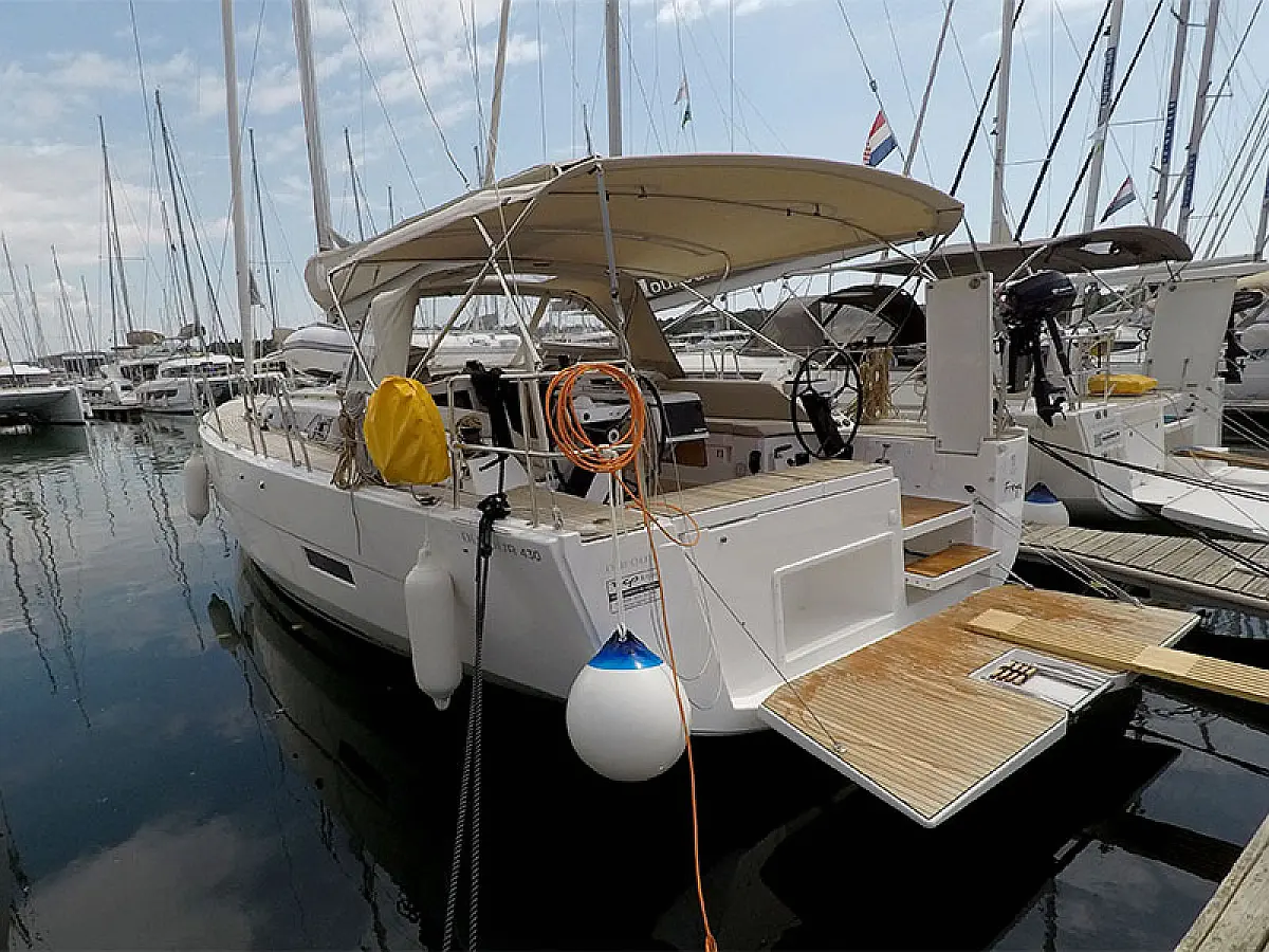 Klimaanlage, Kühlschrank, Grill im Cockpit, Bimini, Cockpit-Kissen, Sprayhood, Außenbordmotor, Beiboot, Wi-Fi und Internet
