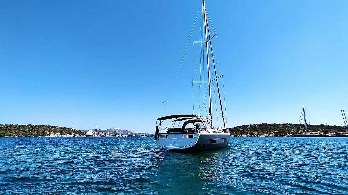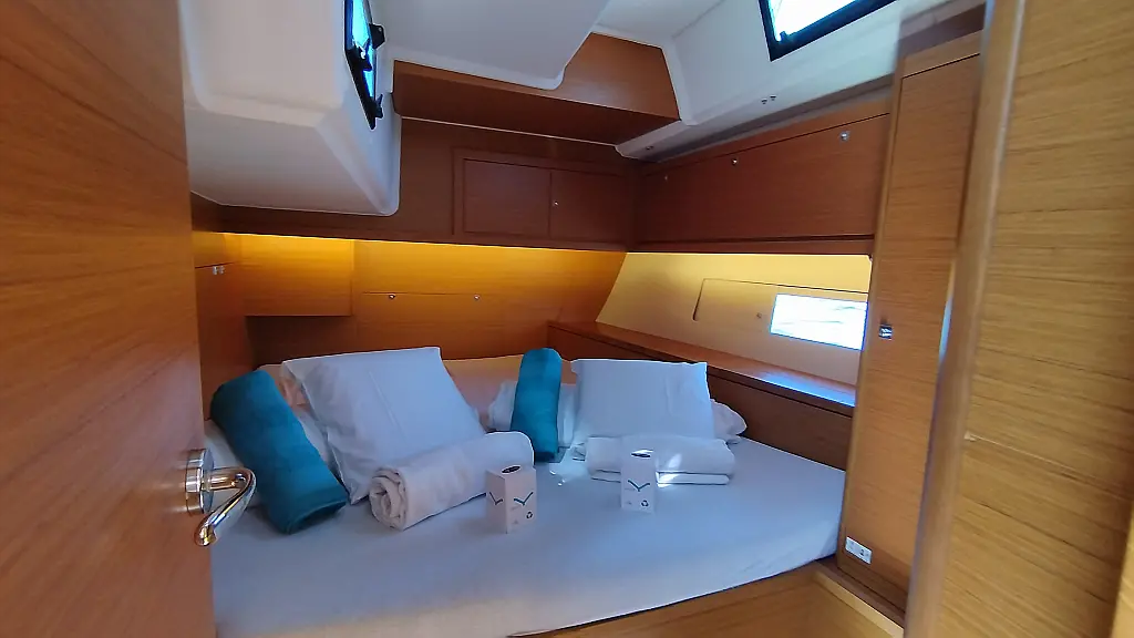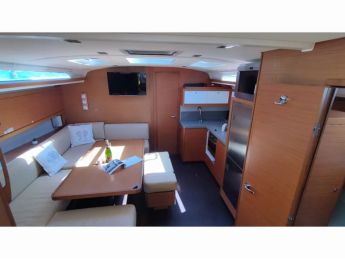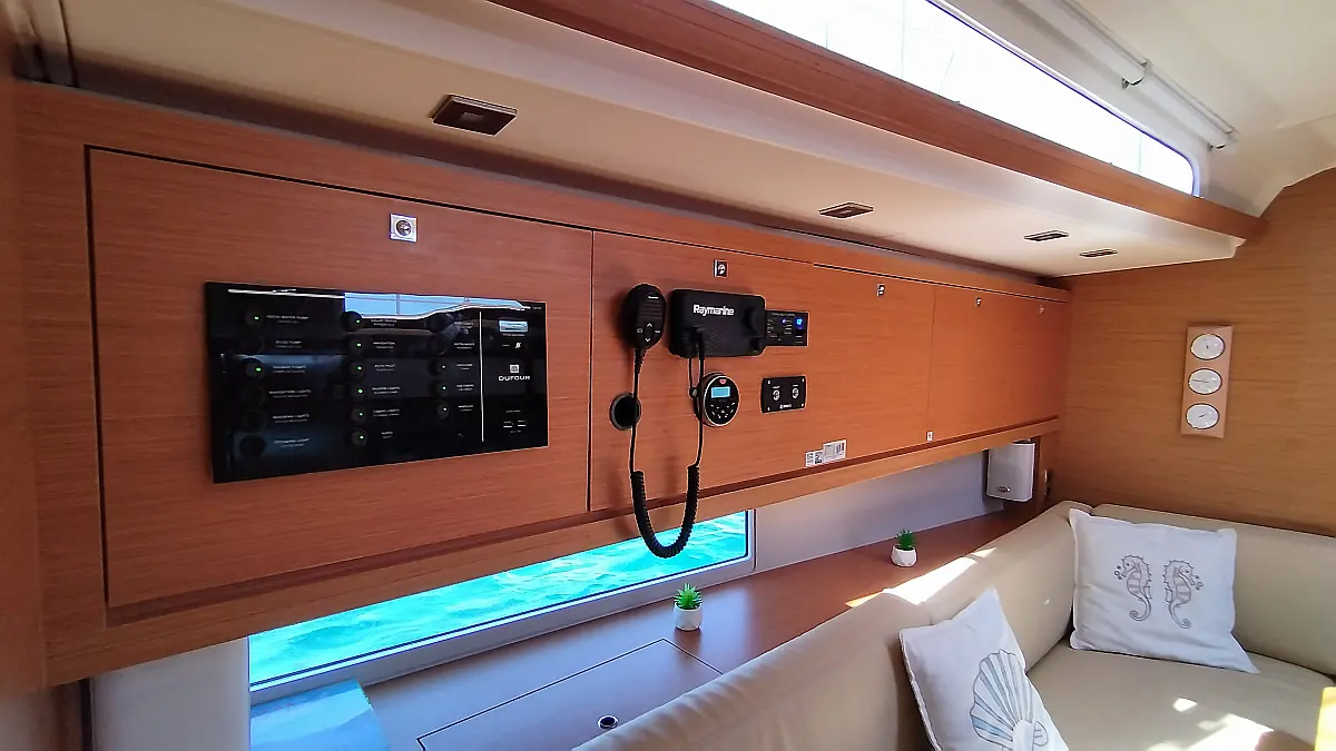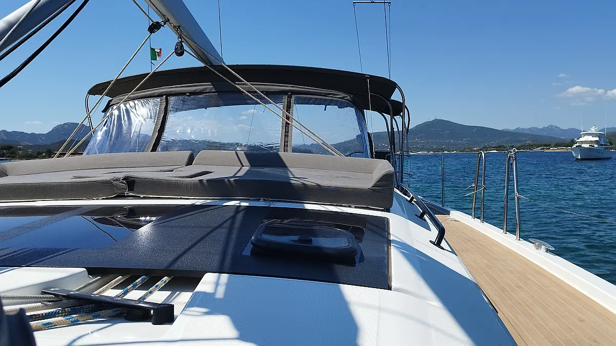 Cockpit-Kissen, Grill im Cockpit, Teakdeck, Elektrische Toilette, Kühlschrank, Elektrische Winch (Segel), Hydraulische Gangway, Inverter, Solar-Panele, Badeplattform