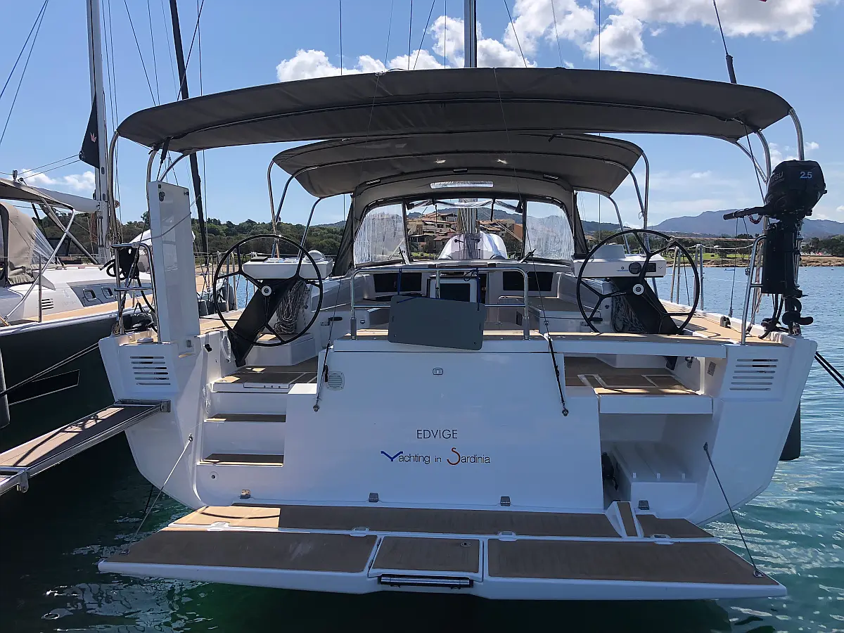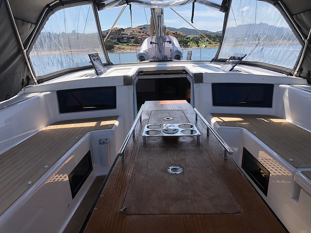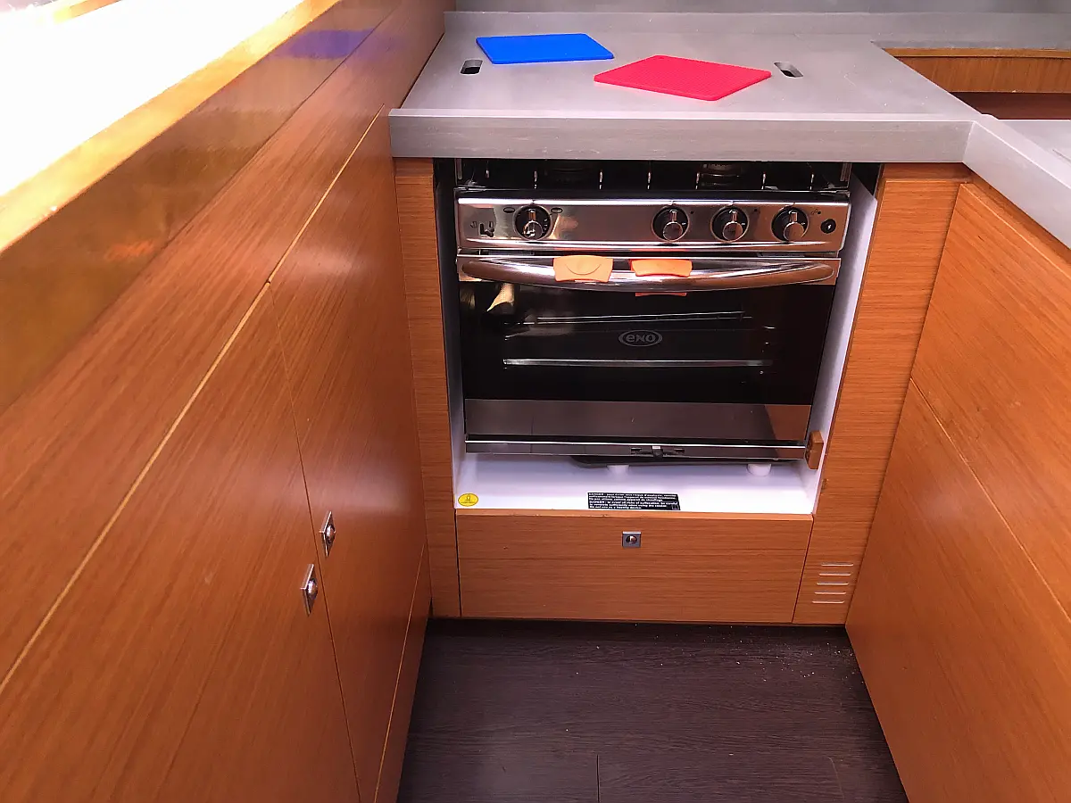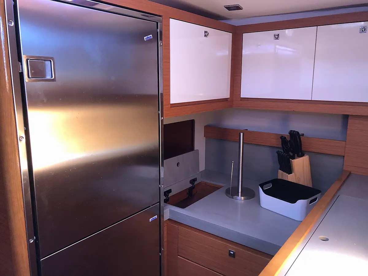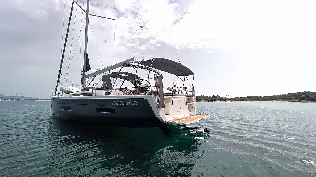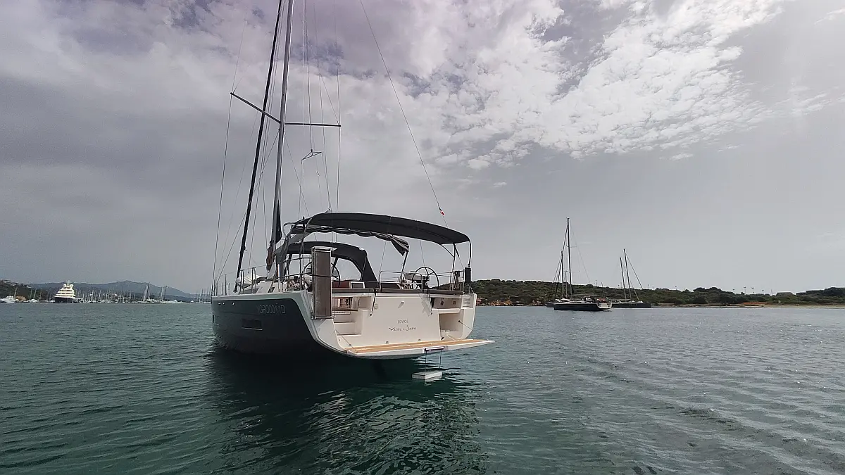 Cockpit-Kissen, Grill im Cockpit, Teakdeck, Elektrische Toilette, Kühlschrank, Badeplattform, Elektrische Winch (Segel), Hydraulische Gangway, Inverter, Solar-Panele