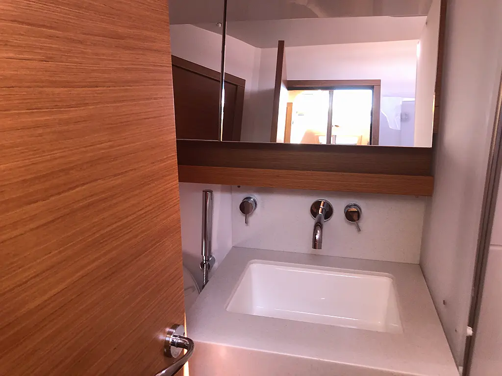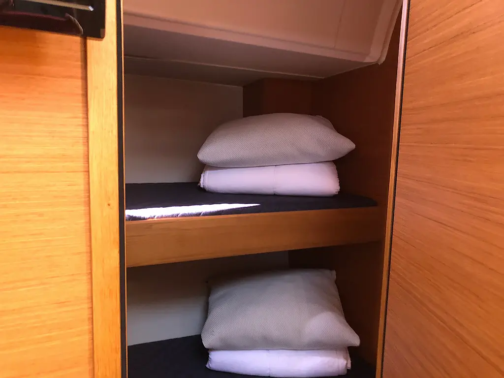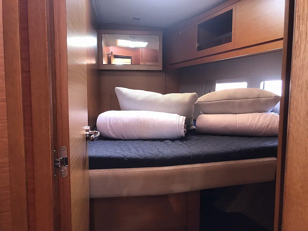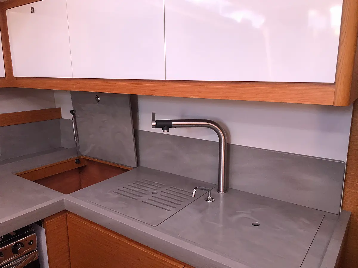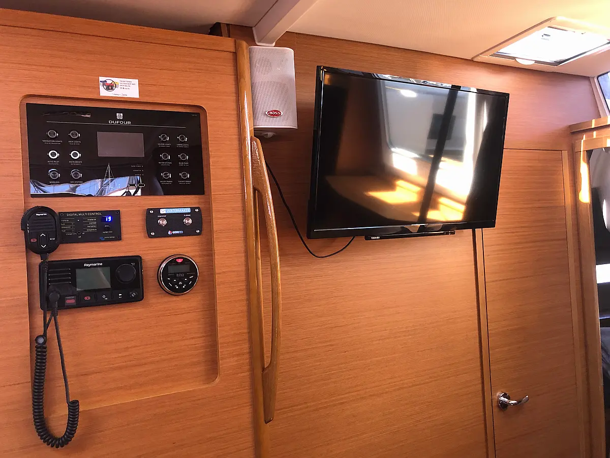 Cockpit-Kissen, Grill im Cockpit, Teakdeck, Elektrische Toilette, Kühlschrank, Badeplattform, Elektrische Winch (Segel), Hydraulische Gangway, Inverter, Solar-Panele