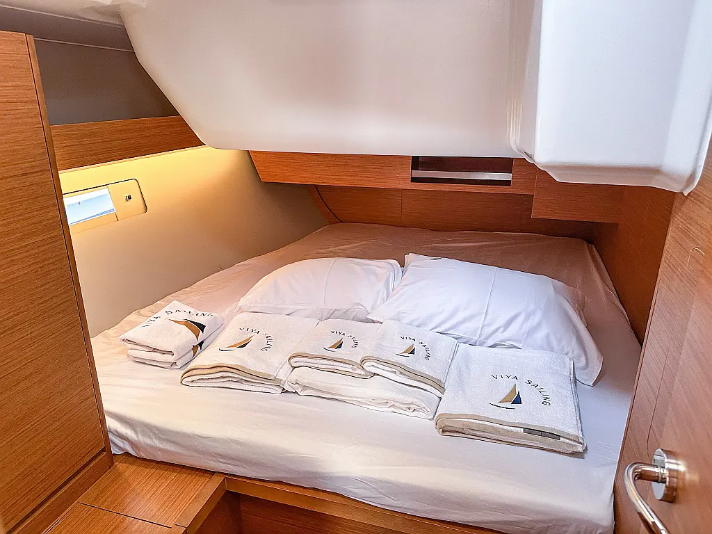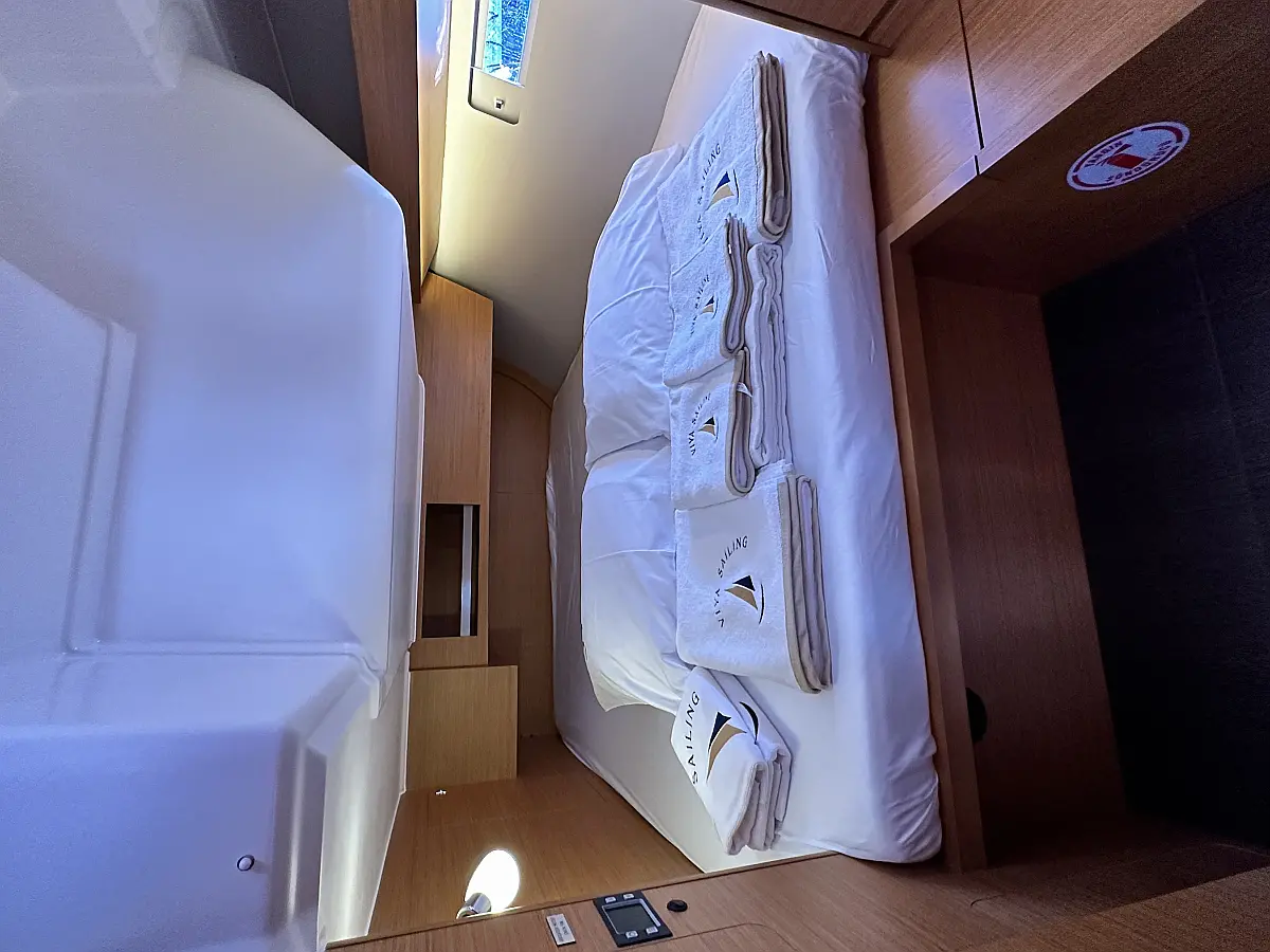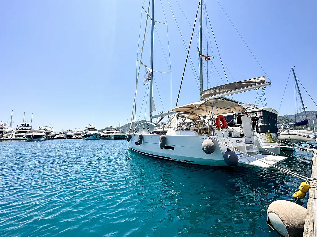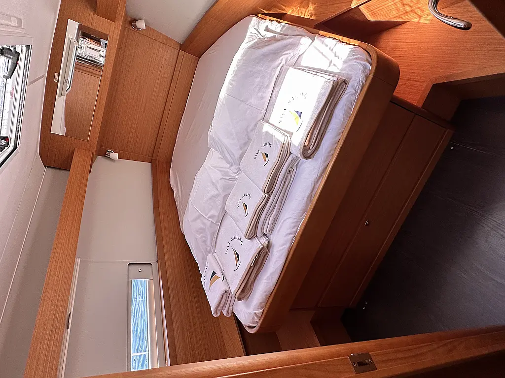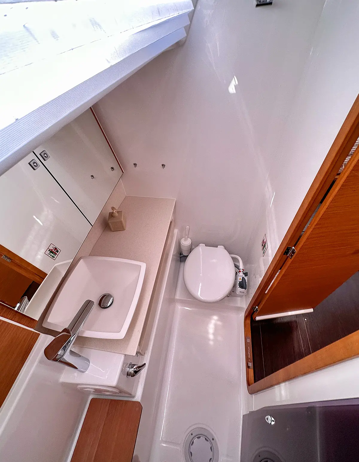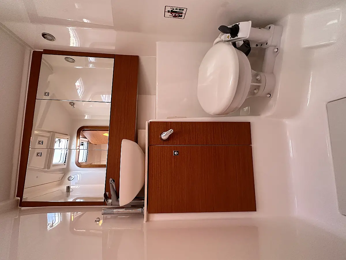 Solar-Panele, Inverter, Außenbordmotor, Bimini, Cockpit-Kissen, Badeplattform, Grill im Cockpit, Kühlschrank, Elektrische Toilette