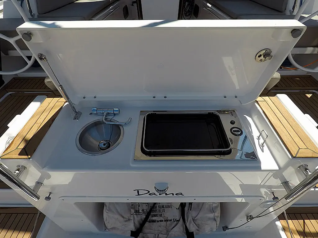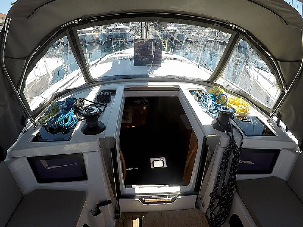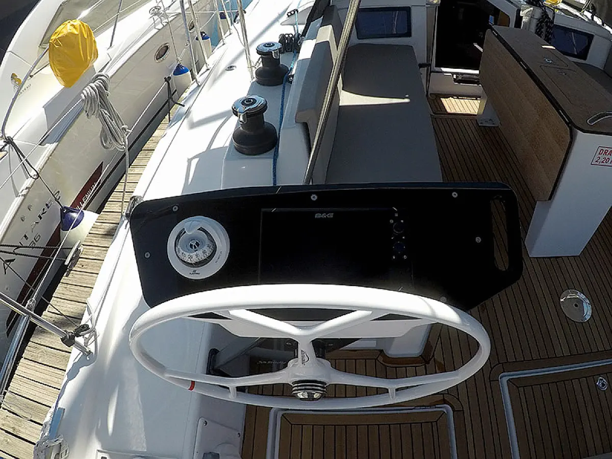 Generator, Wassermacher, Klimaanlage, Kühlschrank, Grill im Cockpit, Bimini, Cockpit-Kissen, Sprayhood, Außenbordmotor, Beiboot, Wi-Fi und Internet