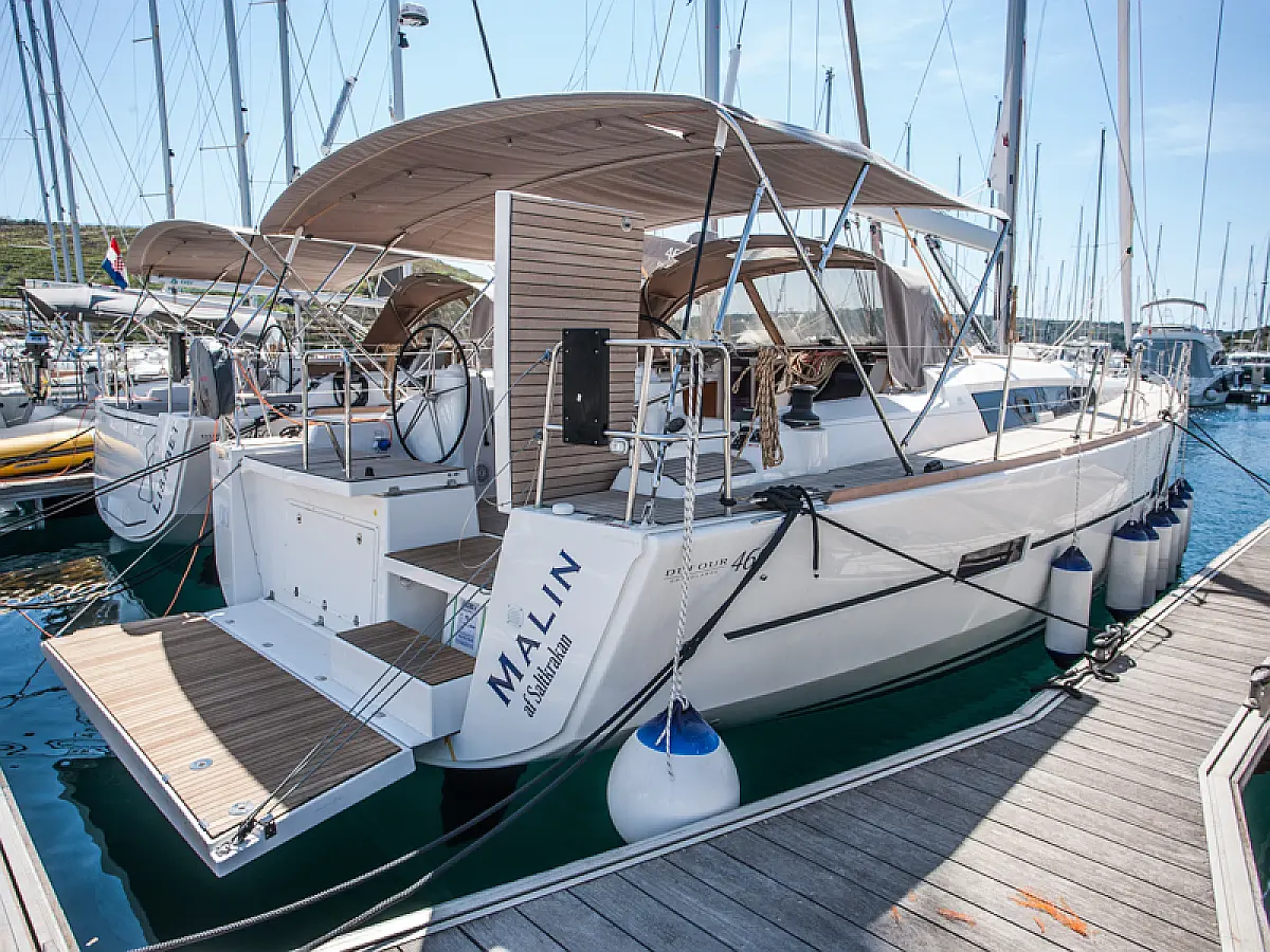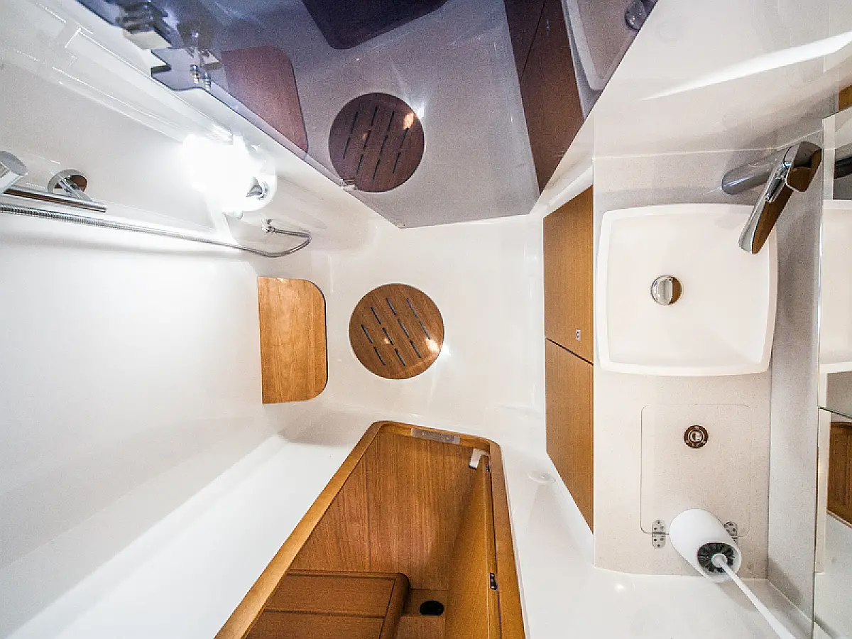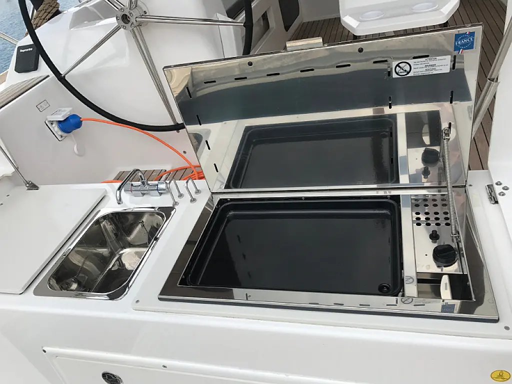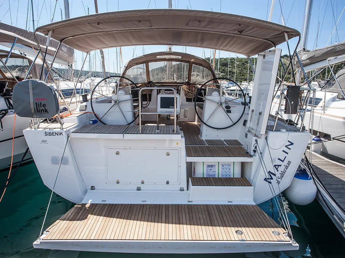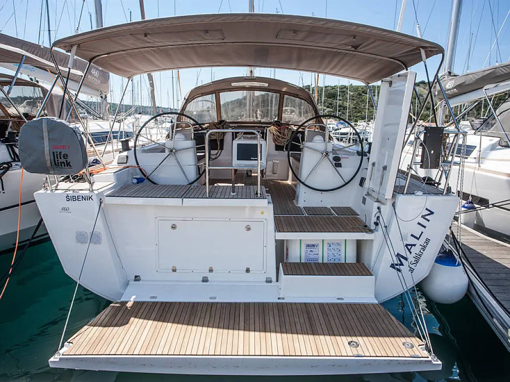 Teak Cockpit, Sprayhood, Bimini, Grill im Cockpit, Cockpit-Kissen, Außenbordmotor, Teakdeck, Kühlschrank, Kaffeemaschine, Heizung, Generator, Klimaanlage