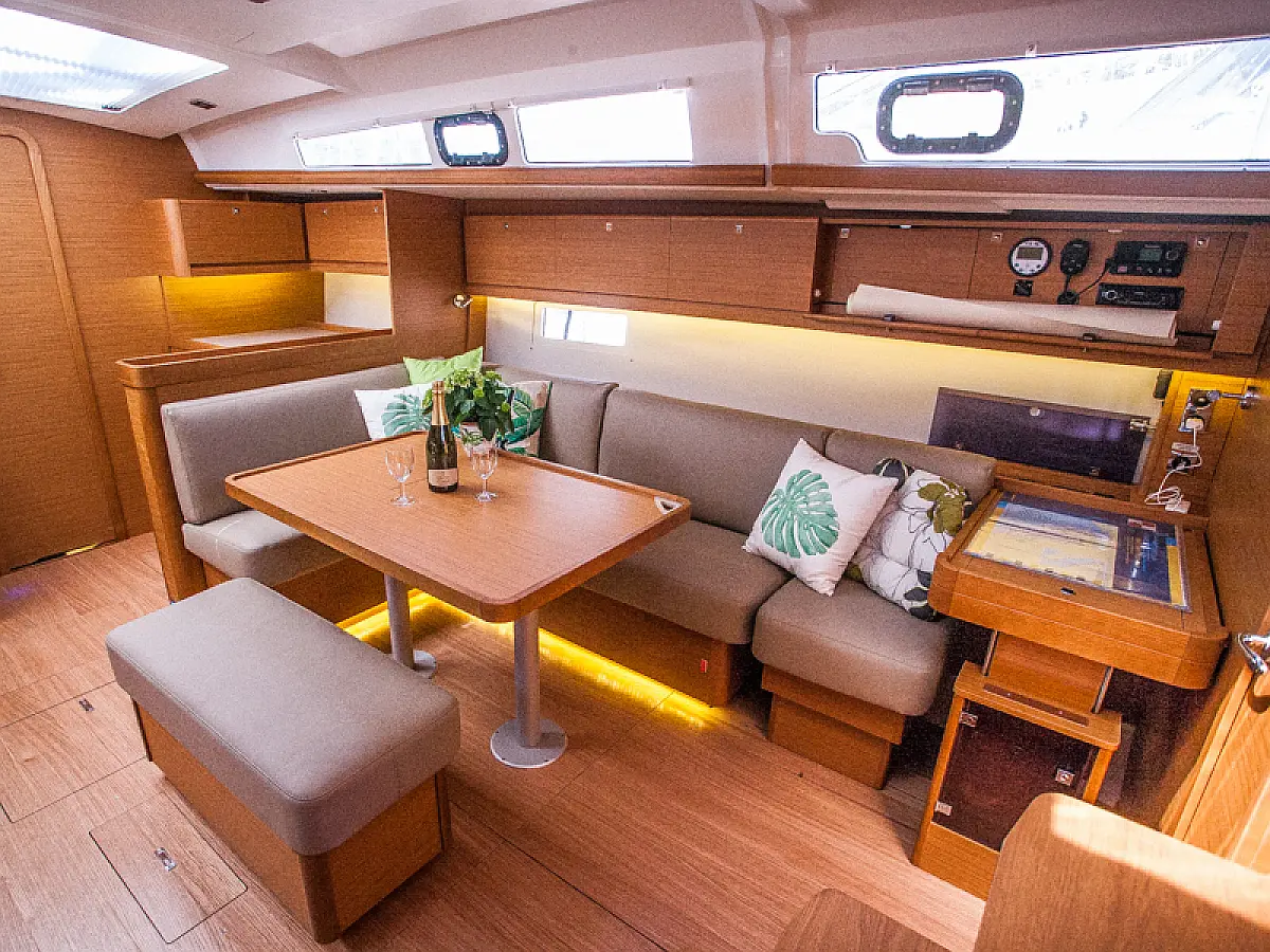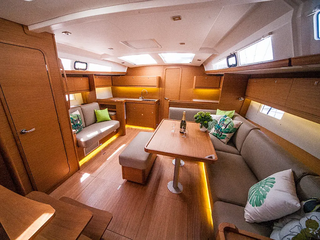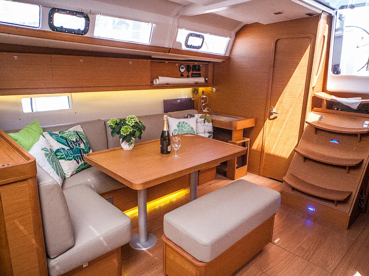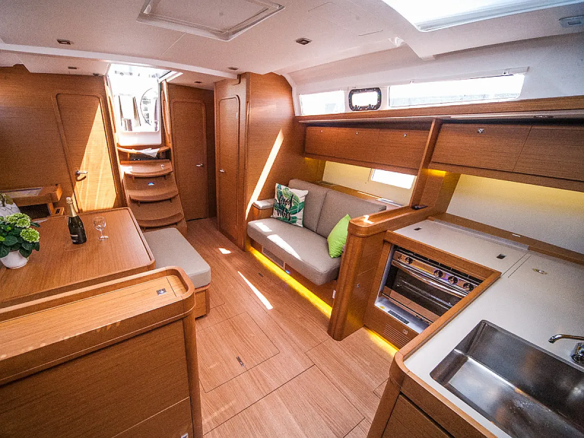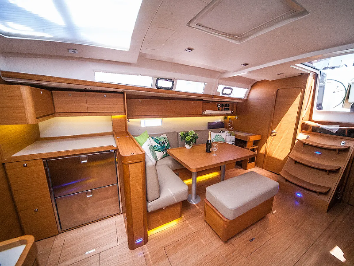 Teak Cockpit, Sprayhood, Bimini, Grill im Cockpit, Cockpit-Kissen, Außenbordmotor, Teakdeck, Kühlschrank, Kaffeemaschine, Heizung, Generator, Klimaanlage