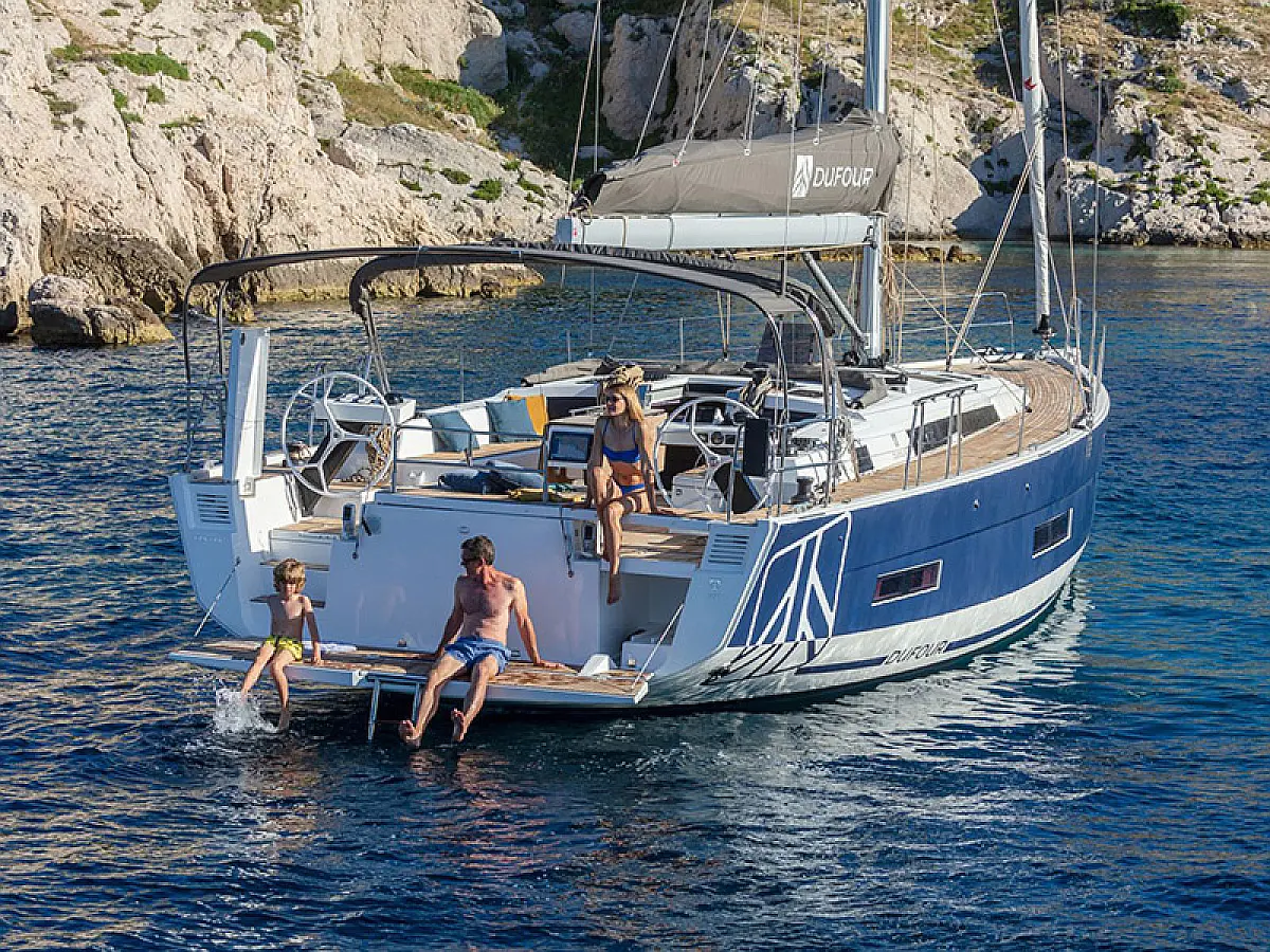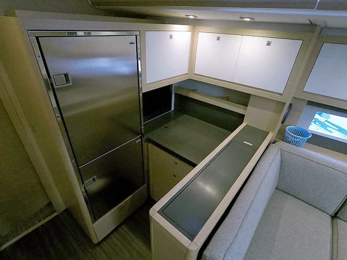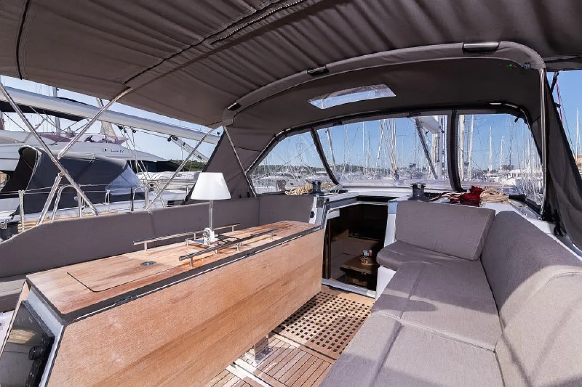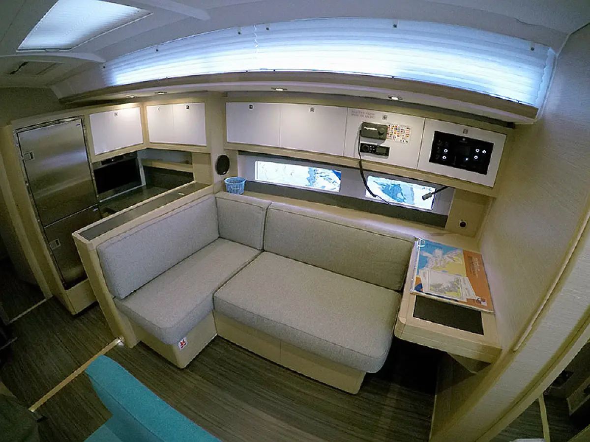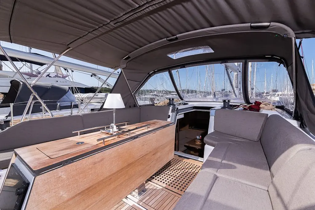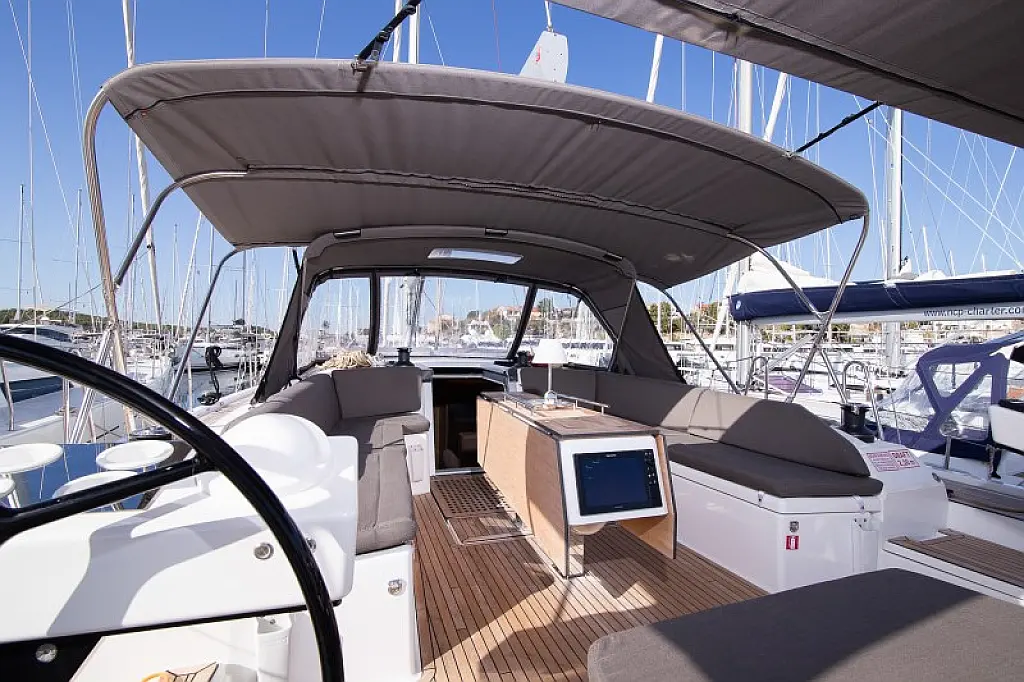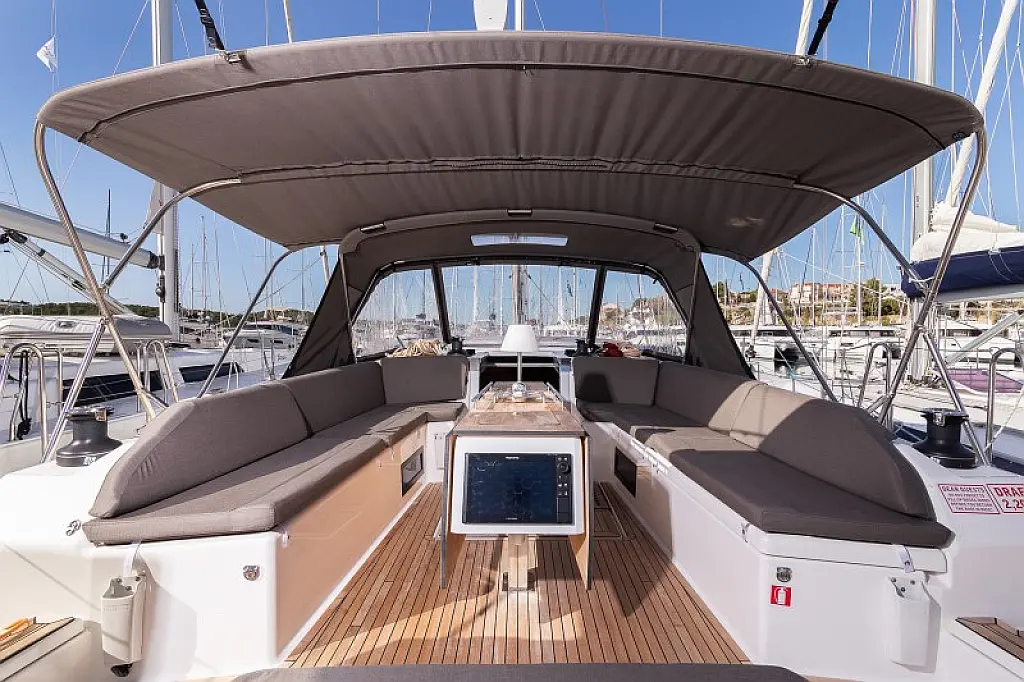 Generator, Heizung, Klimaanlage, Kühlschrank, Grill im Cockpit, Bimini, Cockpit-Kissen, Sprayhood, Außenbordmotor, Beiboot, Wi-Fi und Internet