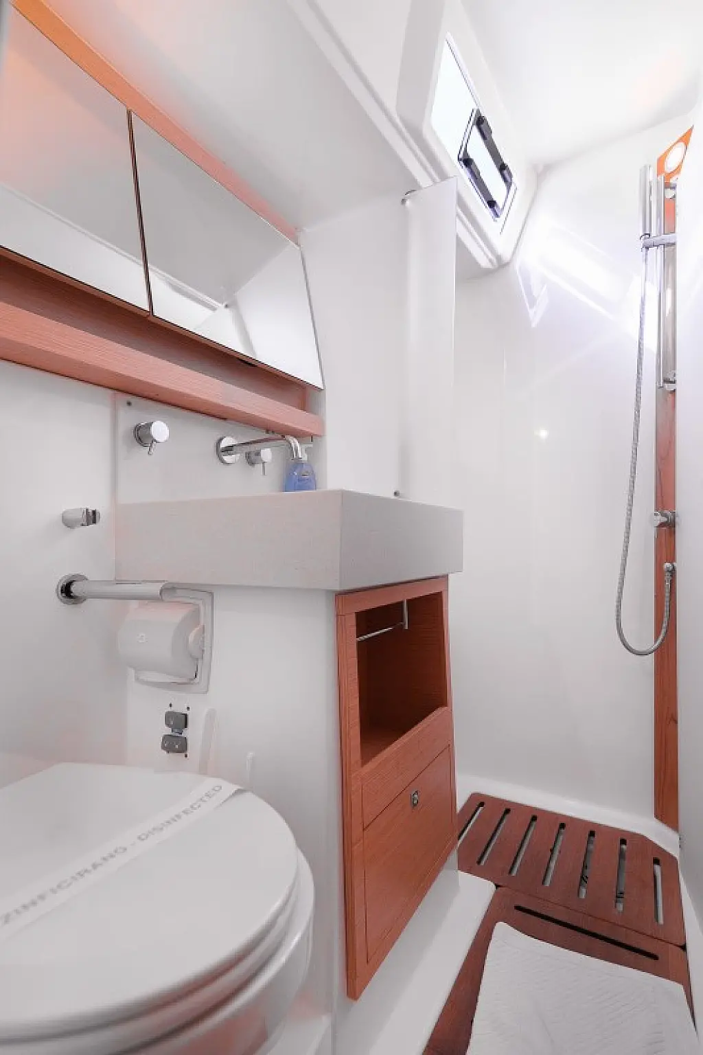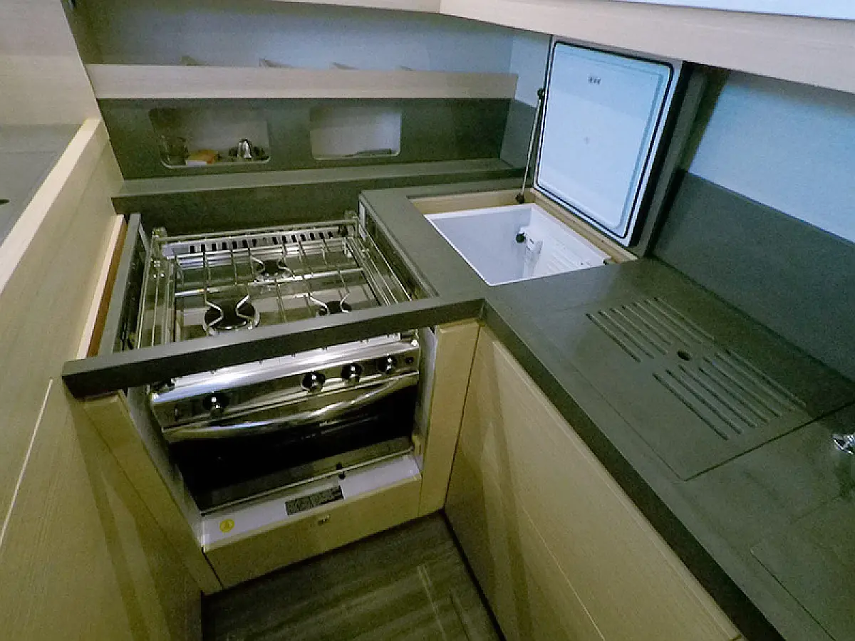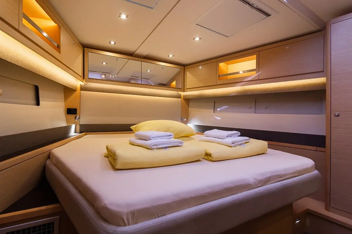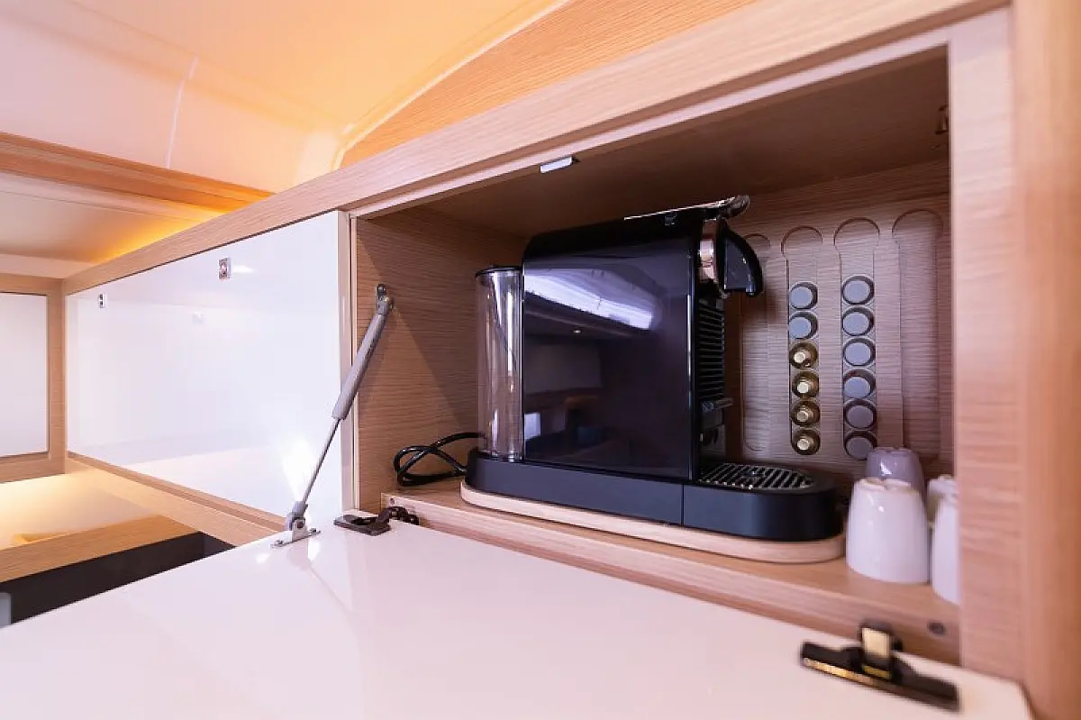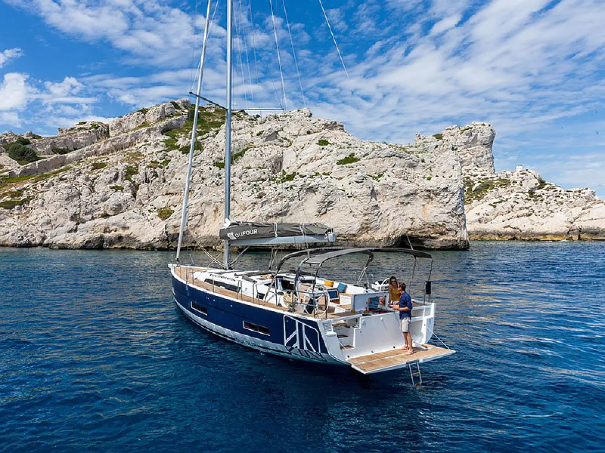 Generator, Heizung, Klimaanlage, Kühlschrank, Grill im Cockpit, Bimini, Cockpit-Kissen, Sprayhood, Außenbordmotor, Beiboot, Wi-Fi und Internet