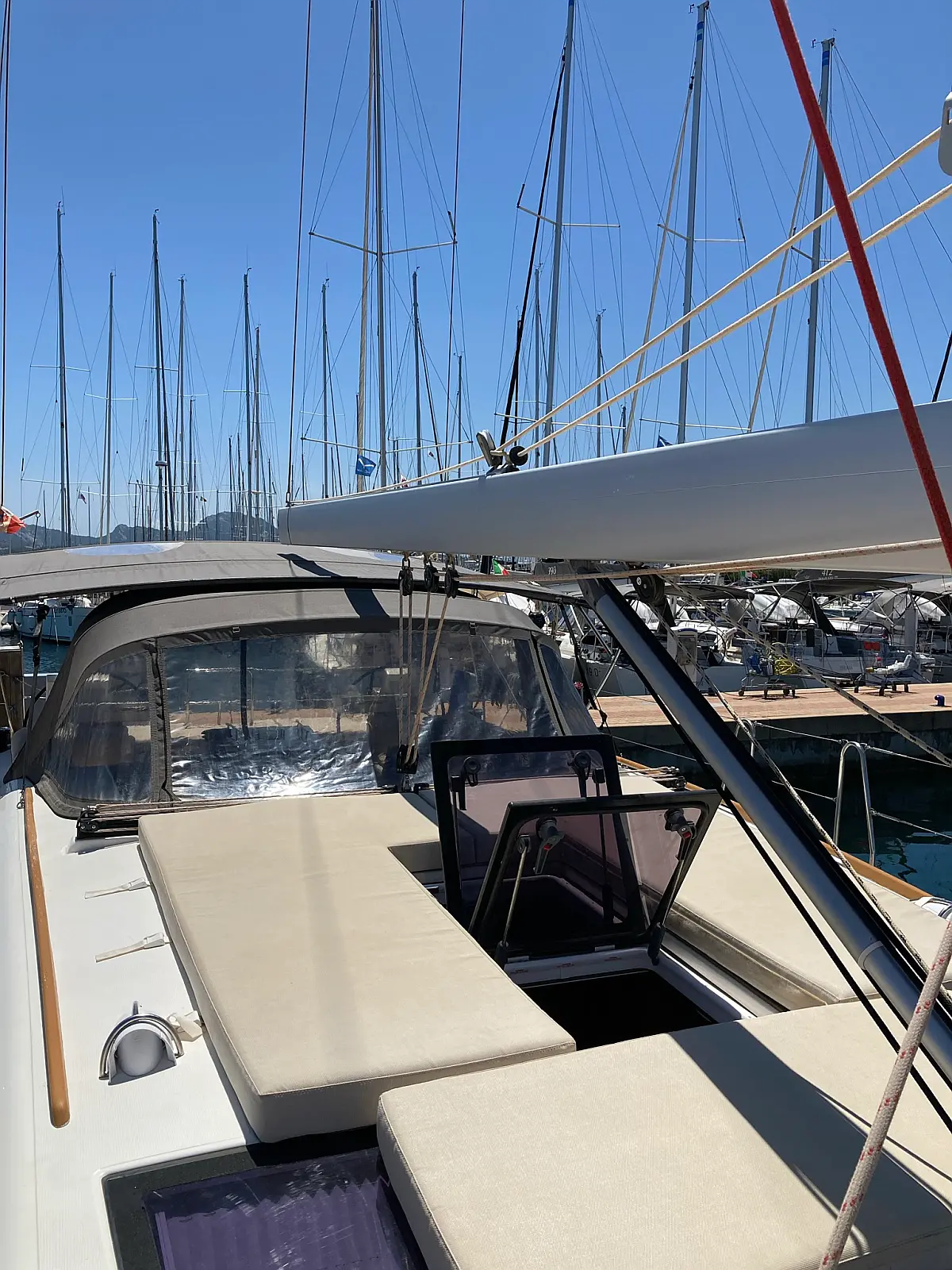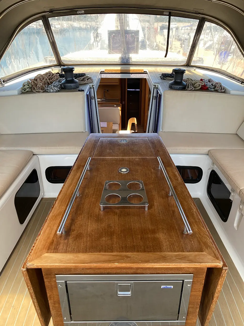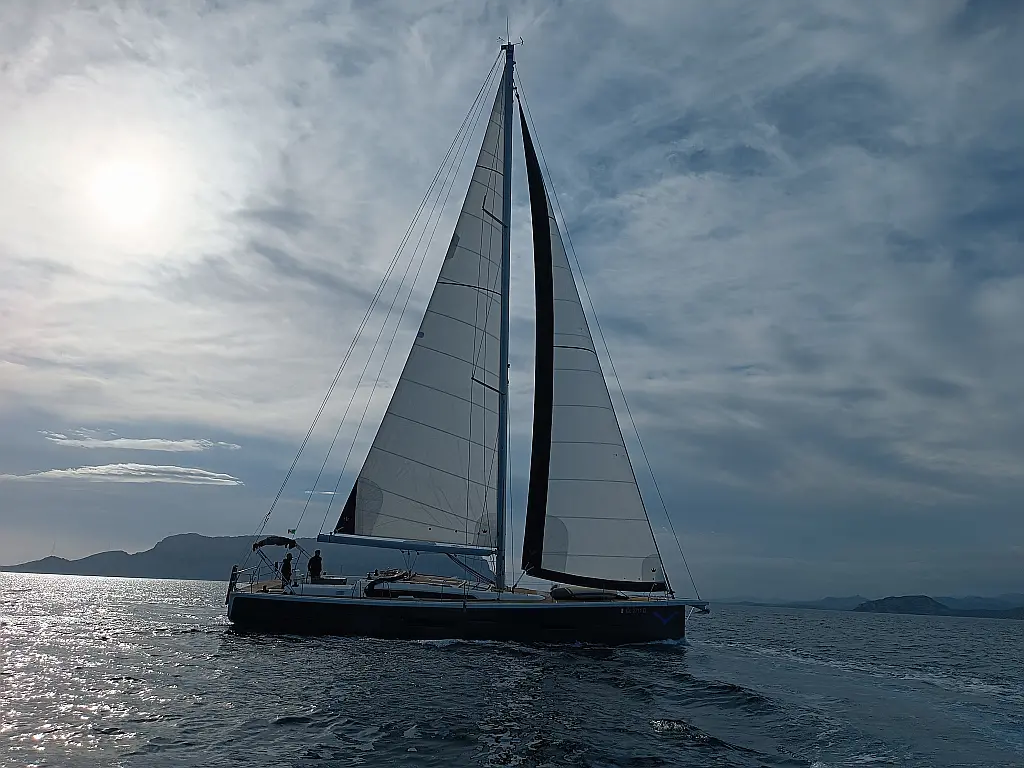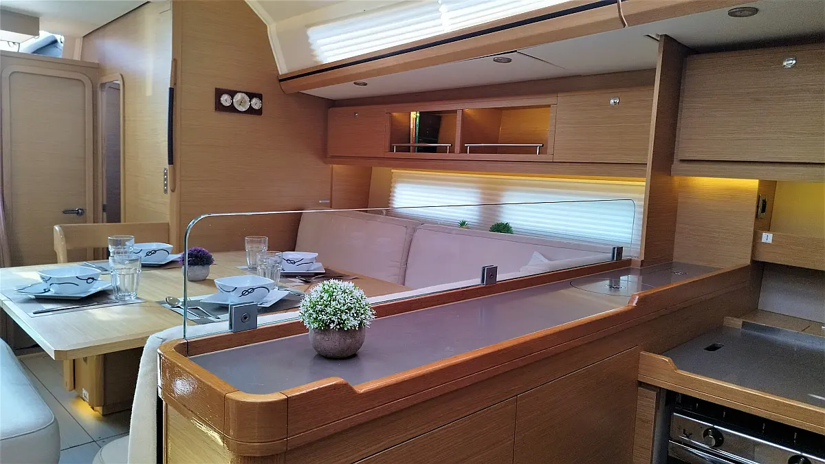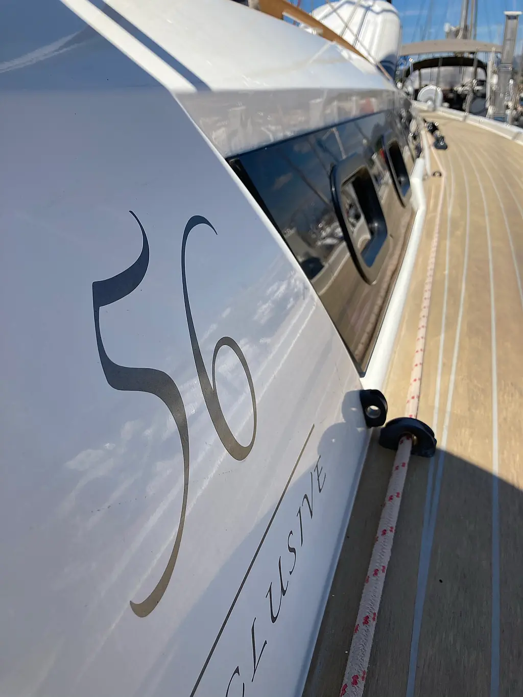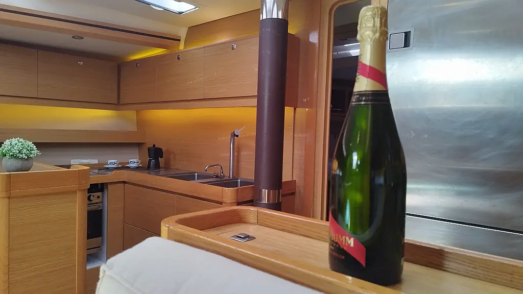 Cockpit-Kissen, Grill im Cockpit, Teakdeck, Elektrische Toilette, Kühlschrank, Badeplattform, Elektrische Winch (Segel), Hydraulische Gangway, Inverter