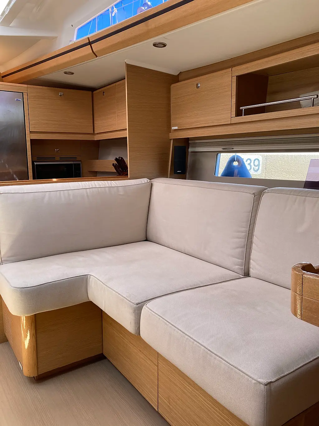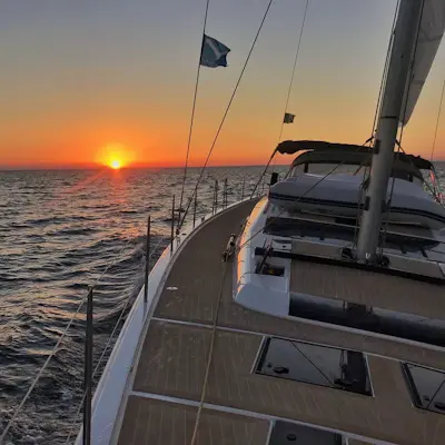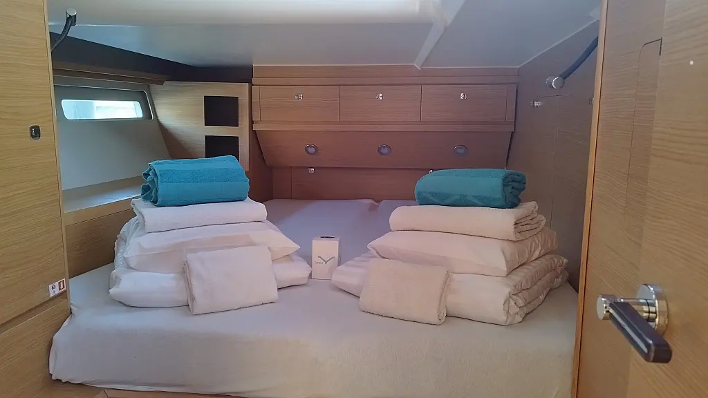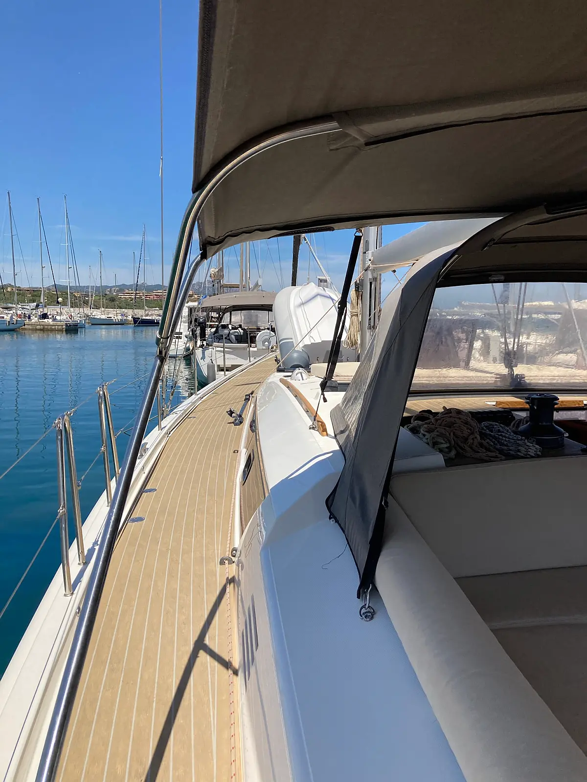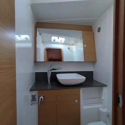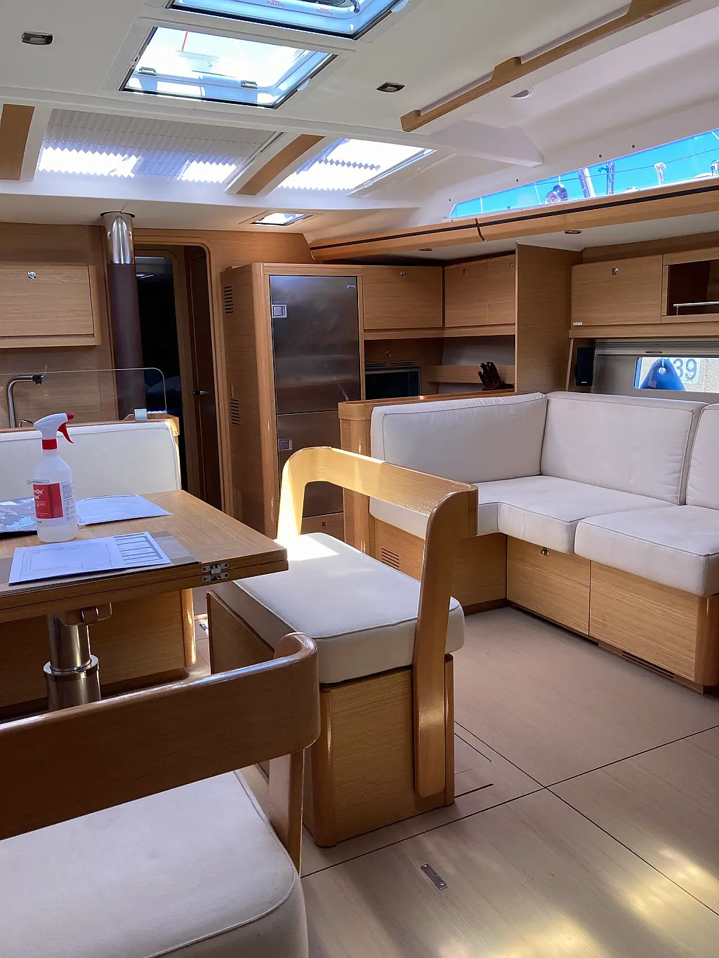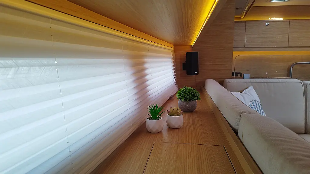 Cockpit-Kissen, Grill im Cockpit, Teakdeck, Elektrische Toilette, Kühlschrank, Badeplattform, Elektrische Winch (Segel), Hydraulische Gangway, Inverter
