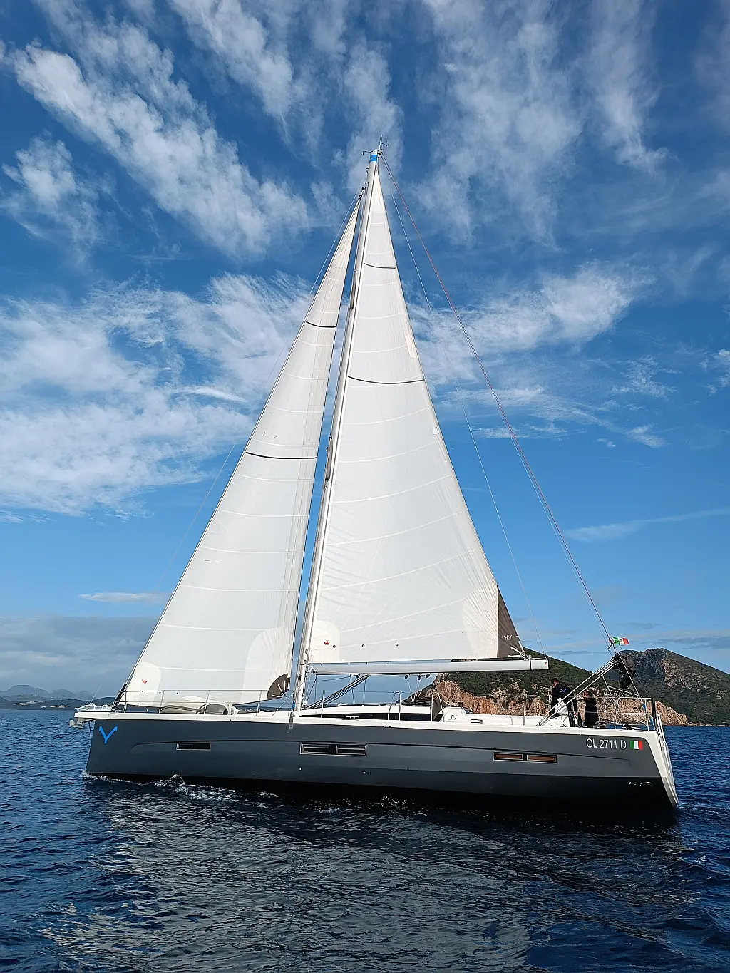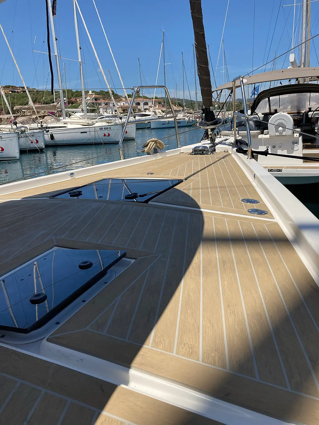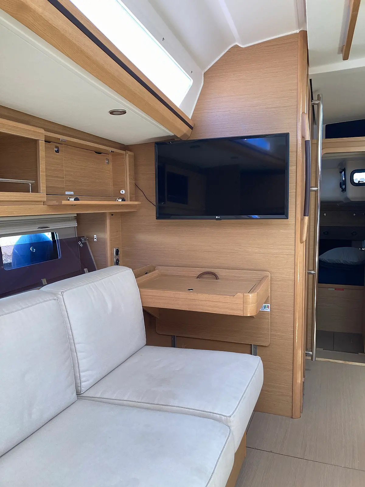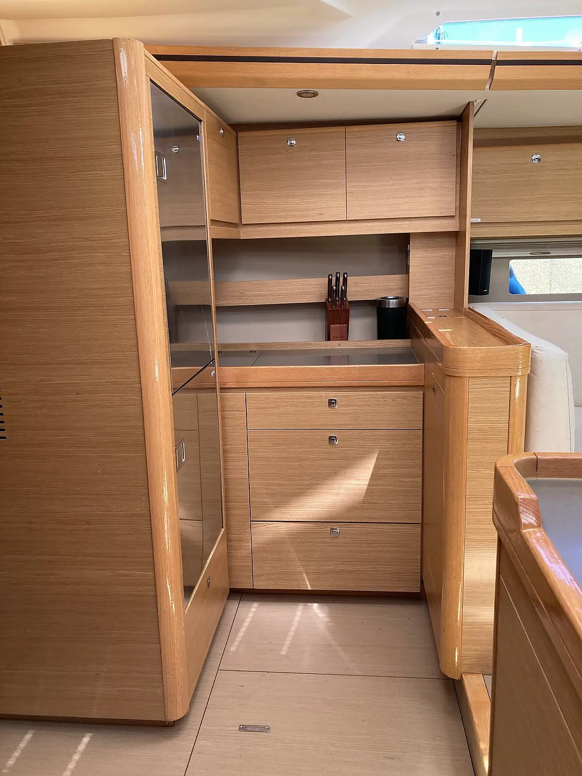 Cockpit-Kissen, Grill im Cockpit, Teakdeck, Elektrische Toilette, Kühlschrank, Badeplattform, Elektrische Winch (Segel), Hydraulische Gangway, Inverter