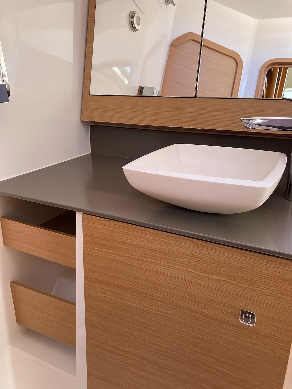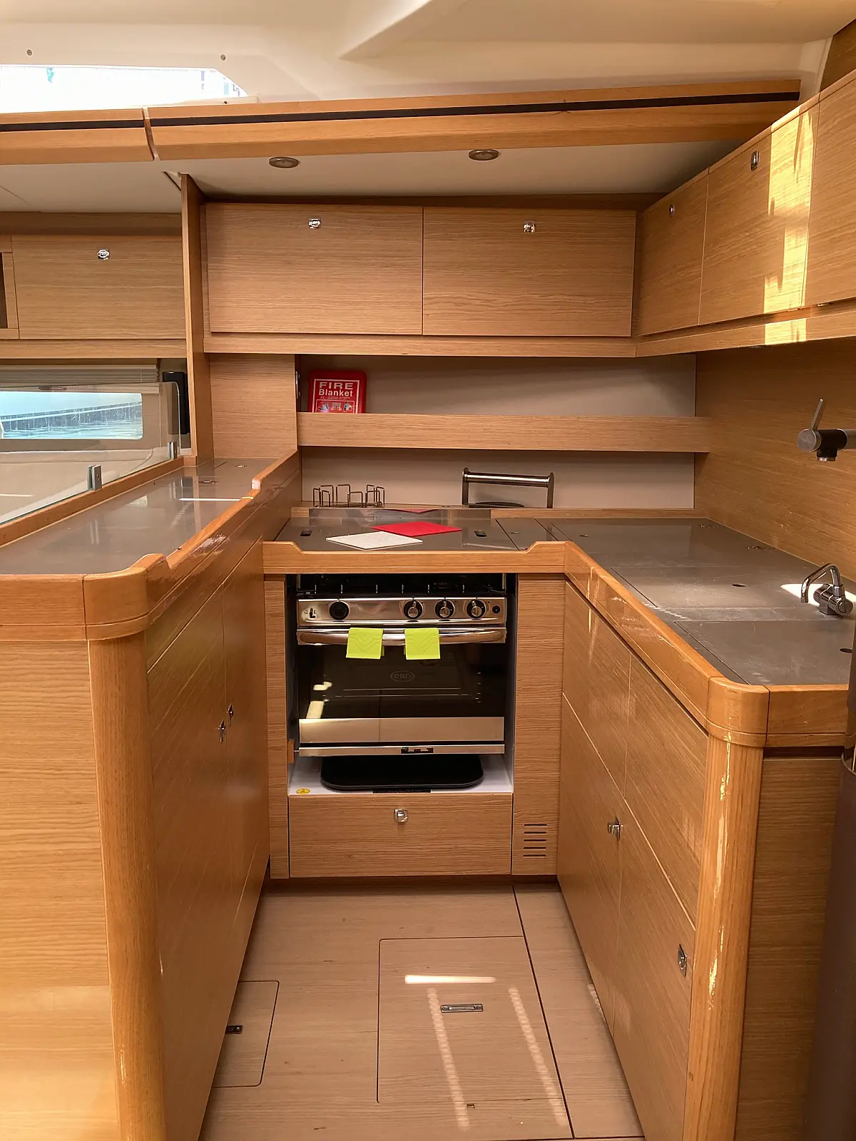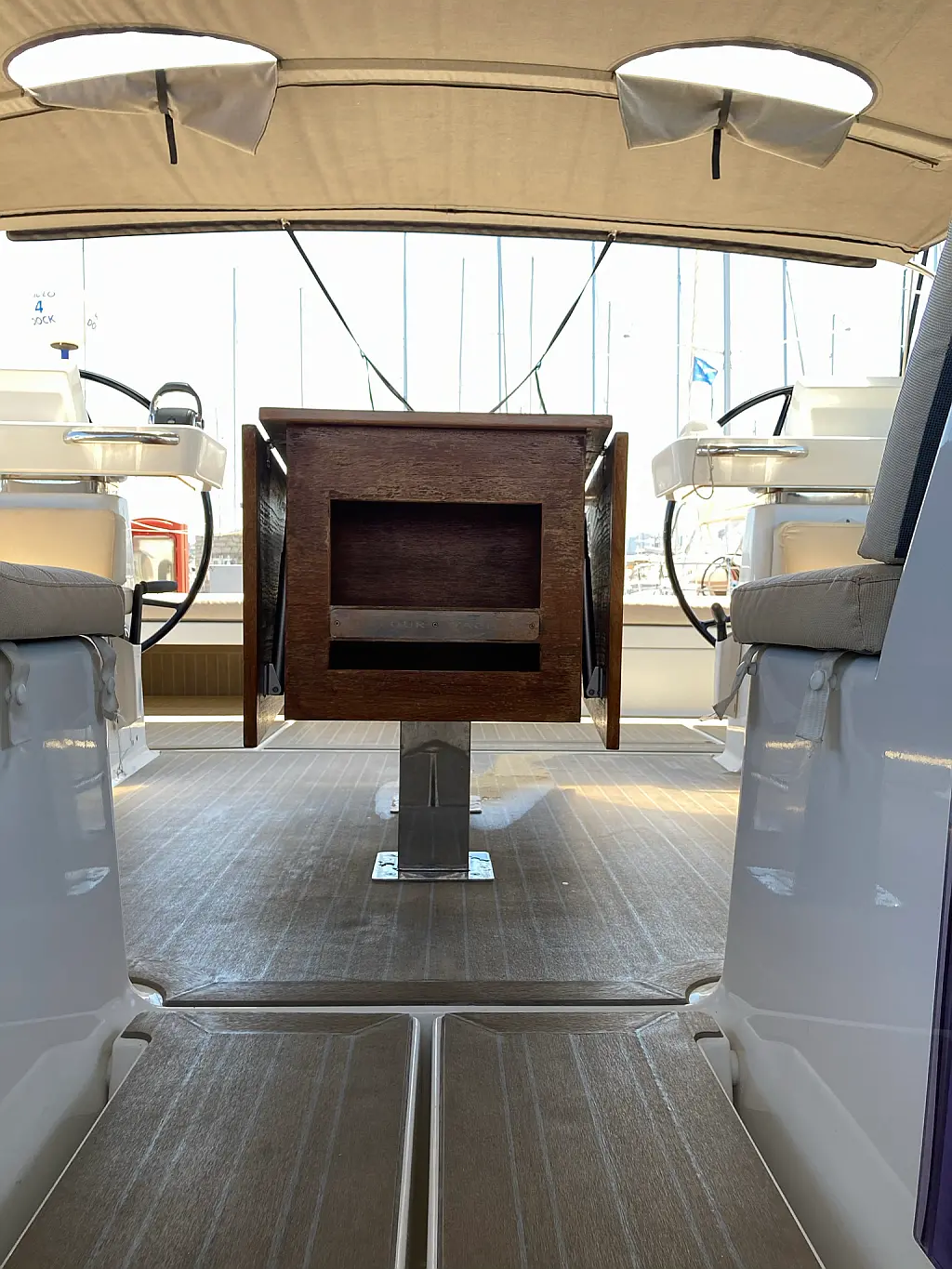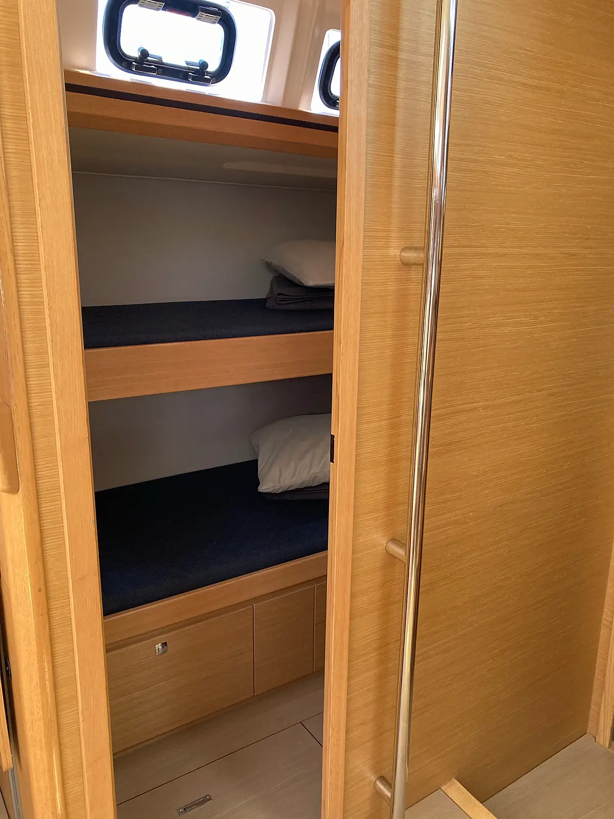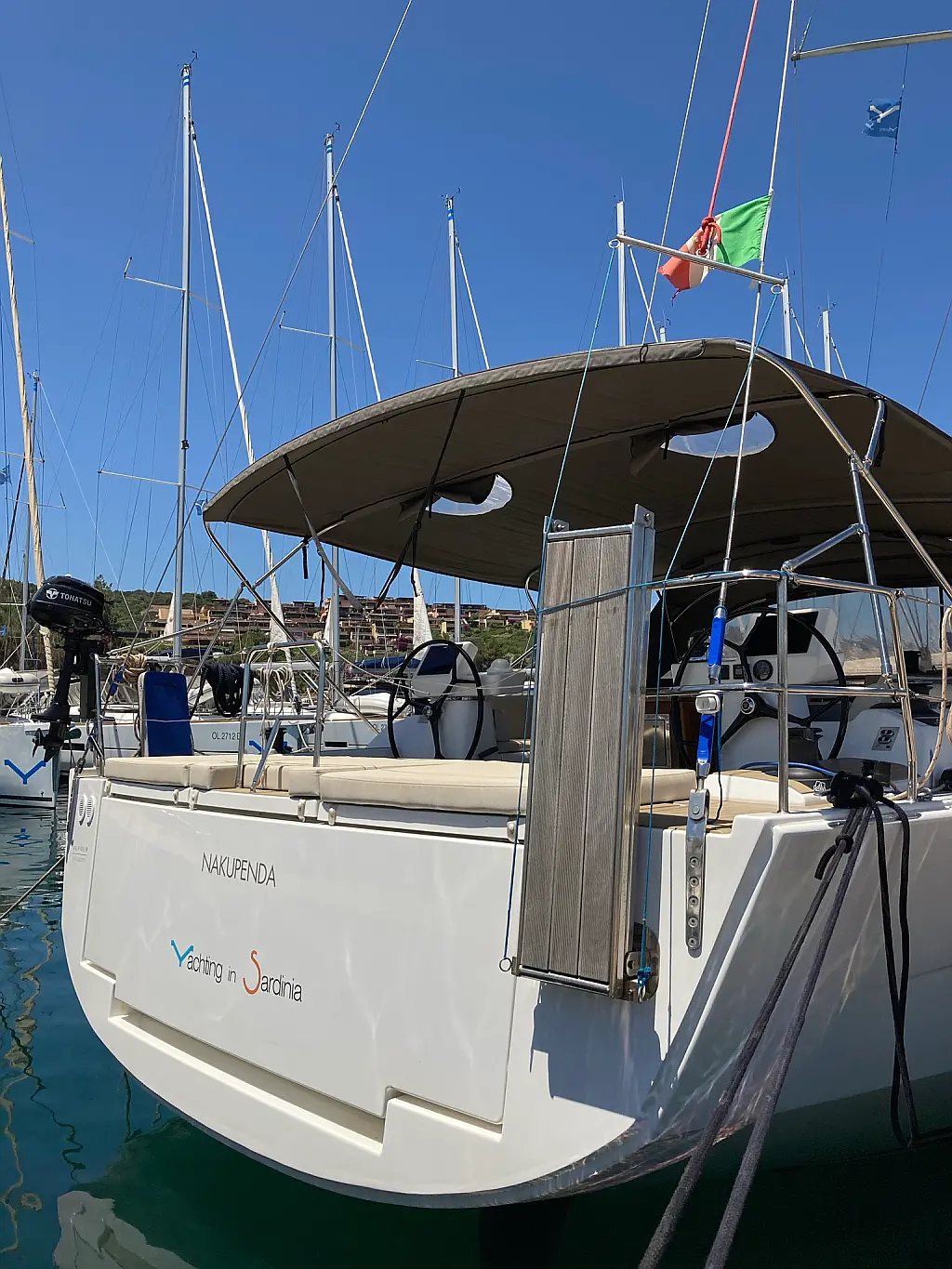 Cockpit-Kissen, Grill im Cockpit, Teakdeck, Elektrische Toilette, Kühlschrank, Badeplattform, Elektrische Winch (Segel), Hydraulische Gangway, Inverter