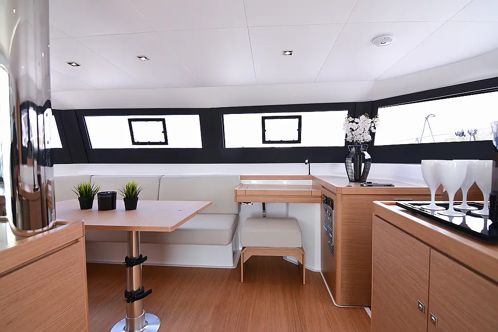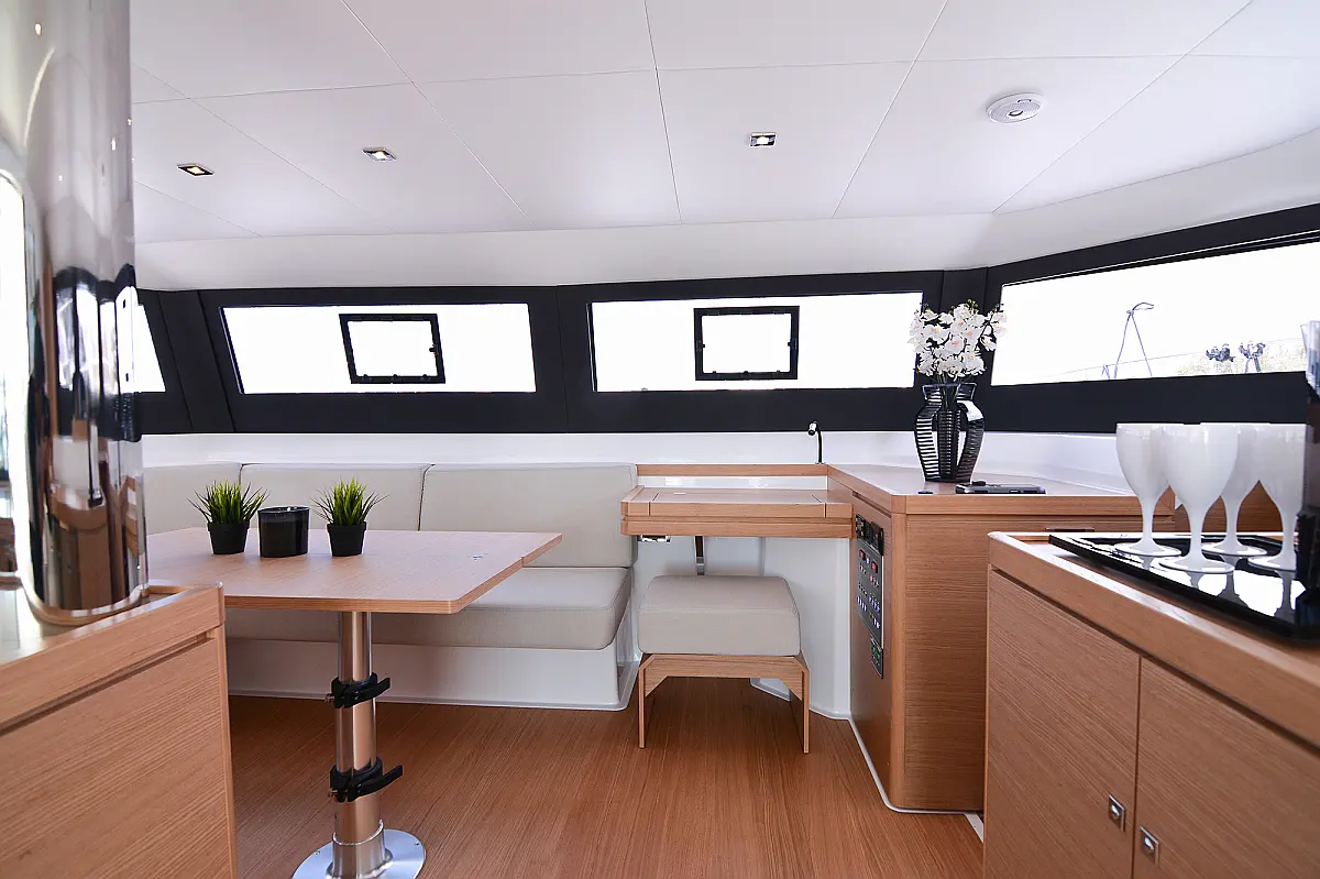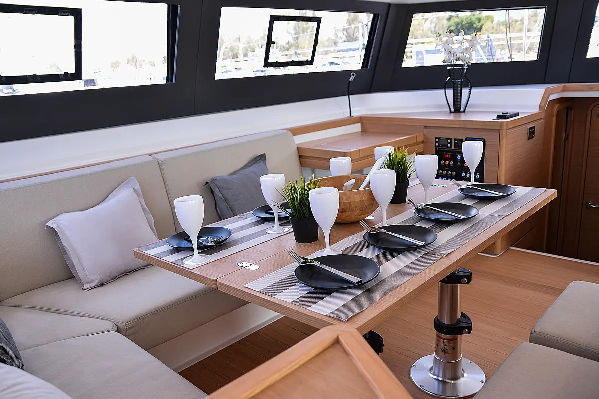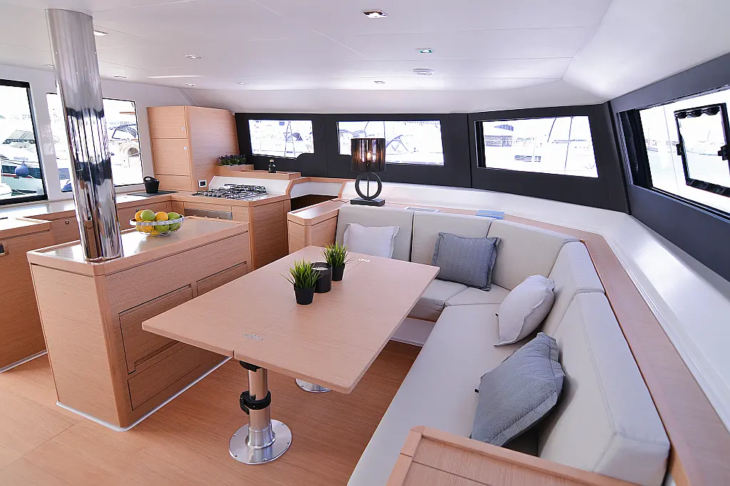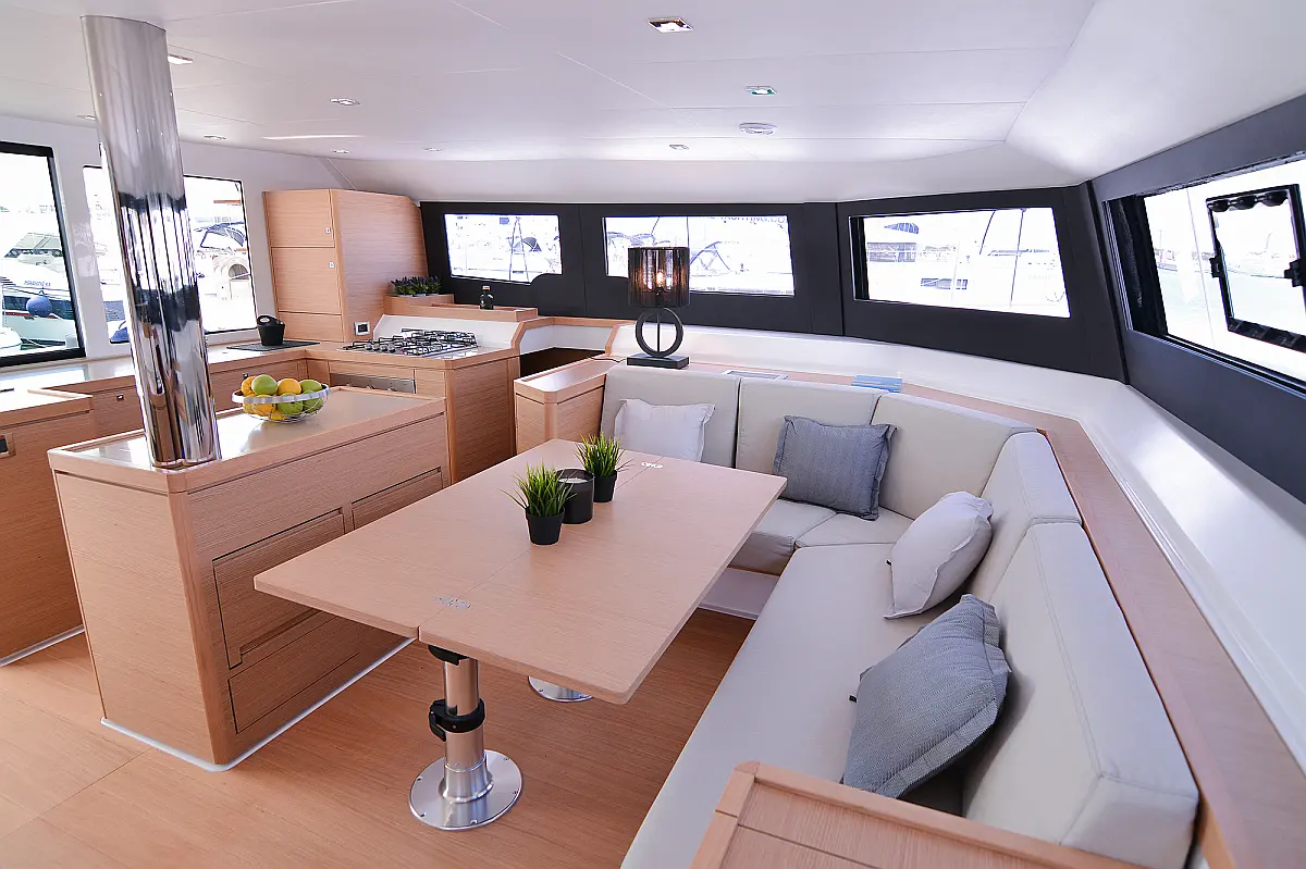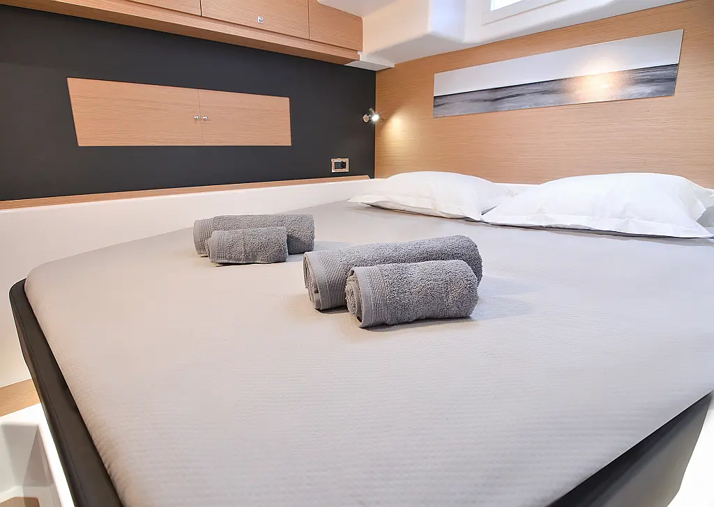 Flybridge, Grill im Cockpit, Kühlschrank, Kaffeemaschine, Generator, Wassermacher, Inverter, Bimini, Außenbordmotor, Beiboot, Klimaanlage, Cockpit-Kissen, Lautsprecher im Cockpit, Teak Cockpit, Wi-Fi und Internet