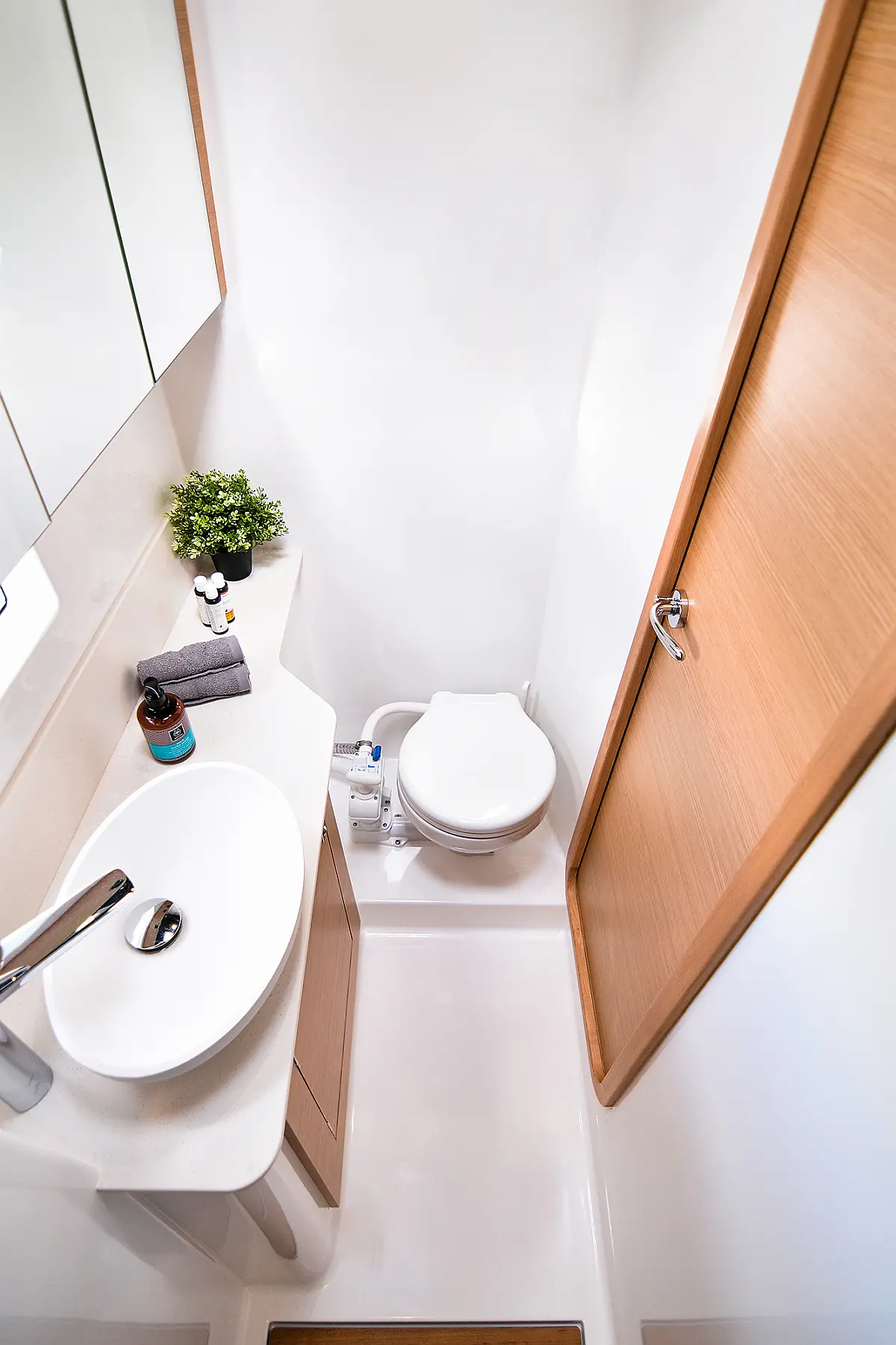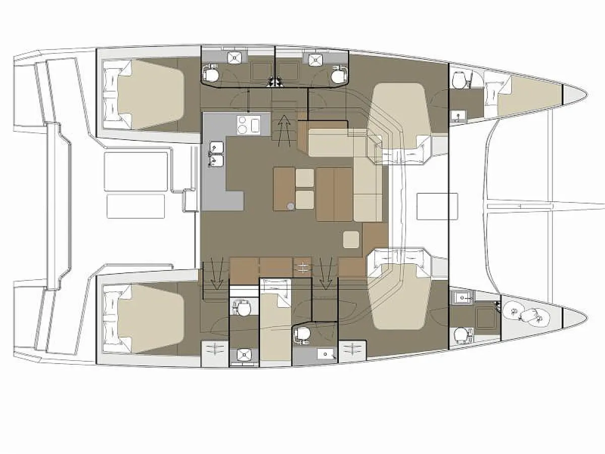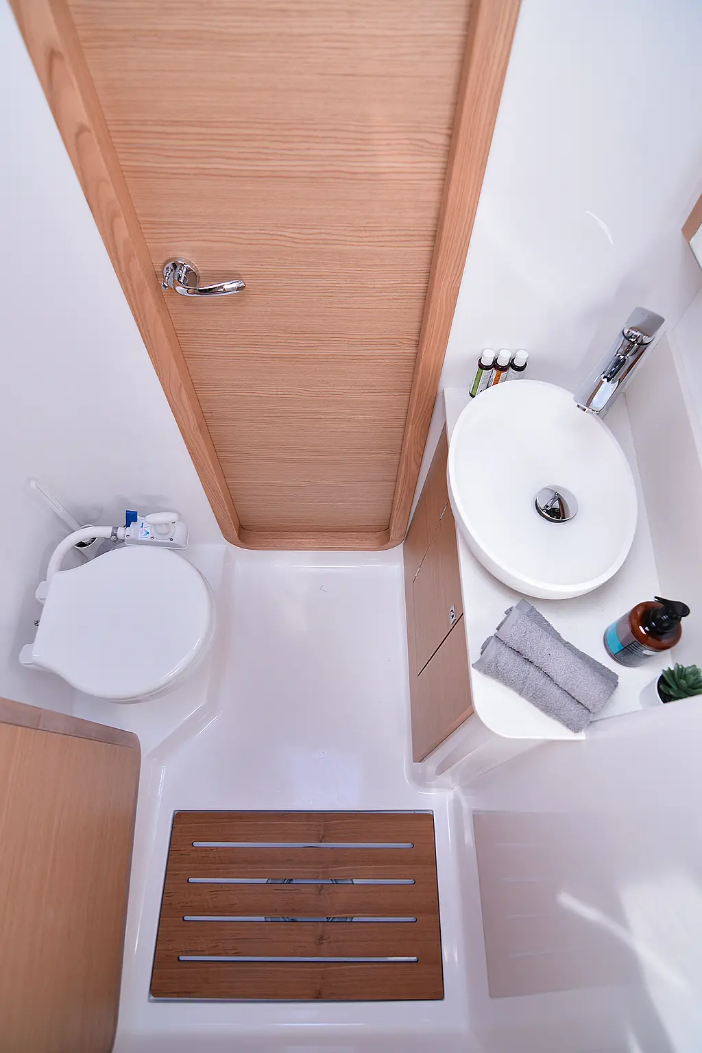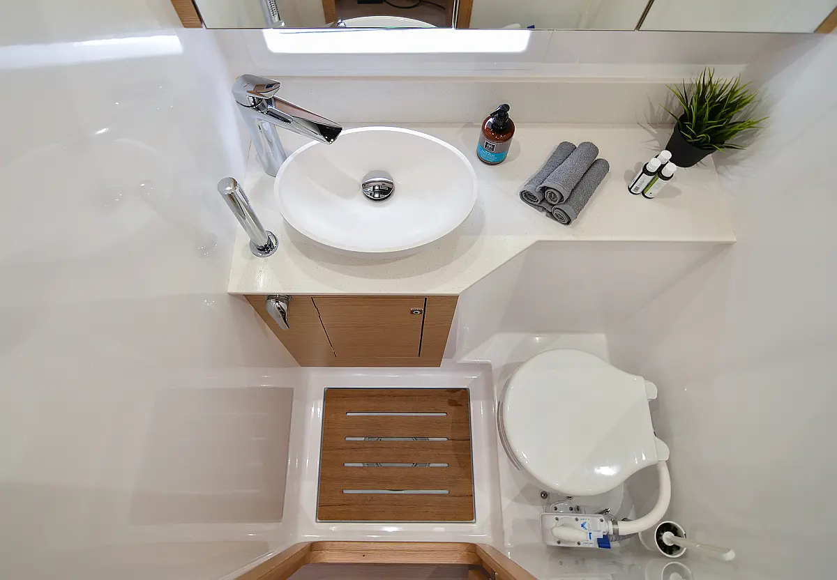 Flybridge, Grill im Cockpit, Kühlschrank, Kaffeemaschine, Generator, Wassermacher, Inverter, Bimini, Außenbordmotor, Beiboot, Klimaanlage, Cockpit-Kissen, Lautsprecher im Cockpit, Teak Cockpit, Wi-Fi und Internet