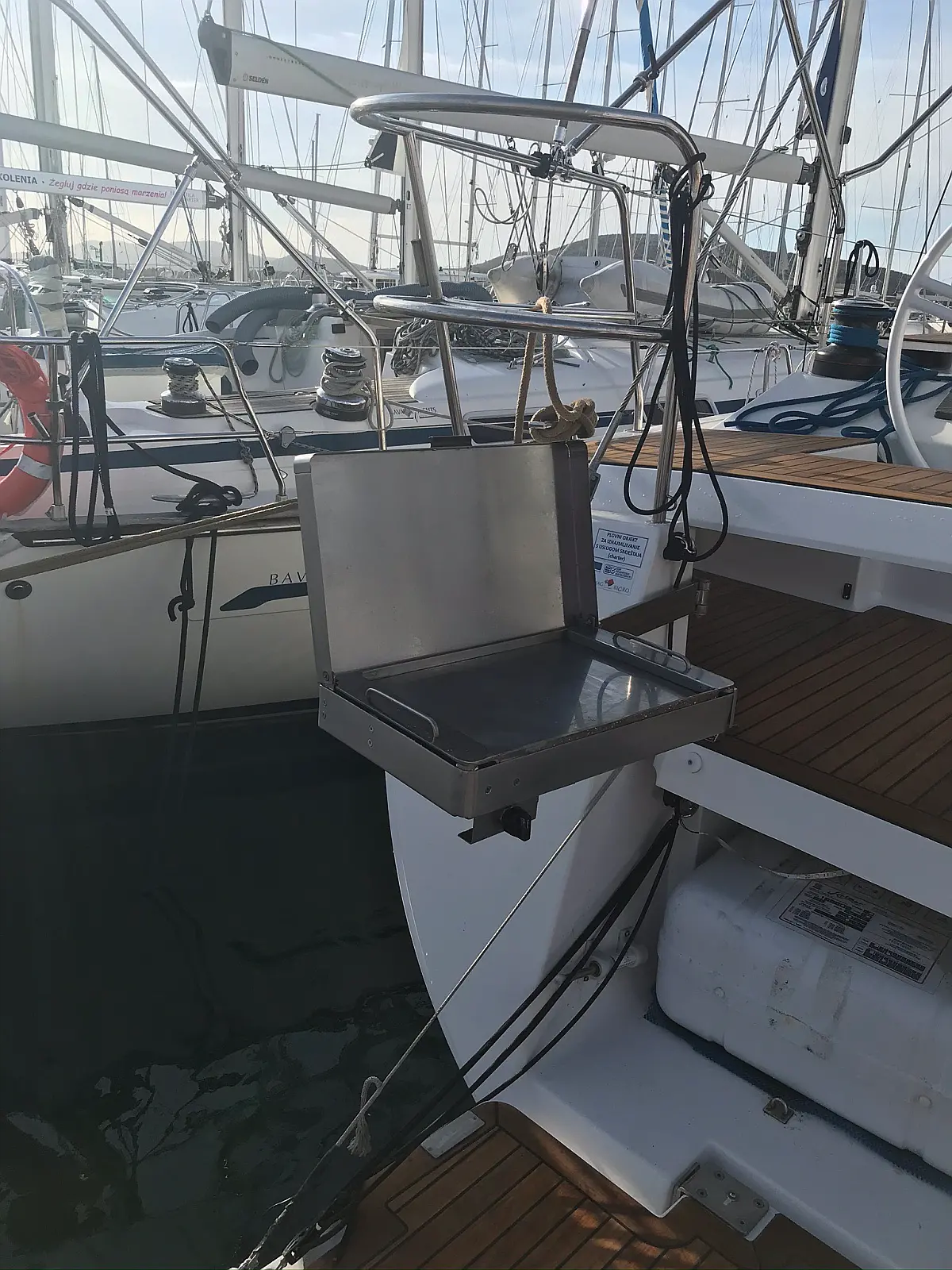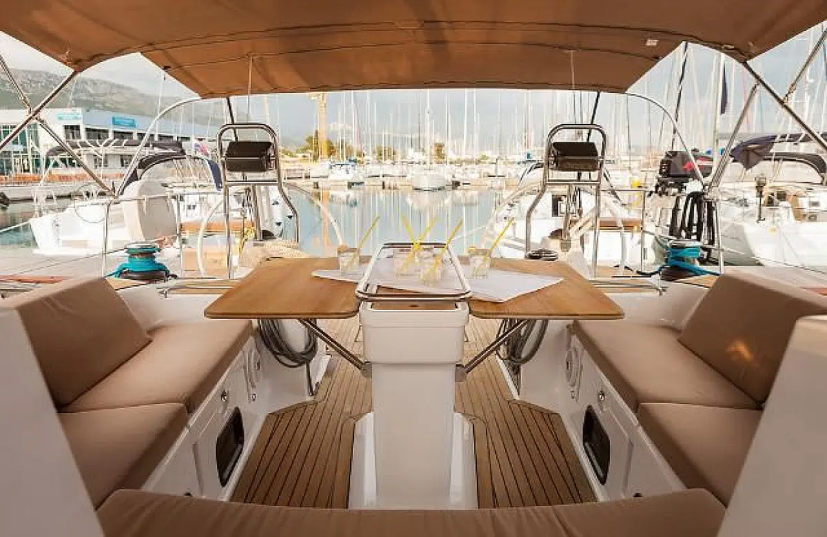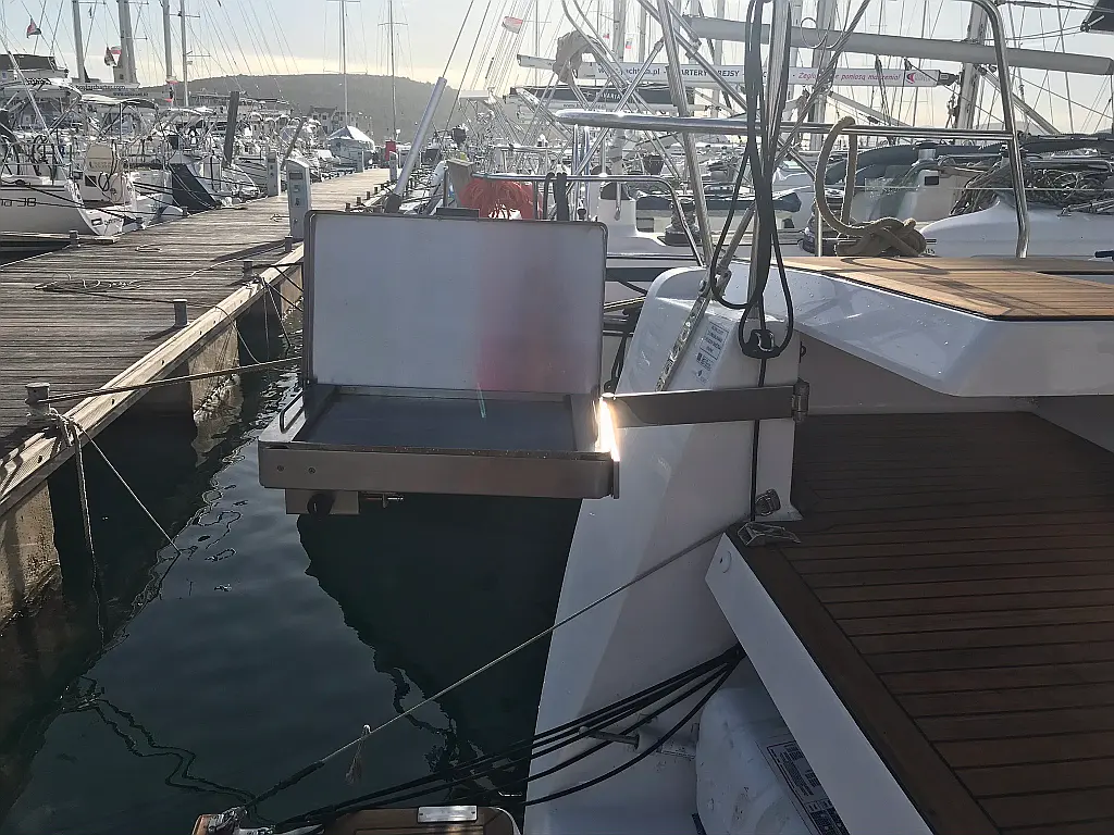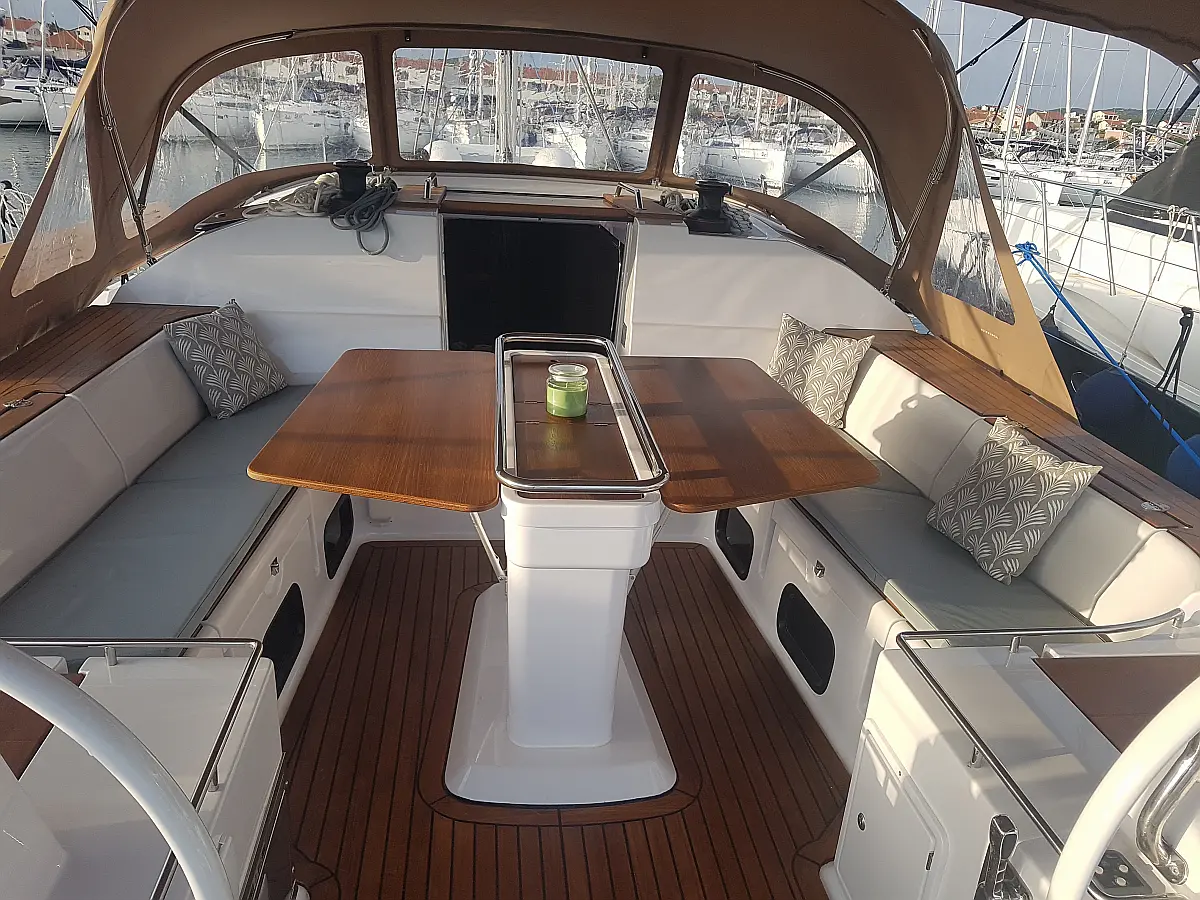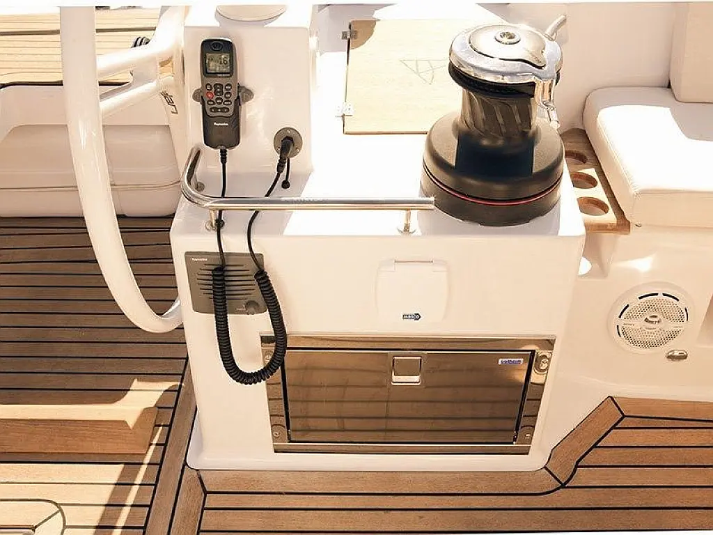 Bimini, Lautsprecher im Cockpit, Beiboot, Sprayhood, Teak Cockpit, Solar-Panele, Kühlschrank, Klimaanlage