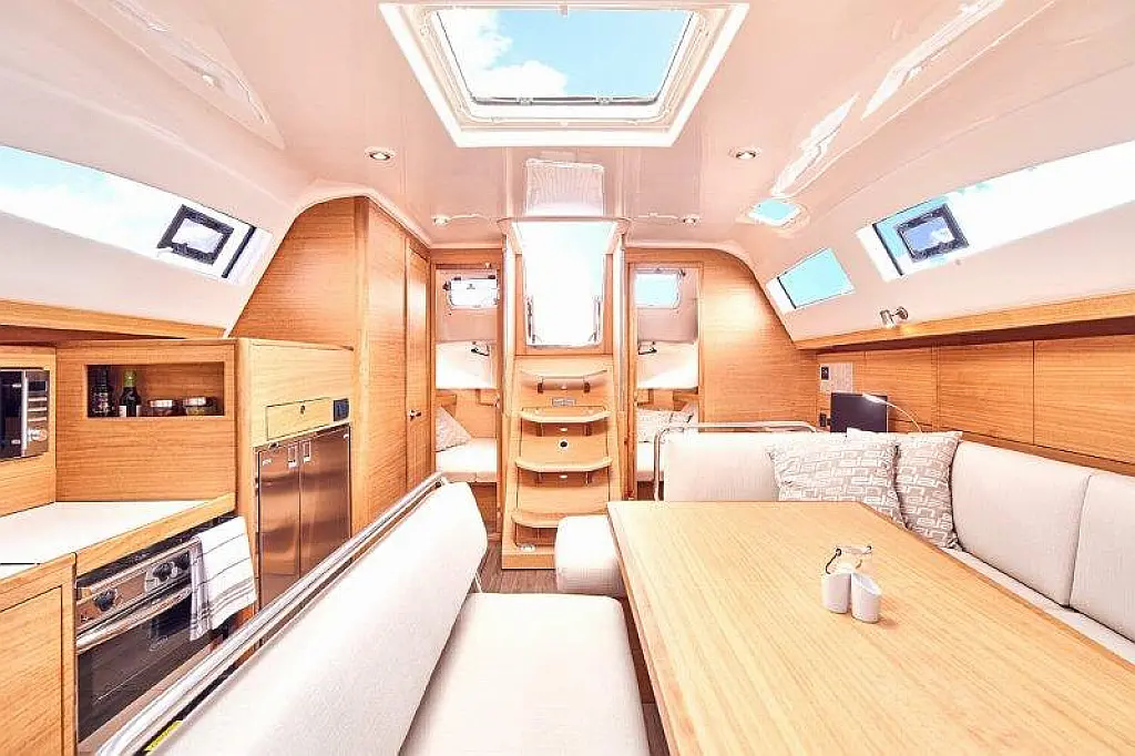 Cockpit-Kissen, Elektrische Toilette, Teak Cockpit, Sprayhood, Bimini, Kühlschrank, Wi-Fi und Internet