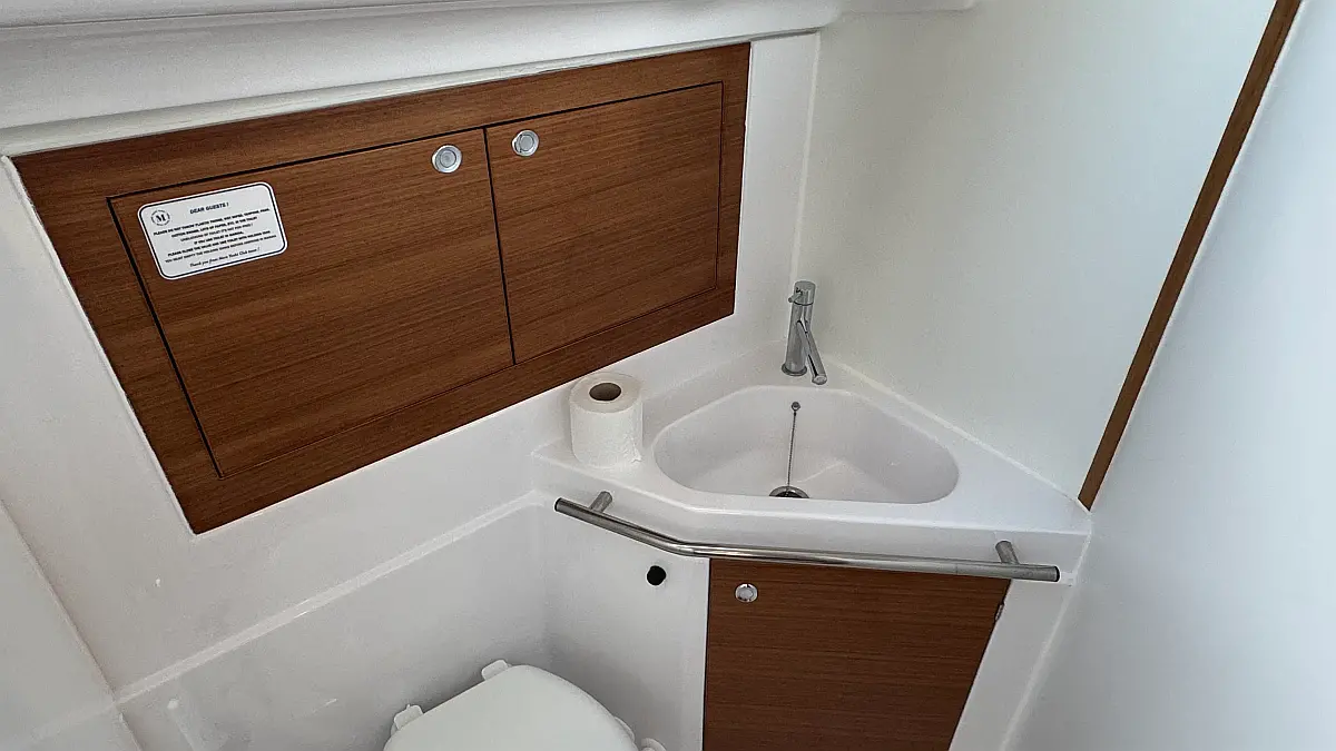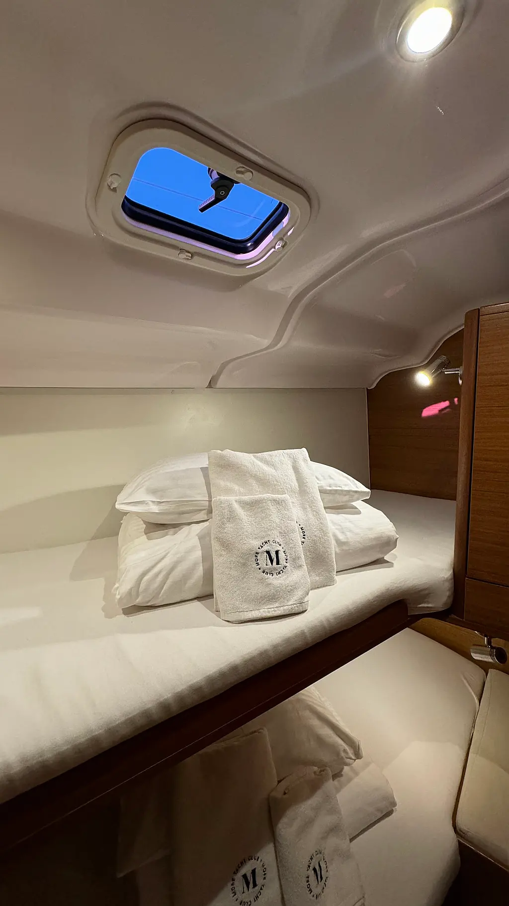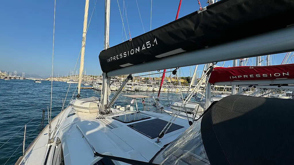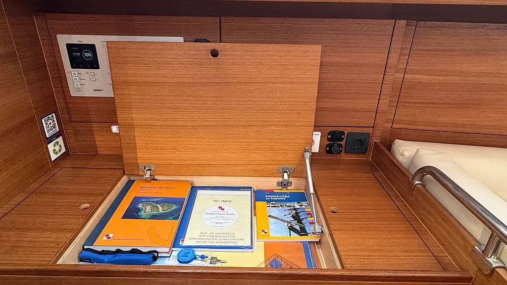 Cockpit-Kissen, Teak Cockpit, Sprayhood, Bimini, Kühlschrank, Elektrische Winch (Segel), Wi-Fi und Internet