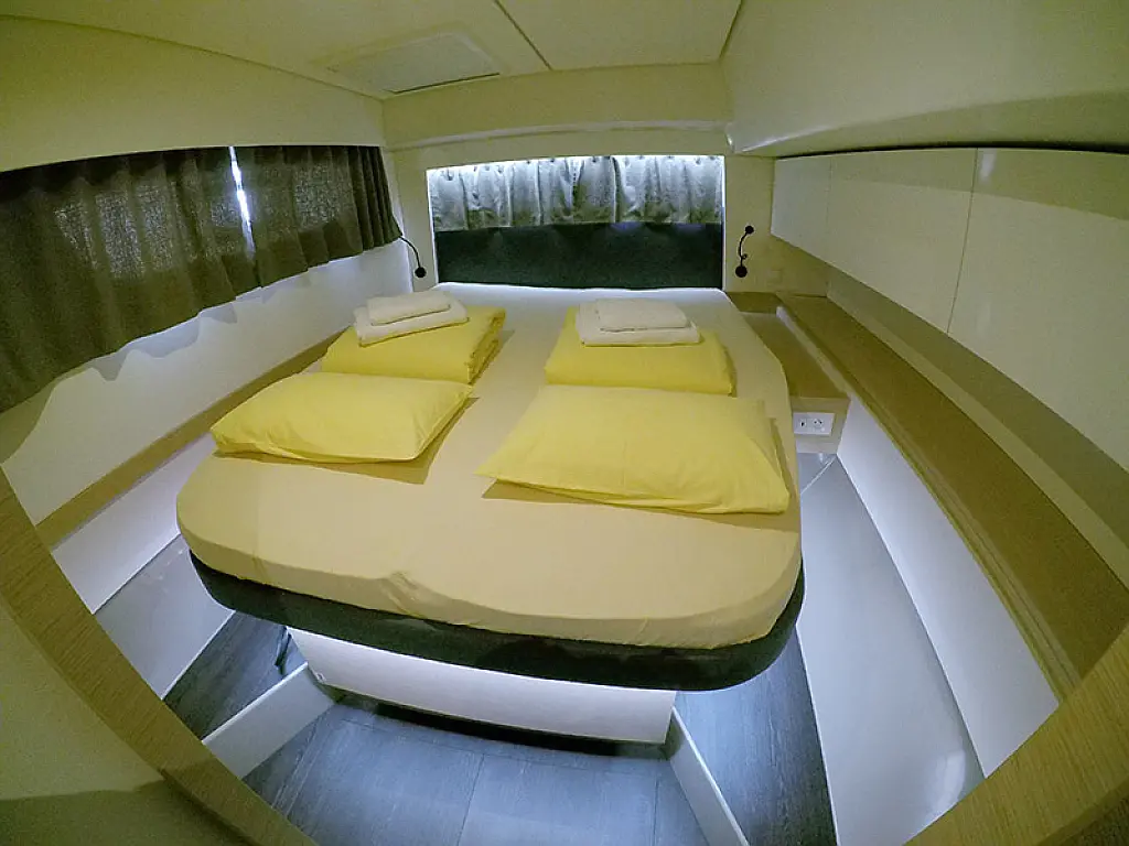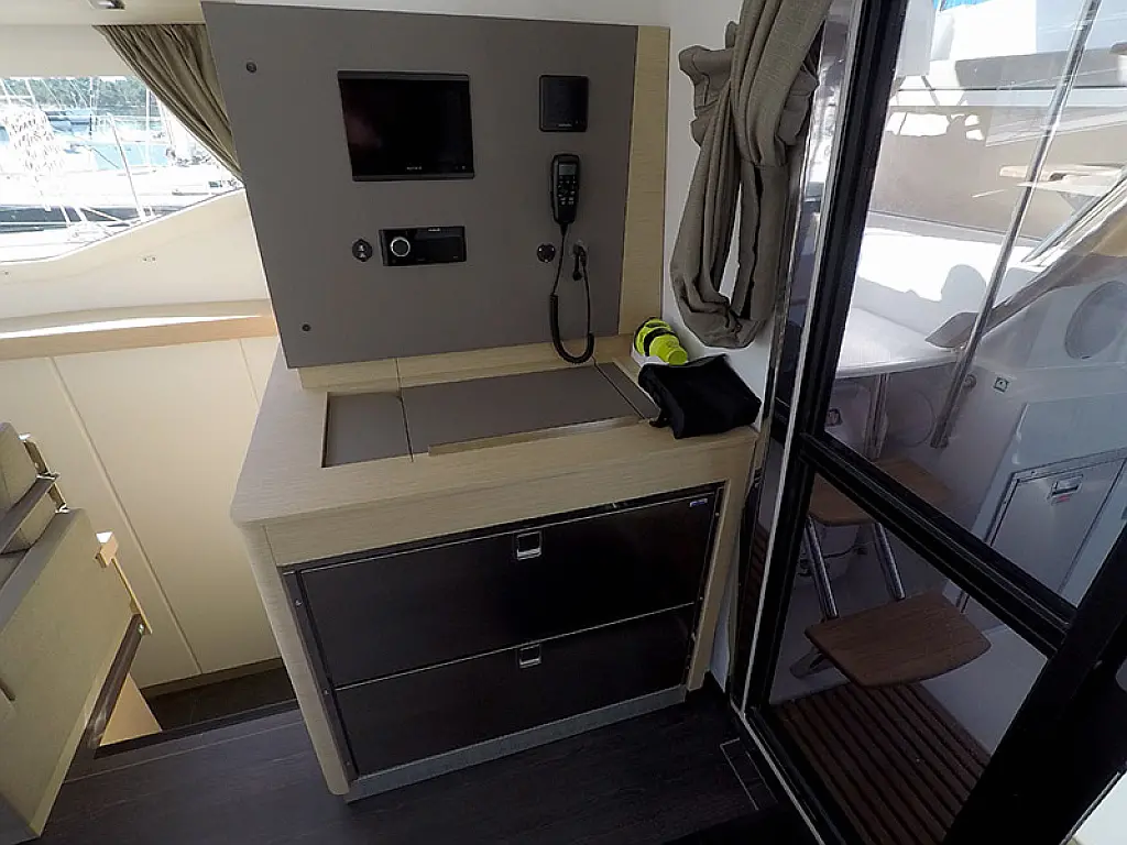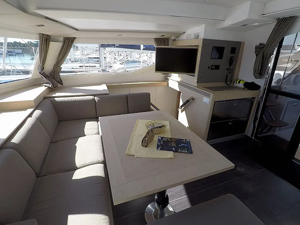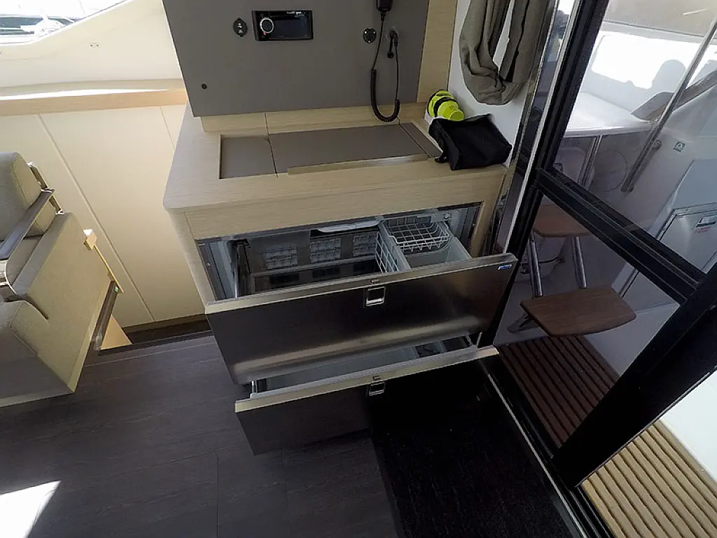 Generator, Heizung, Klimaanlage, Kühlschrank, Grill im Cockpit, Bimini, Cockpit-Kissen, Außenbordmotor, Beiboot, Elektrische Winch (Segel), Wi-Fi und Internet