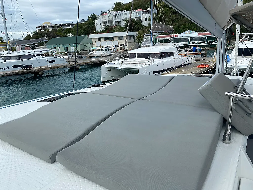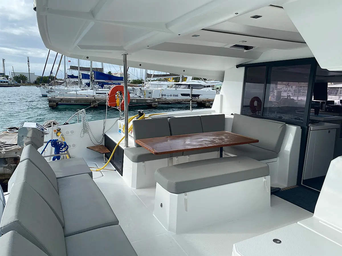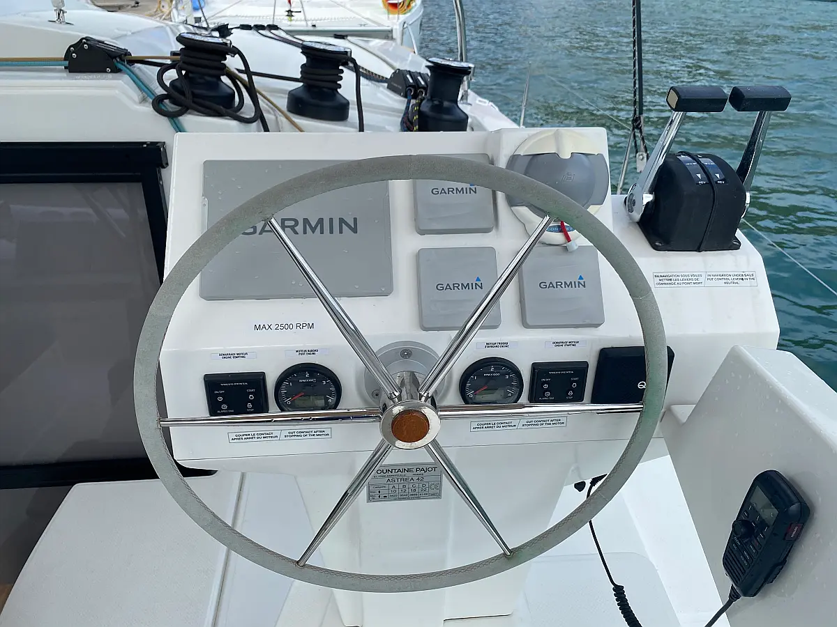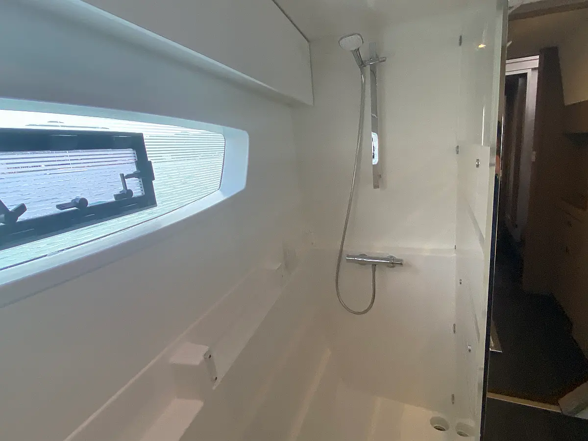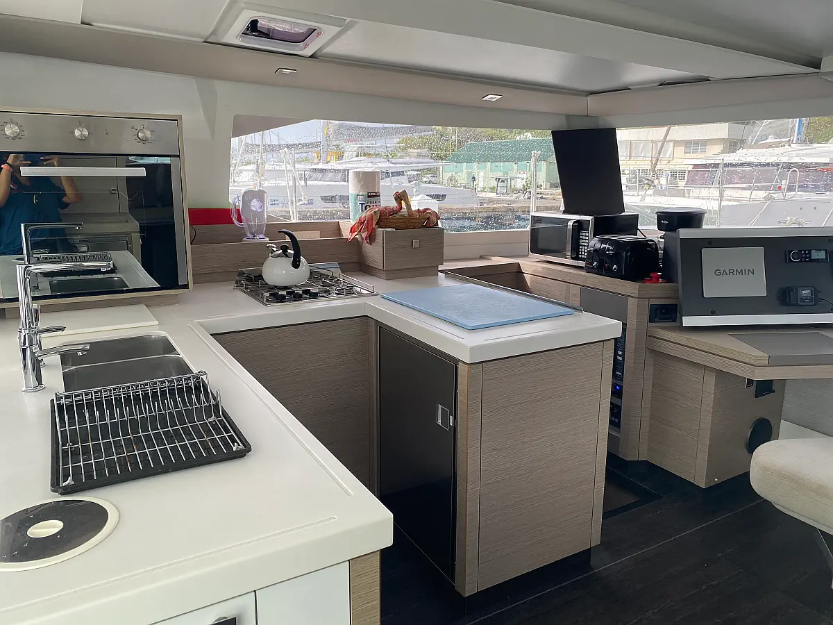 Kaffeemaschine, Kühlschrank, Wi-Fi und Internet, Inverter, Beiboot, Elektrische Toilette, Klimaanlage, Generator, Cockpit-Kissen, Solar-Panele, Lautsprecher im Cockpit, Bimini