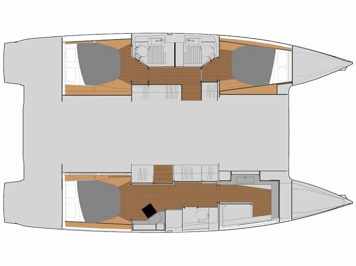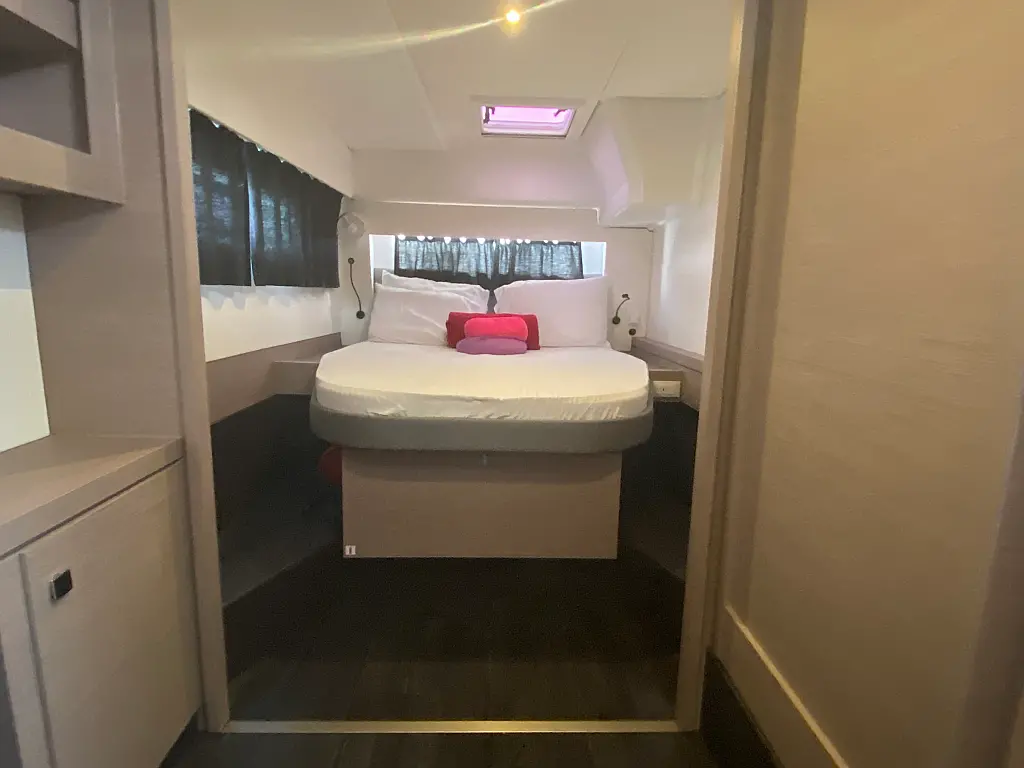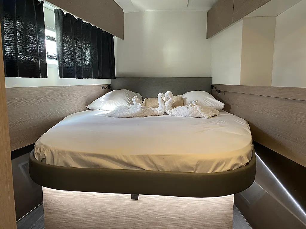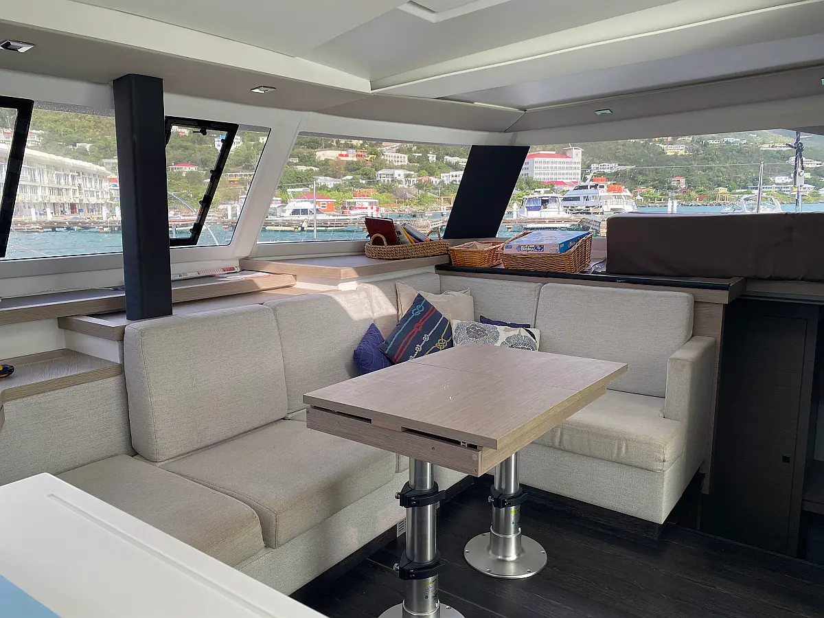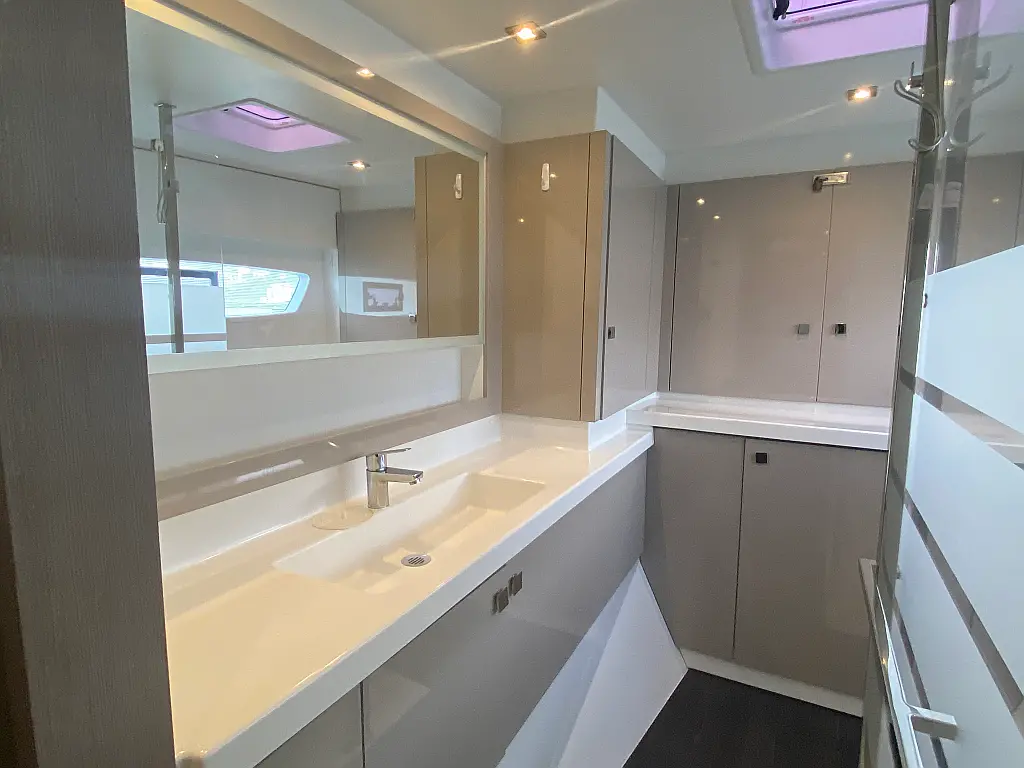 Kaffeemaschine, Kühlschrank, Wi-Fi und Internet, Inverter, Beiboot, Elektrische Toilette, Klimaanlage, Generator, Cockpit-Kissen, Solar-Panele, Lautsprecher im Cockpit, Bimini