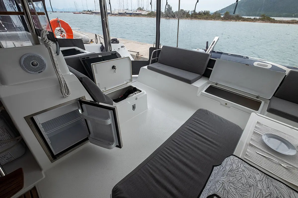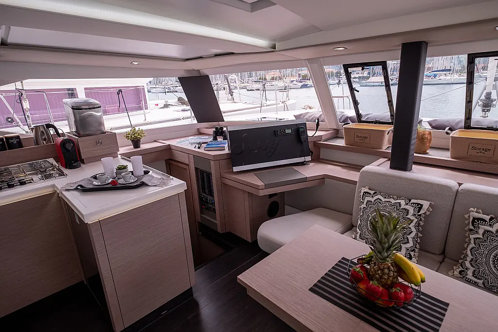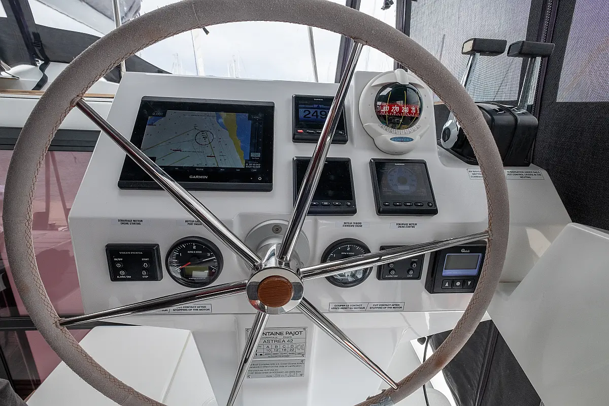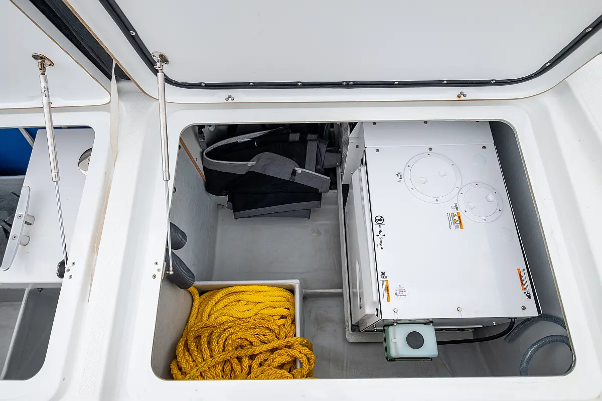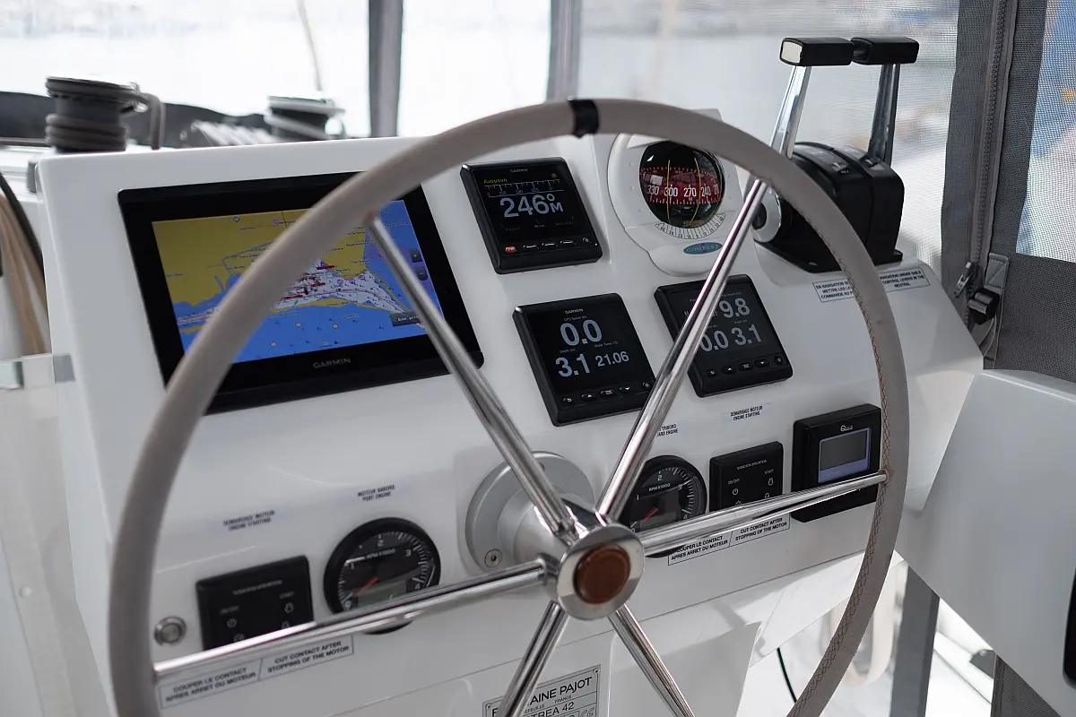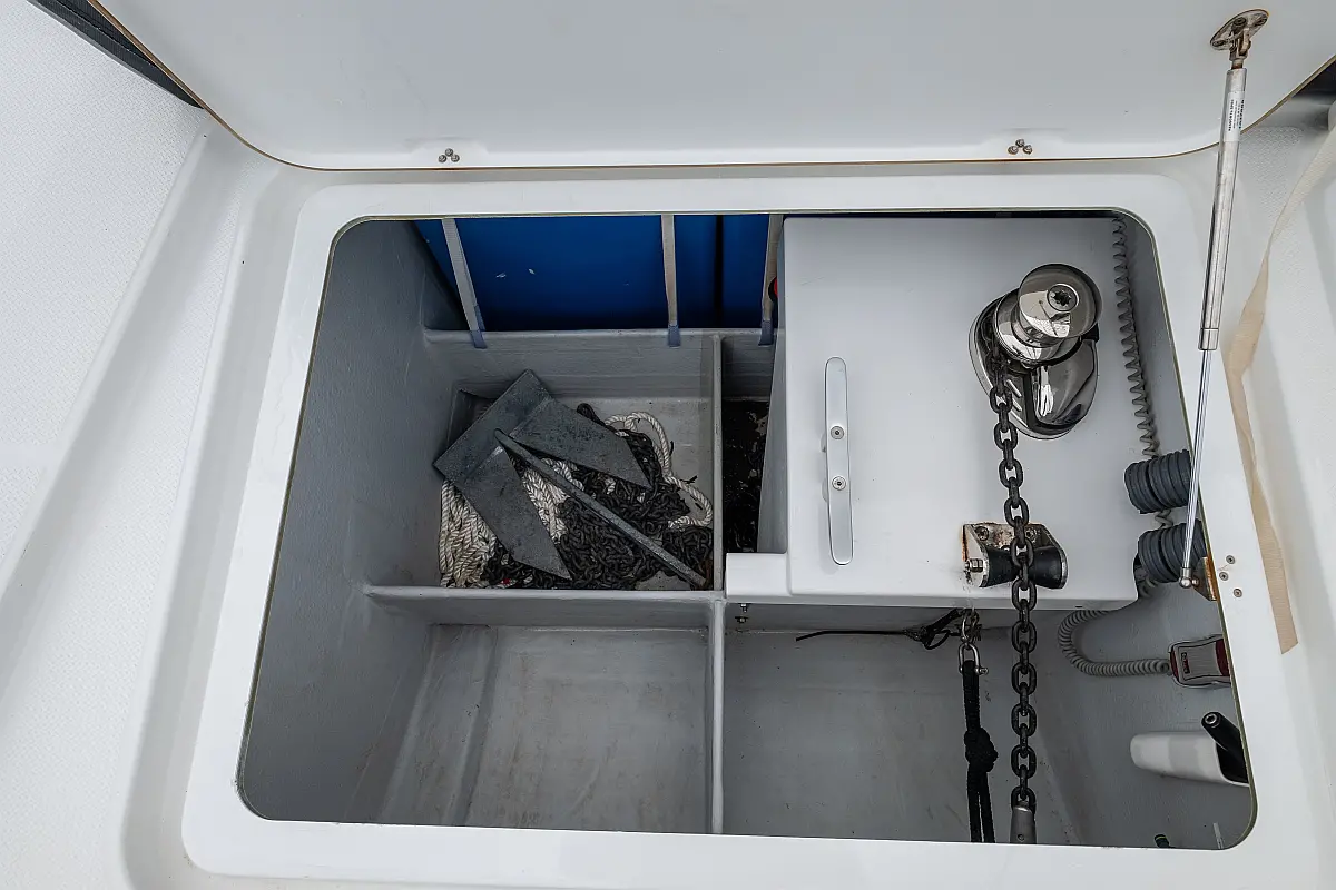 Lautsprecher im Cockpit, Generator, Wassermacher, Solar-Panele, Elektrische Toilette, Inverter, Elektrische Winch (Segel)