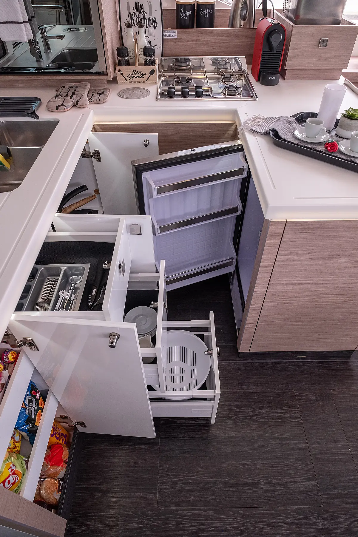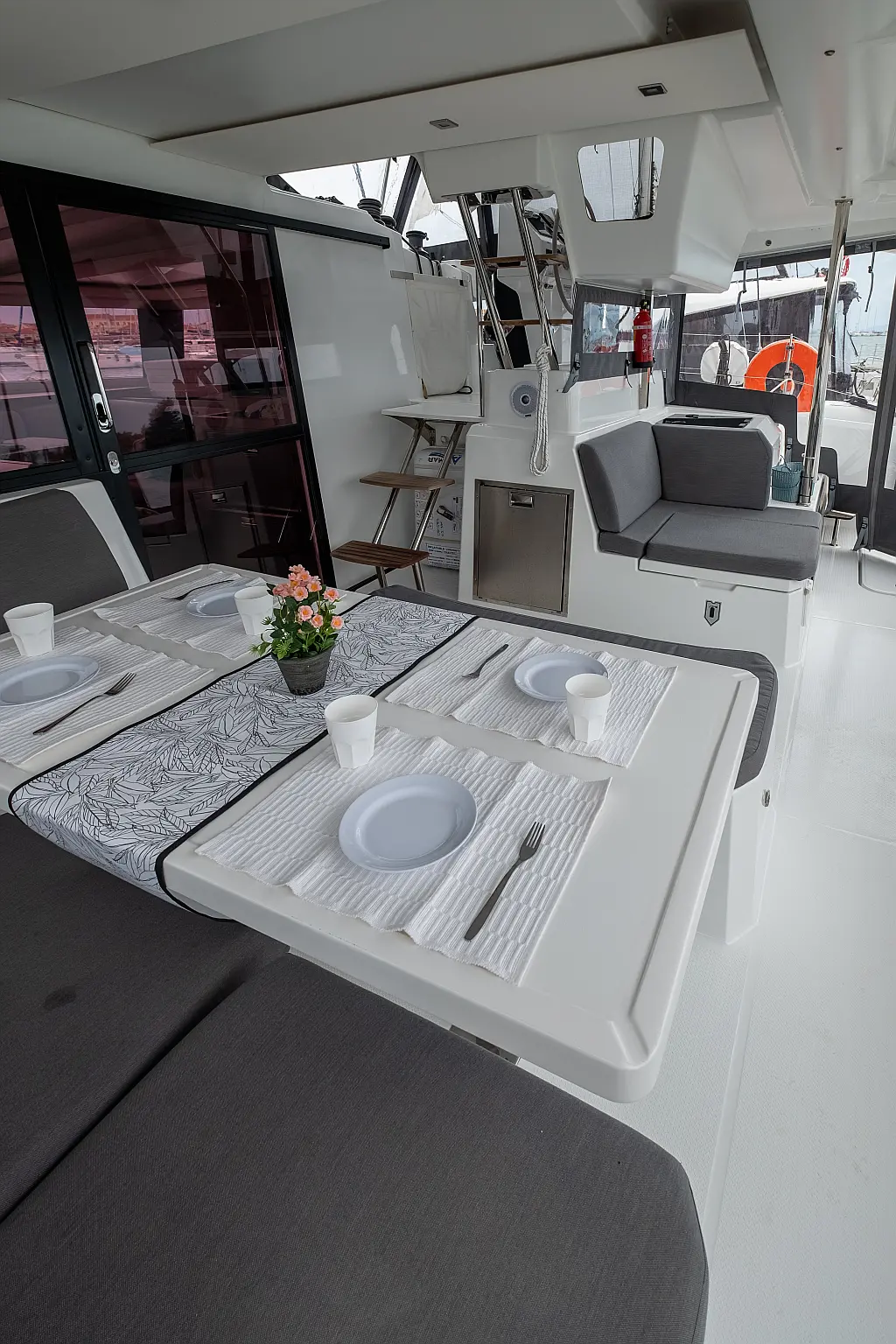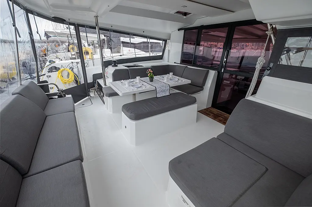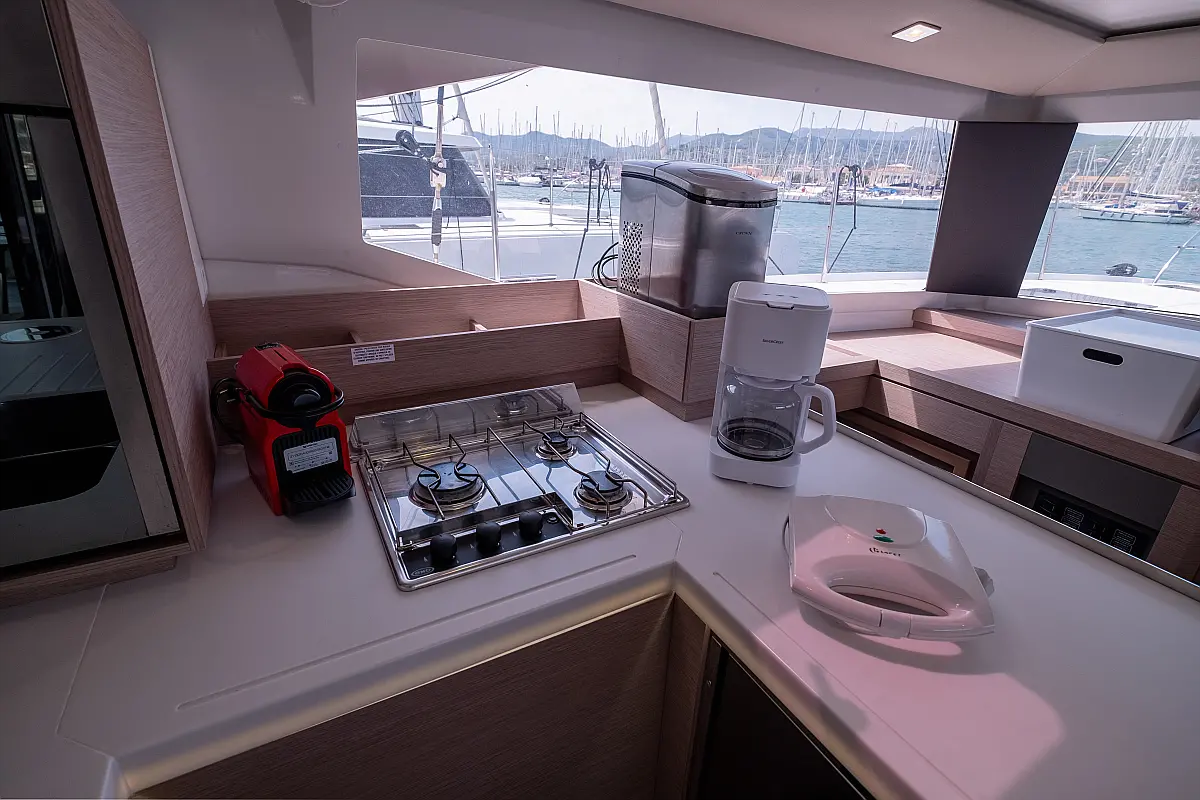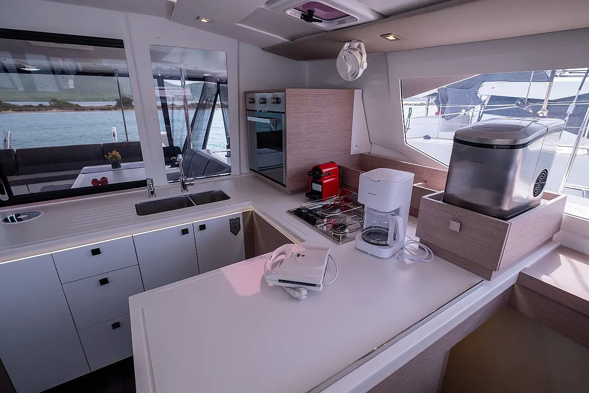 Lautsprecher im Cockpit, Generator, Wassermacher, Solar-Panele, Elektrische Toilette, Inverter, Elektrische Winch (Segel)